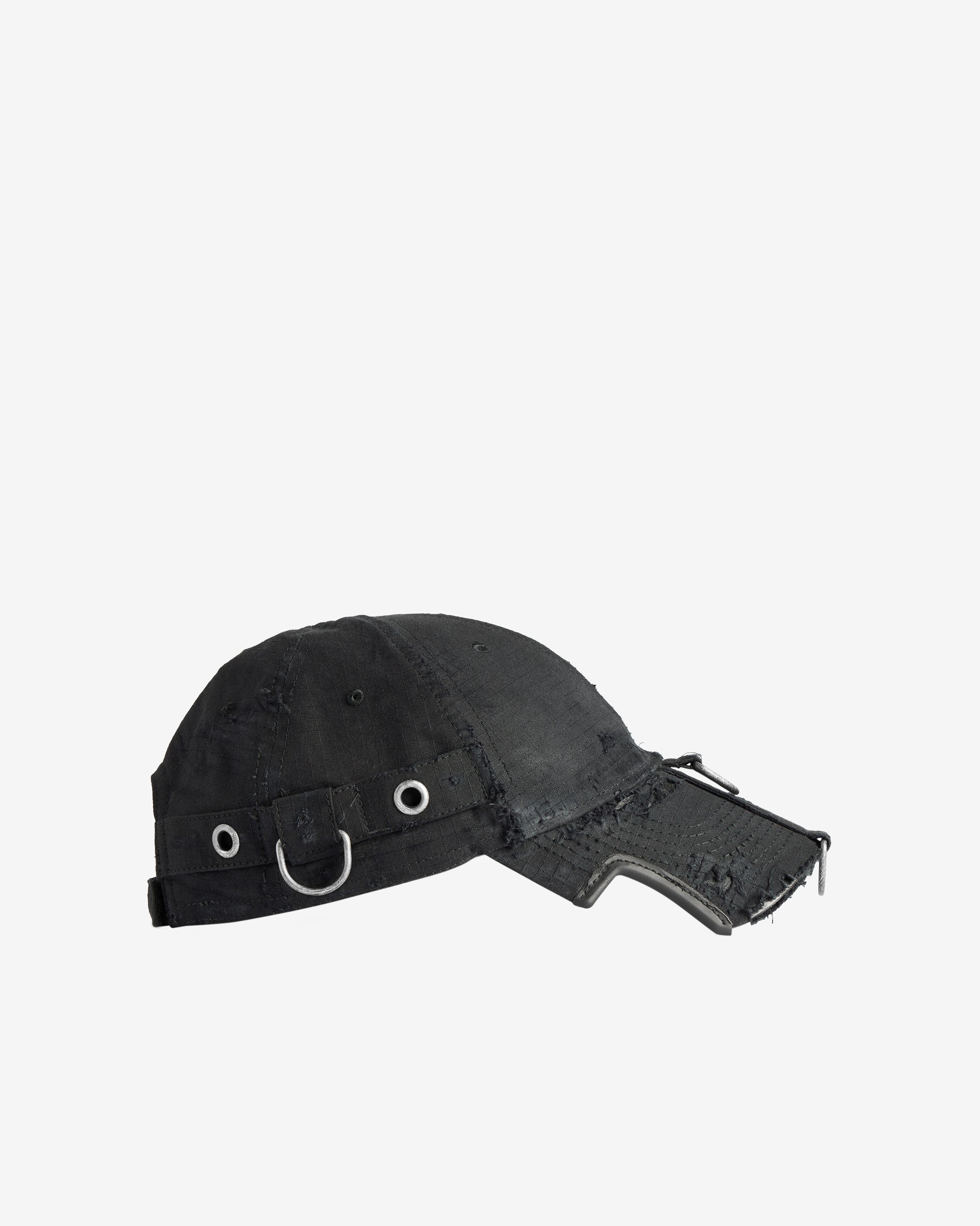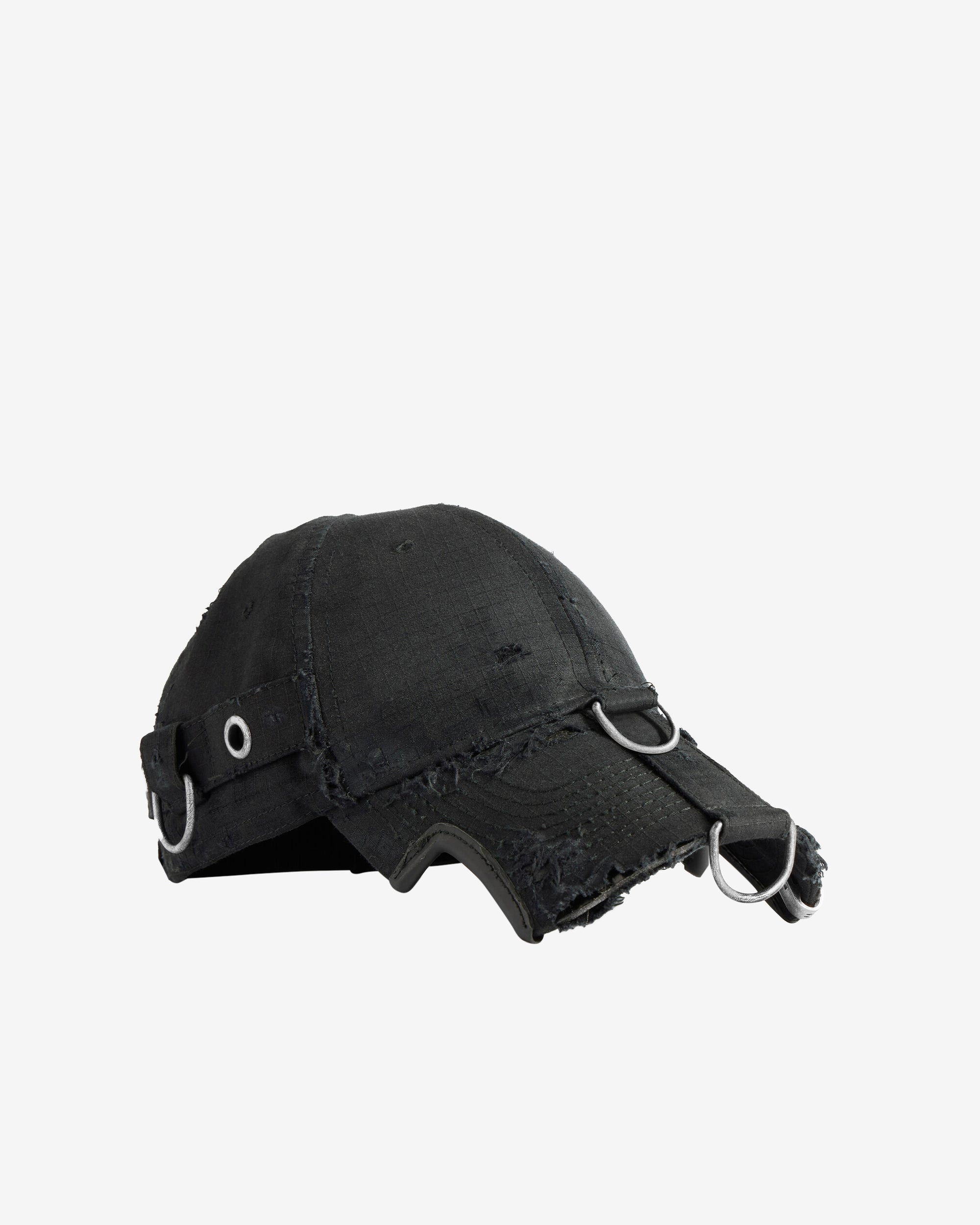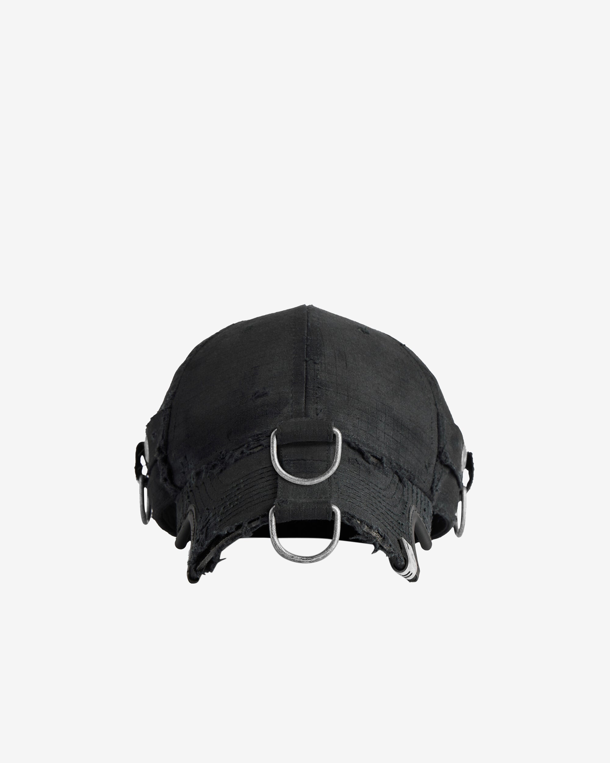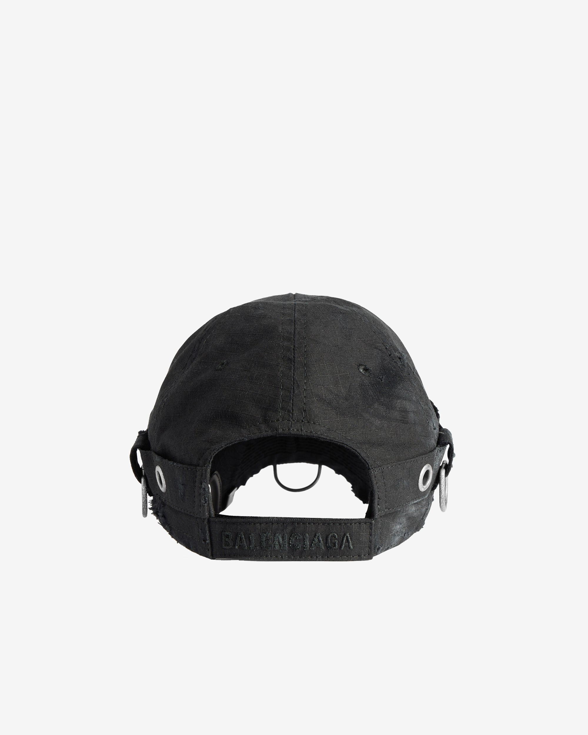 Adjustable hook and loop tab at back with Balenciaga embroidery