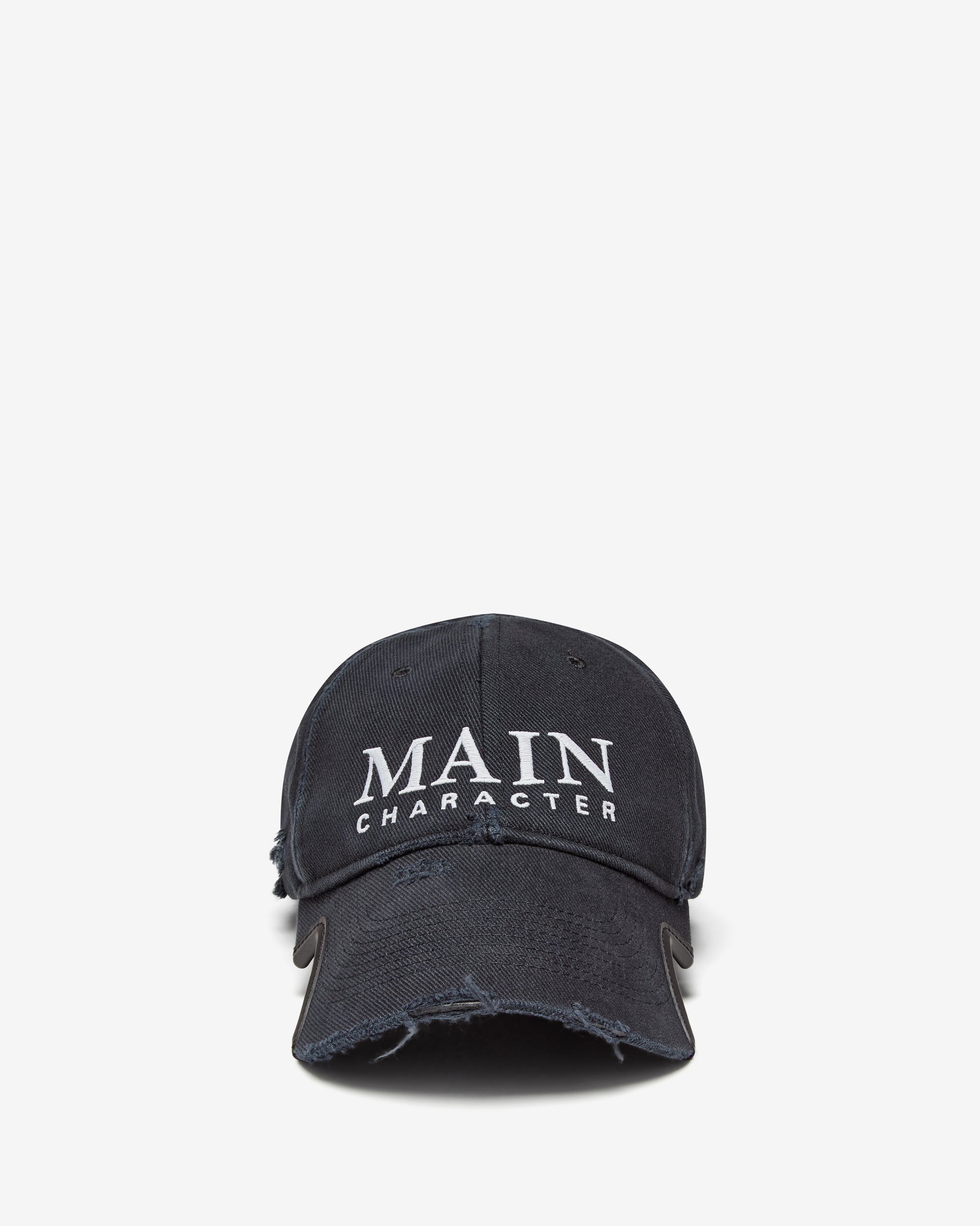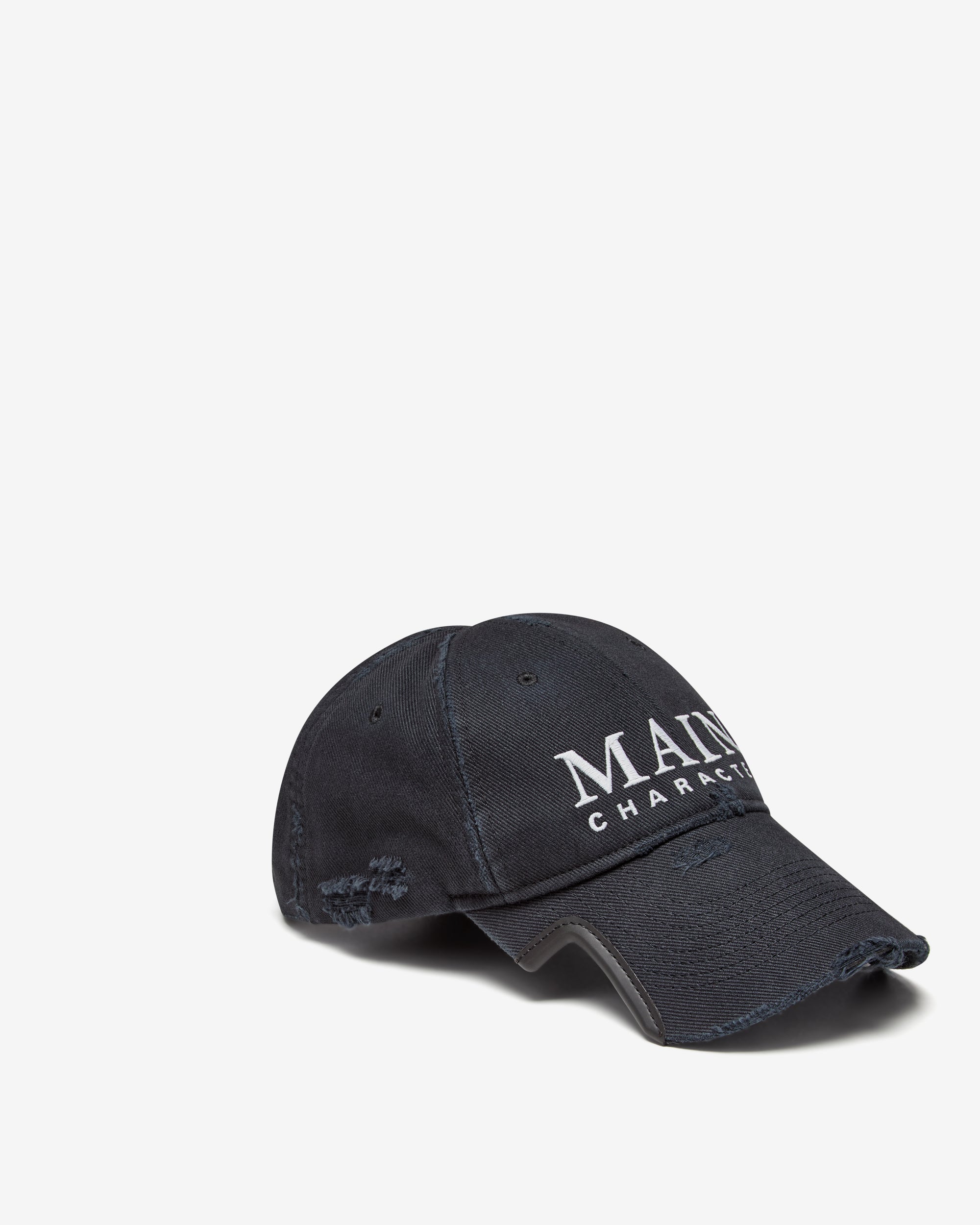 Cotton drill Classic baseball cap shape Ventilation eyelets embroidered on top Adjustable hook and loop tab at back Visor cut out on both sides Main character artwork embroidered at front Destroyed, worn-out details