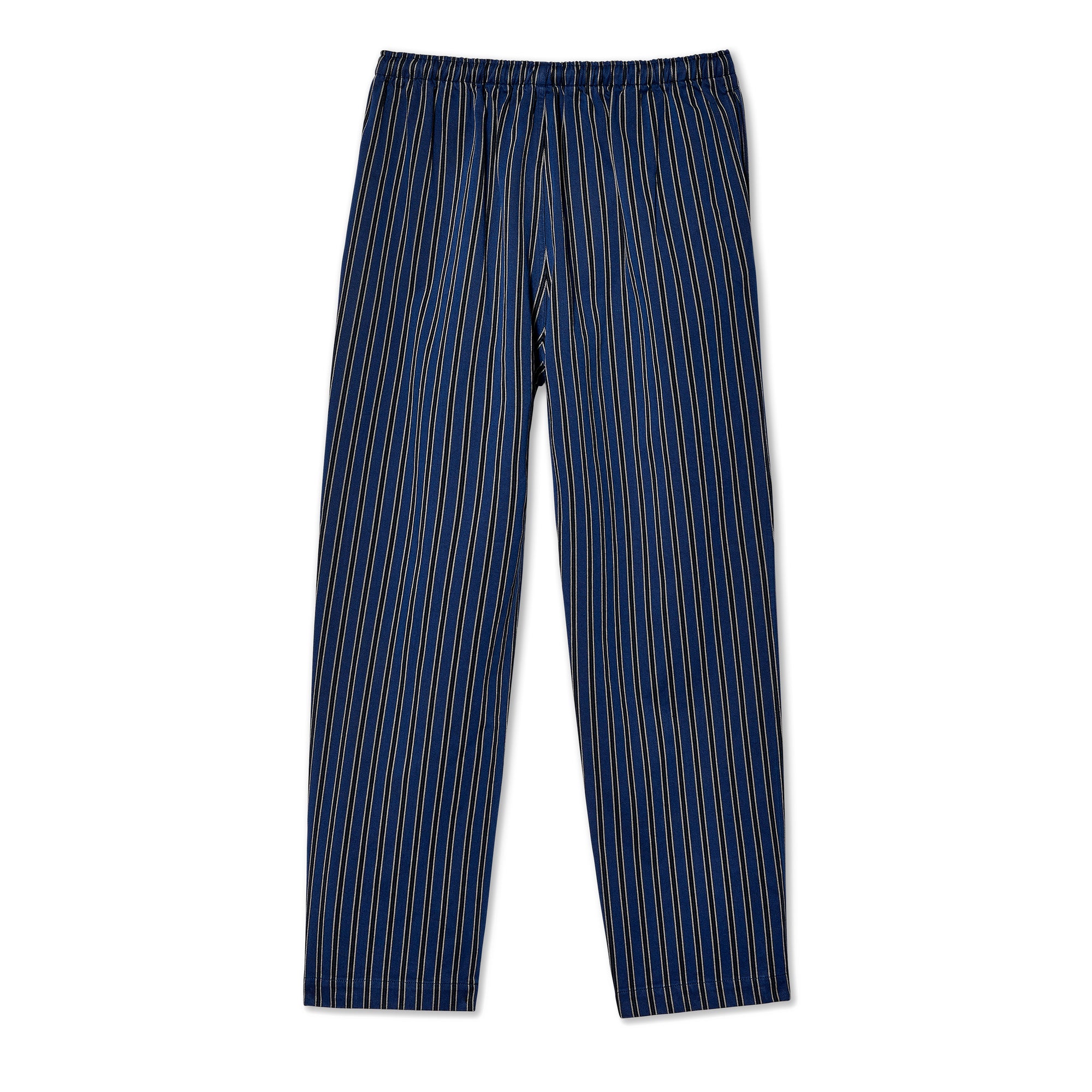 Straight fit pajama pantsAdjustable drawstring waistStriped cotton twillTwo front side pockets