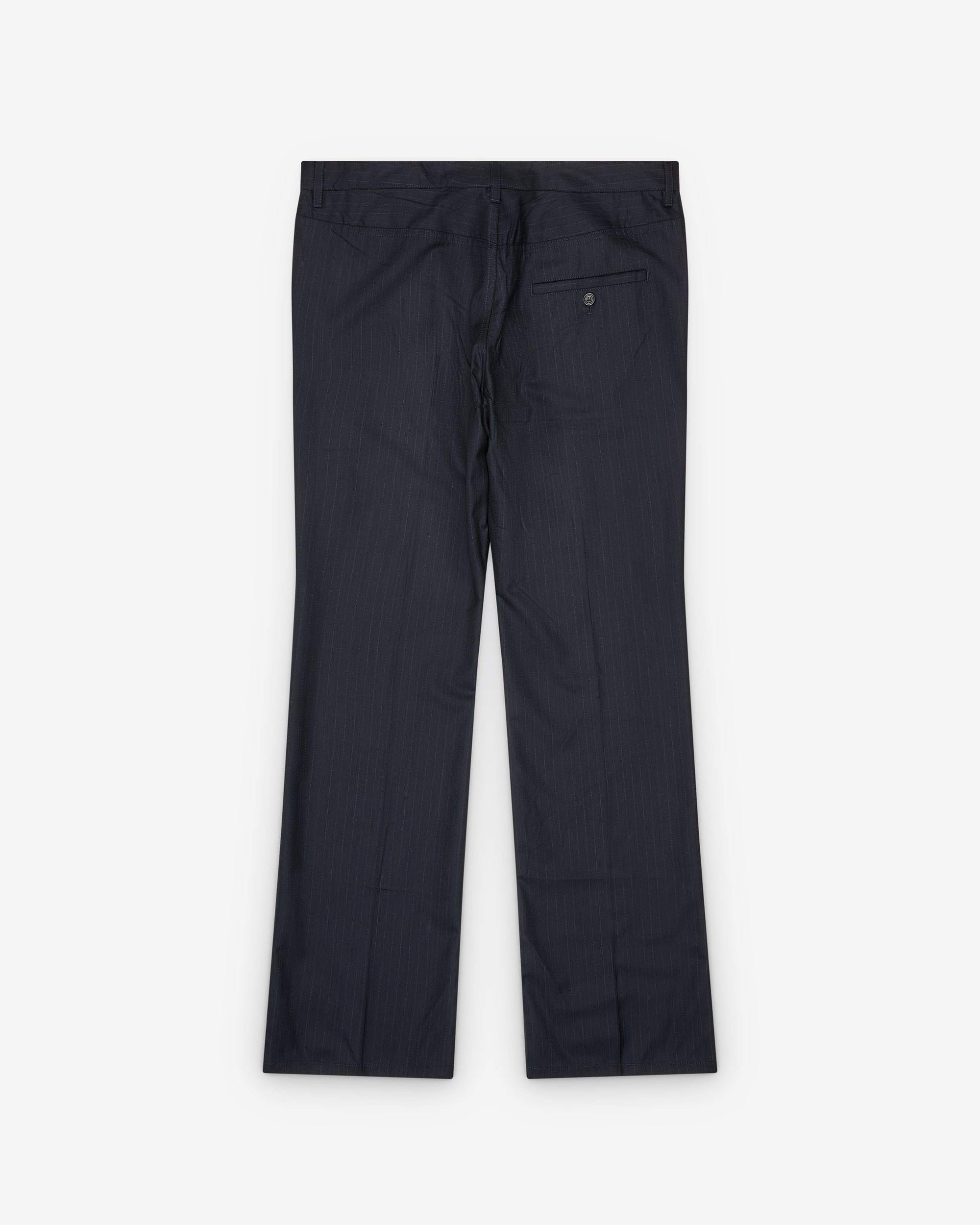 Pinstripe fine woolMid-waistCovered zip fly5 belt loops2 slash pockets at front1 buttoned pocket at backCreased leg100% WoolMade in Italy