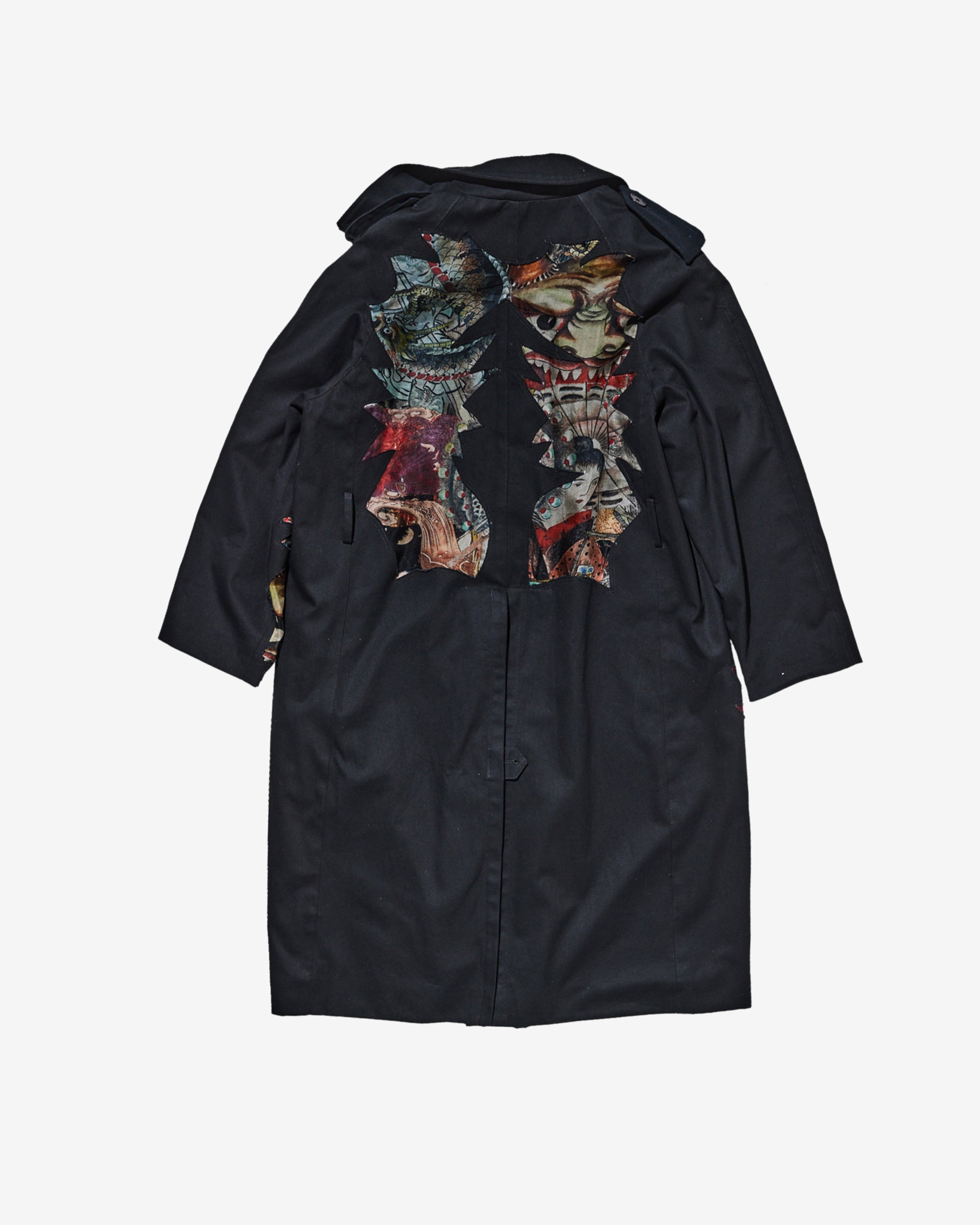Long lengthClassic trench coat silhouetteGraphic details throughout100% Cotton Twill, 100% OrganzaMade in USA