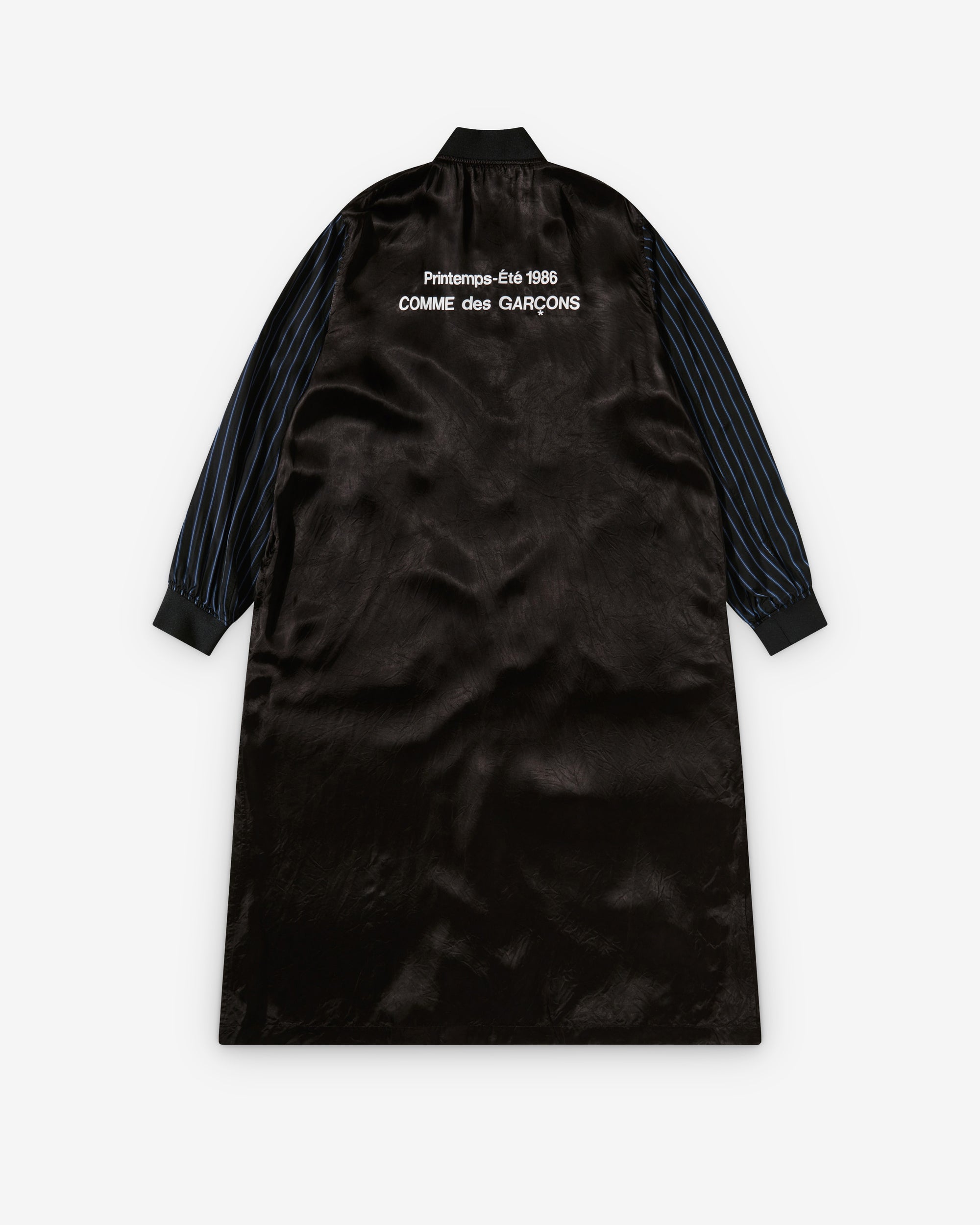 Ribbed collar and cuffsTwo side pocketsContrast pinstripe sleevesCentre front button fasteningPrinted back graphic