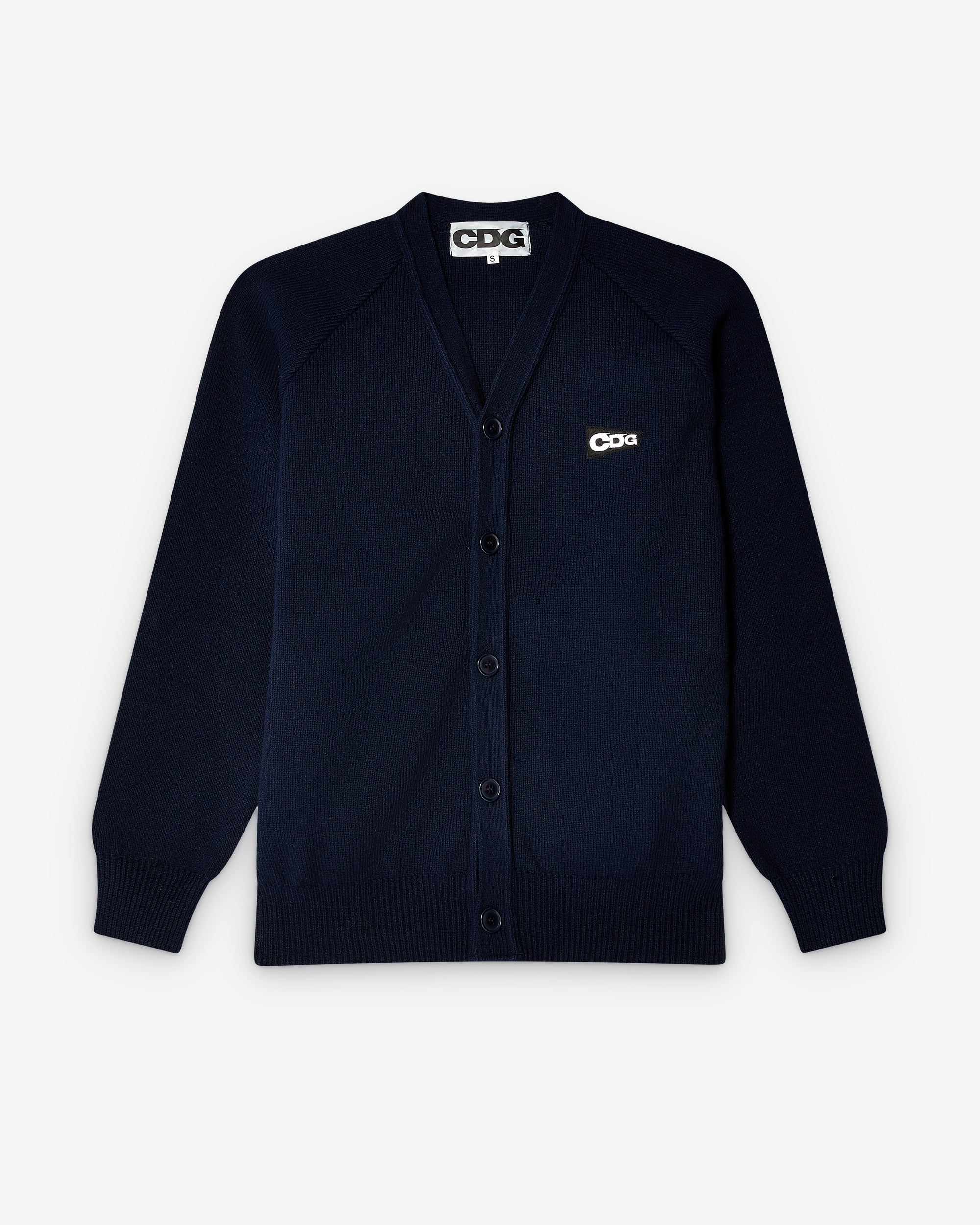 Rib stitchingV-neckCDG logo patchRibbed cuffs and hemFront button fastening100% AcrylicMade in Japan