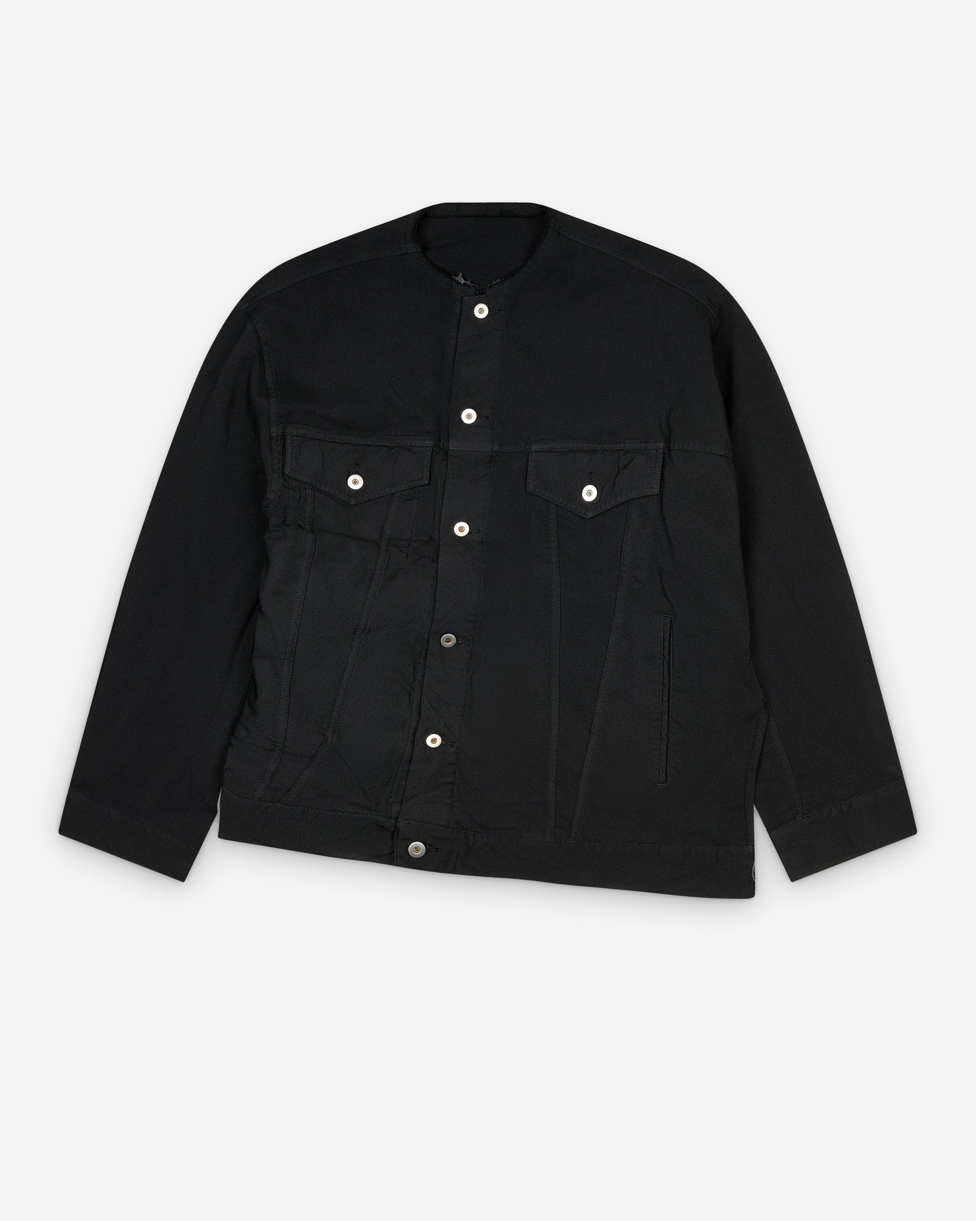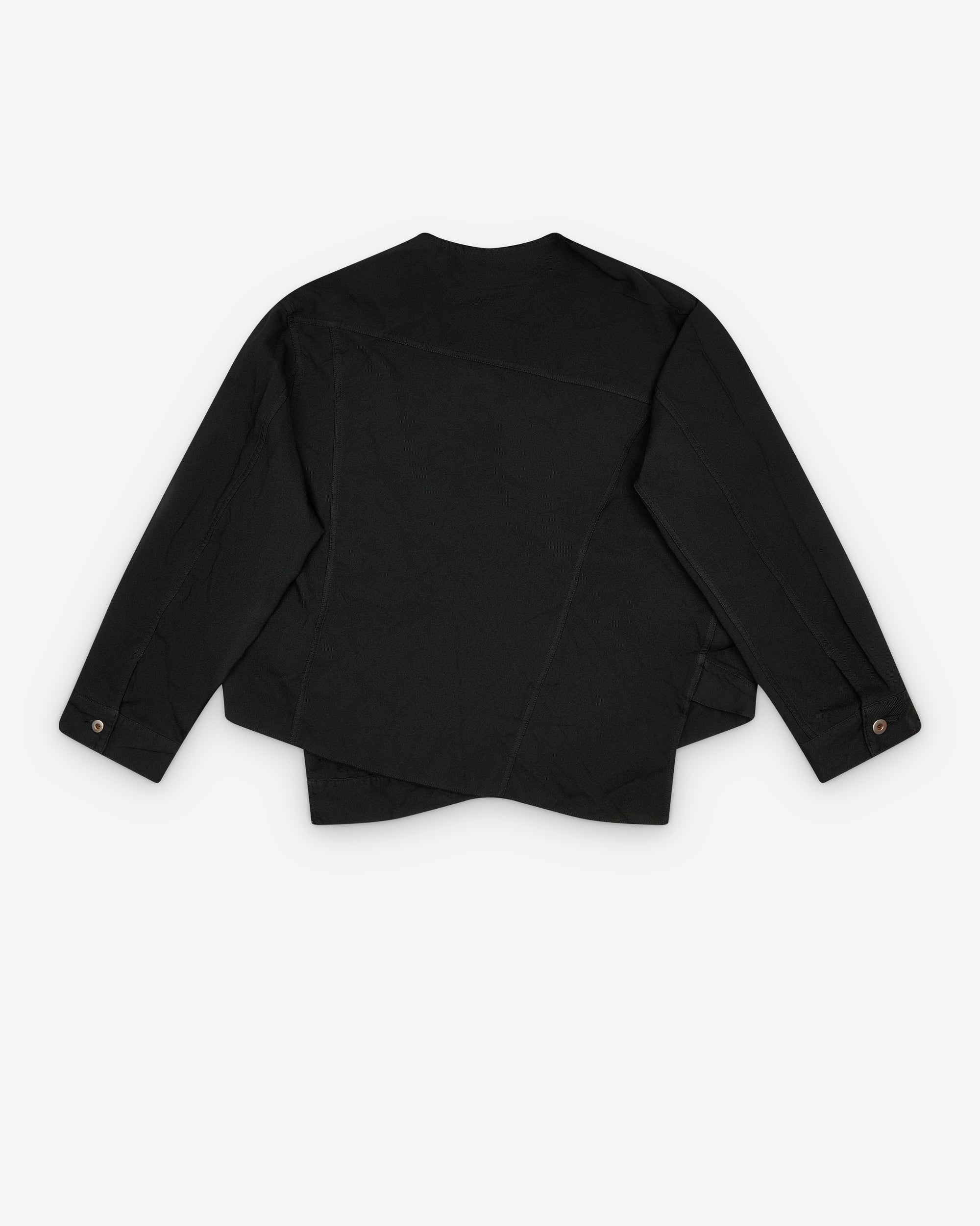 CollarlessButton frontTwo front pocketsAsymmetric hem100% PolyesterMade in Japan