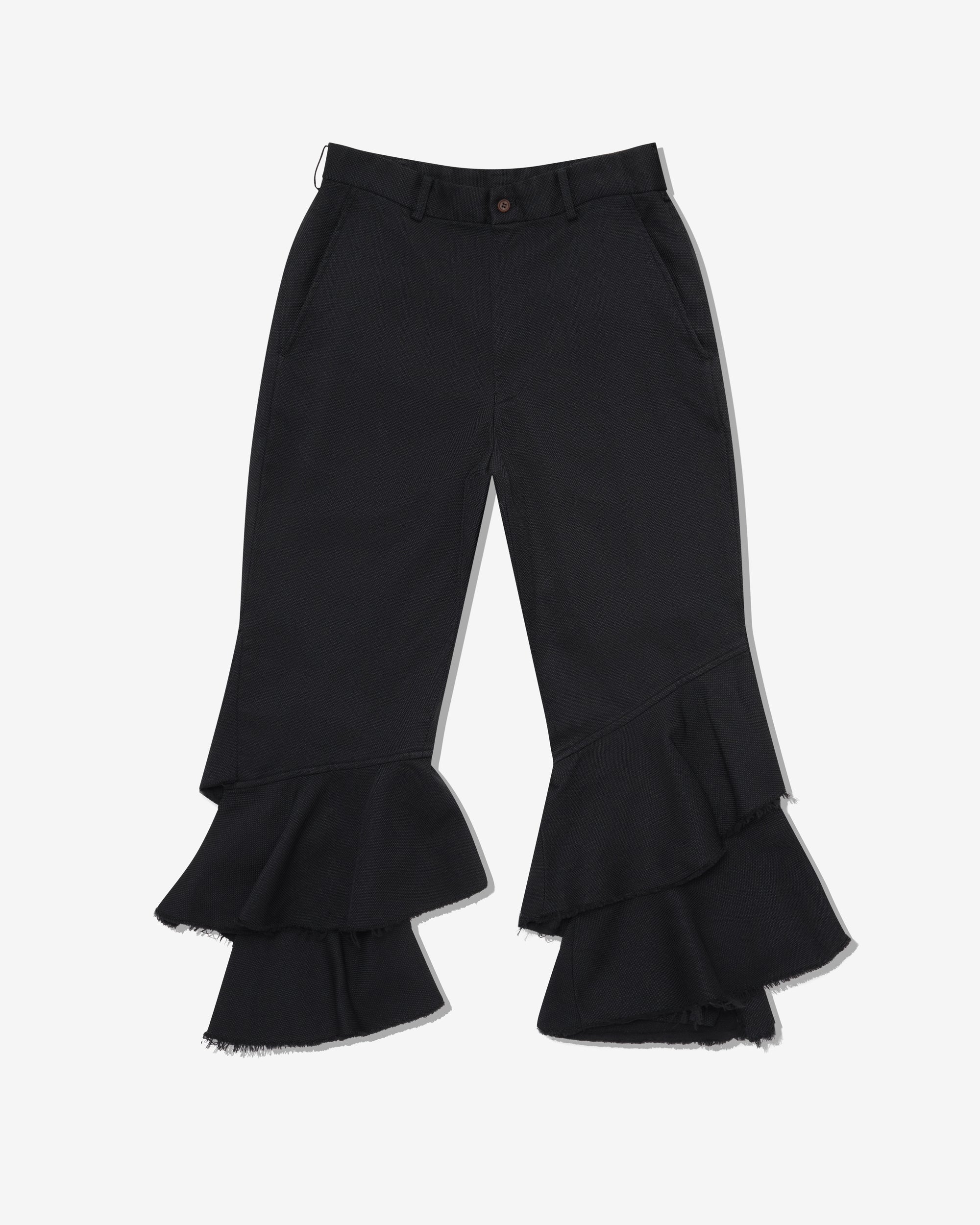 Ruffle detailsStraight legButton zip fly closure100% PolyesterMade in Japan