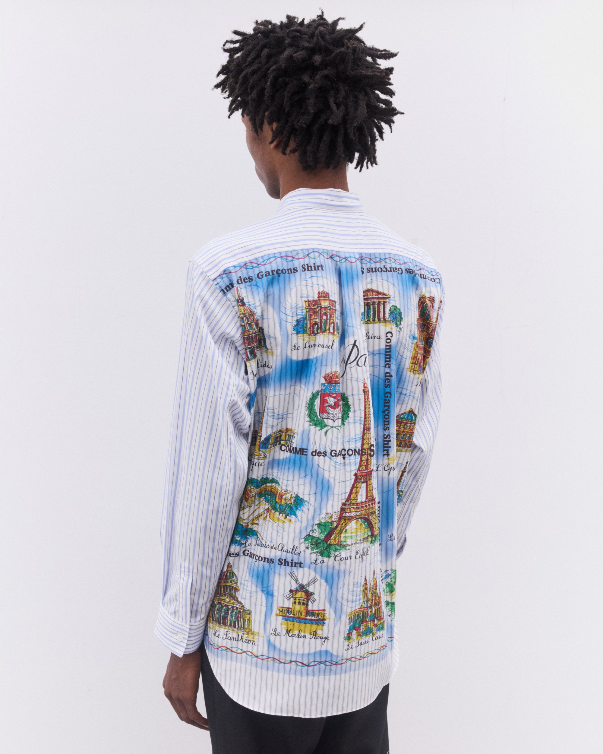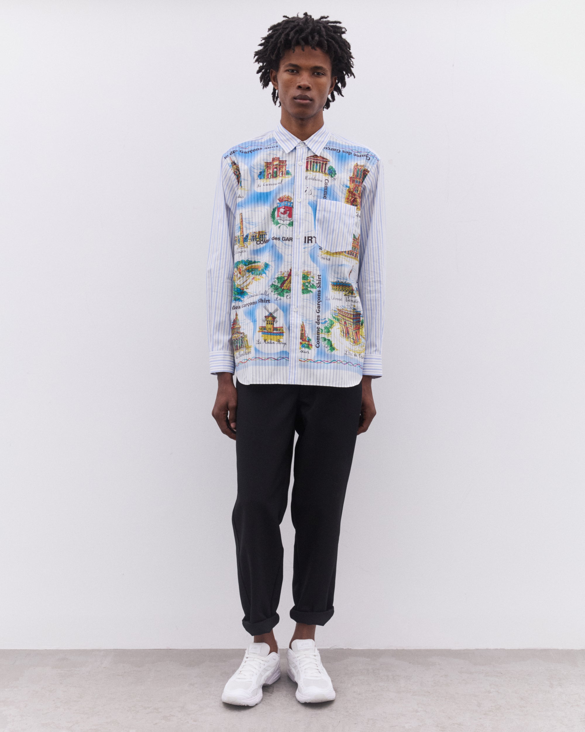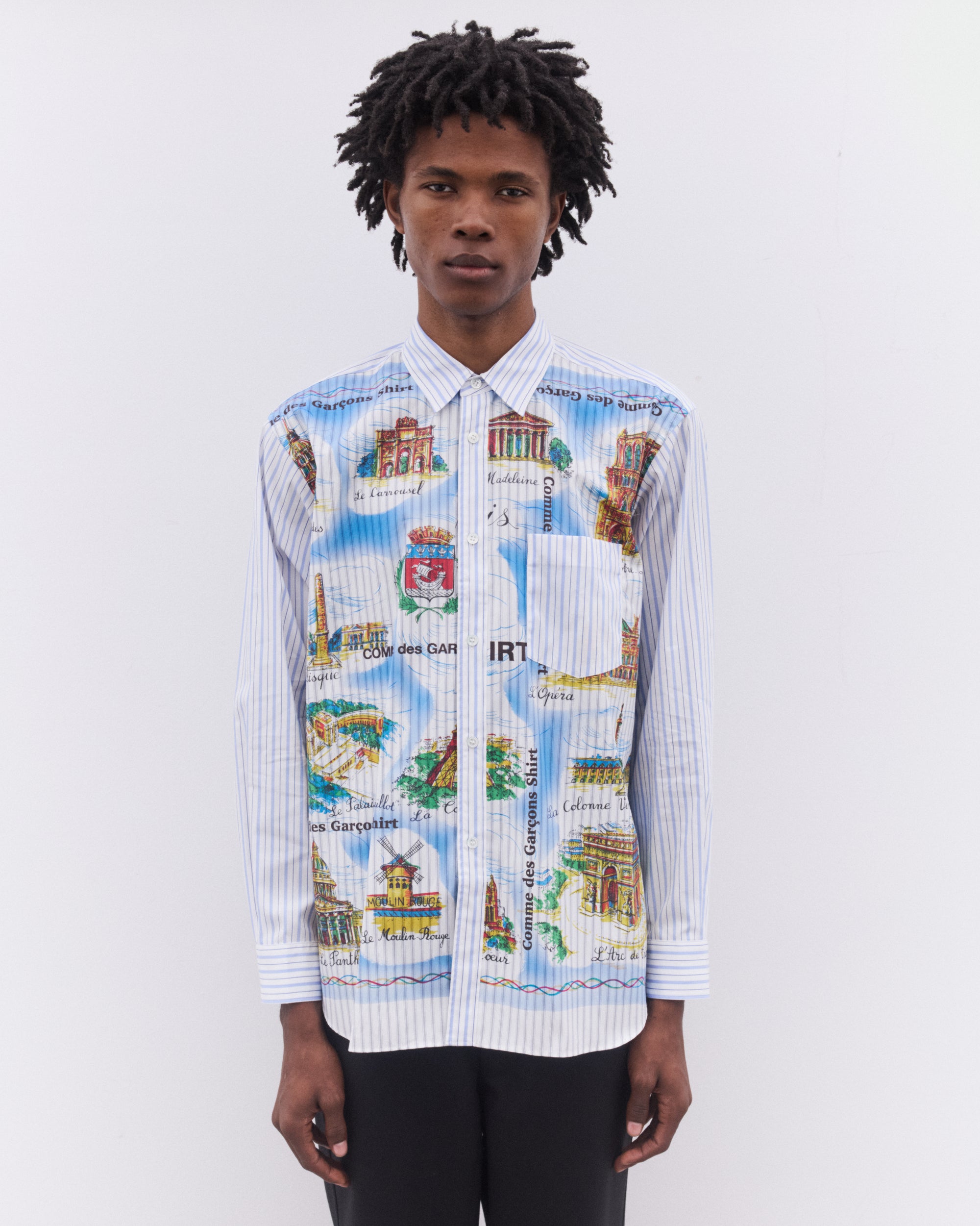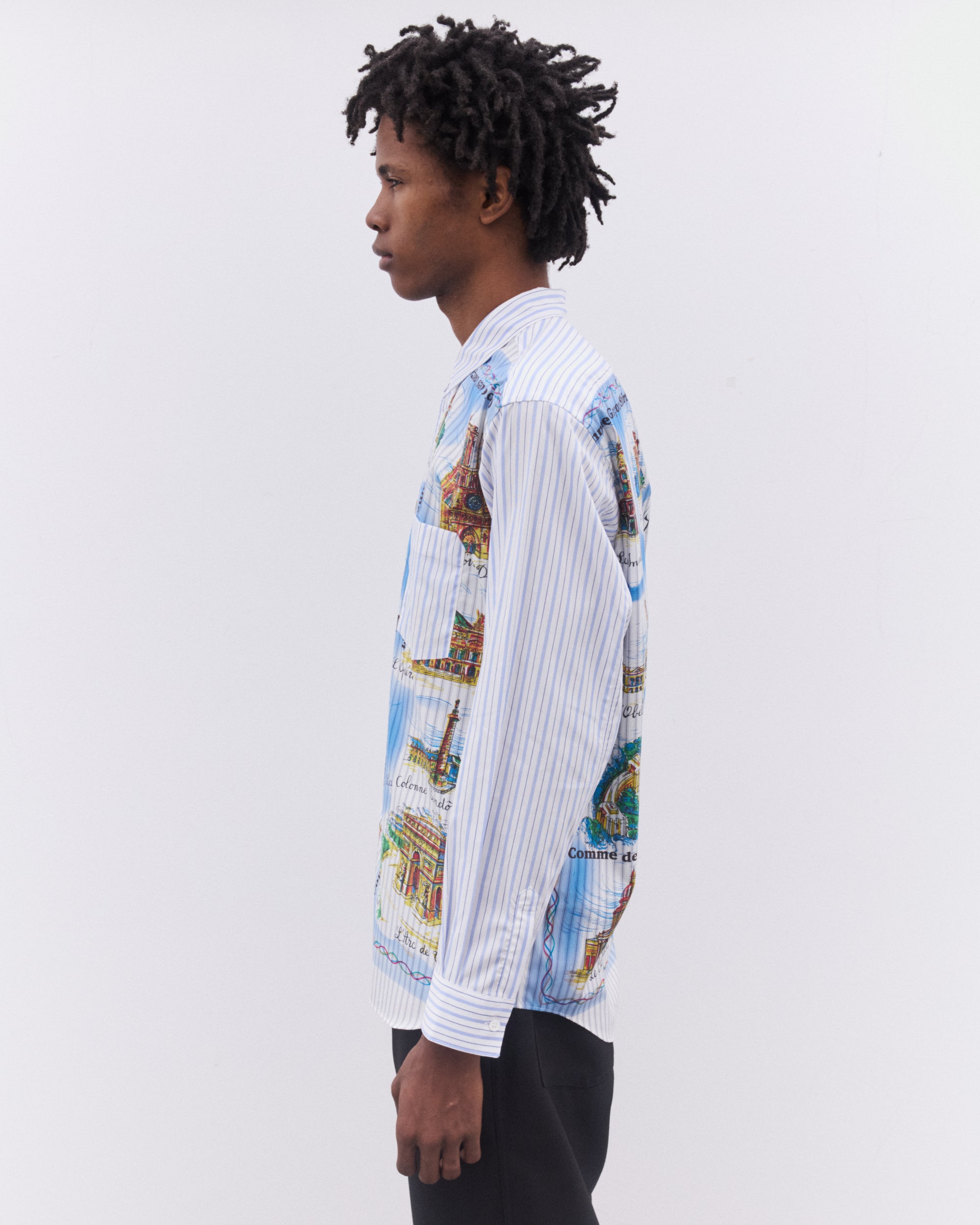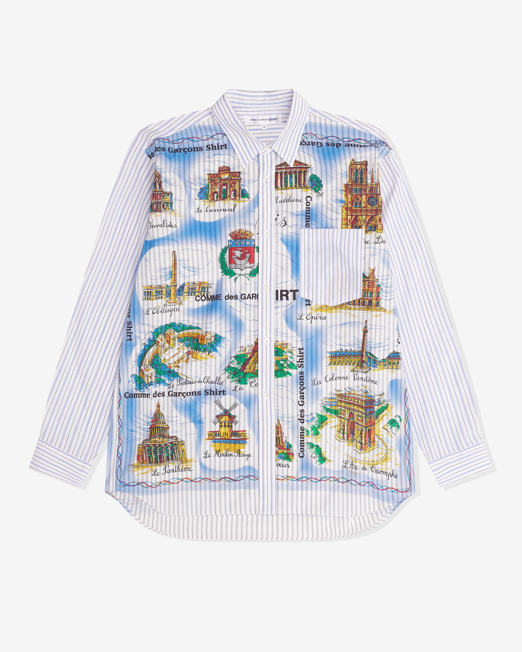CDG Shirt Men's Striped Landmark Shirt Blue