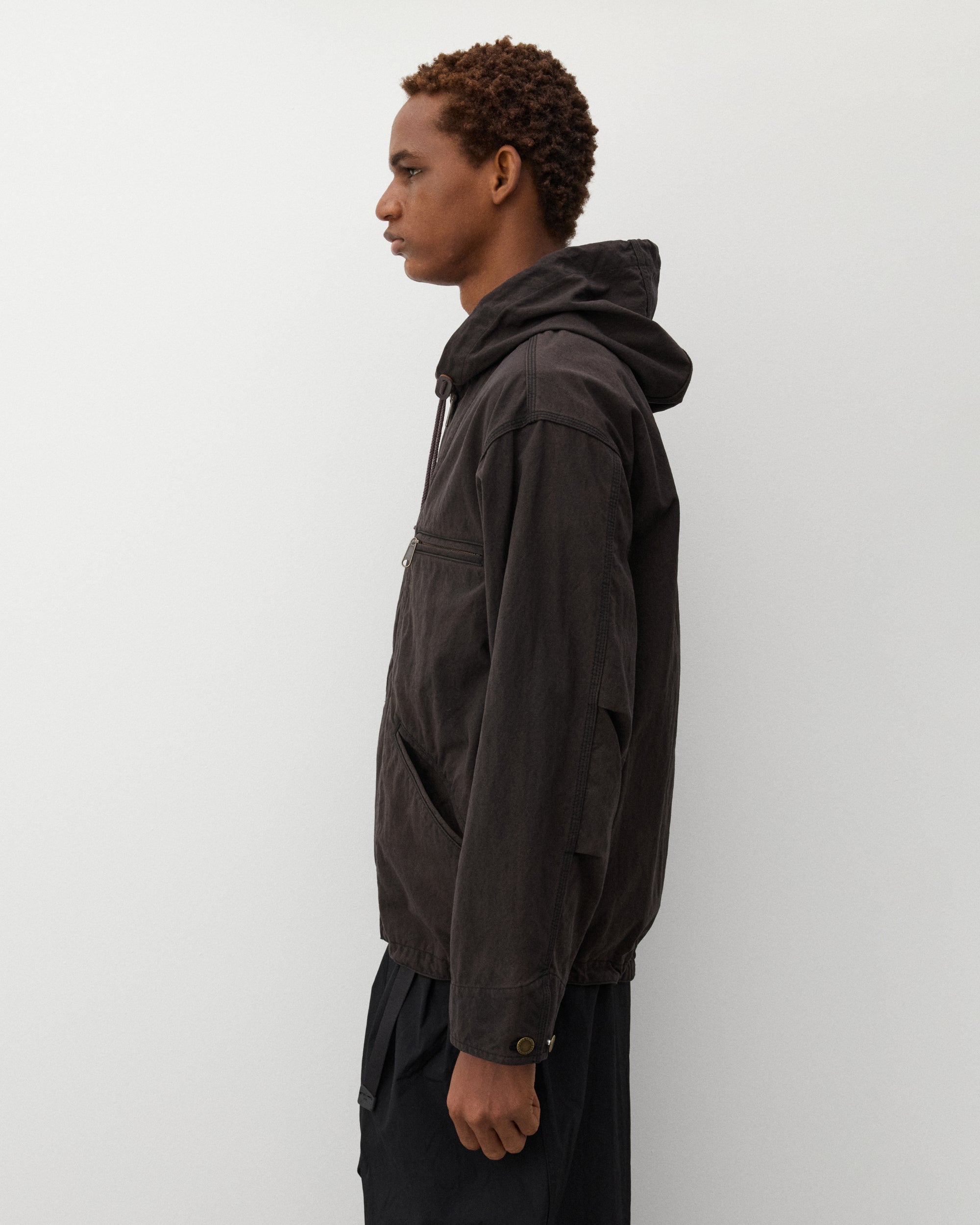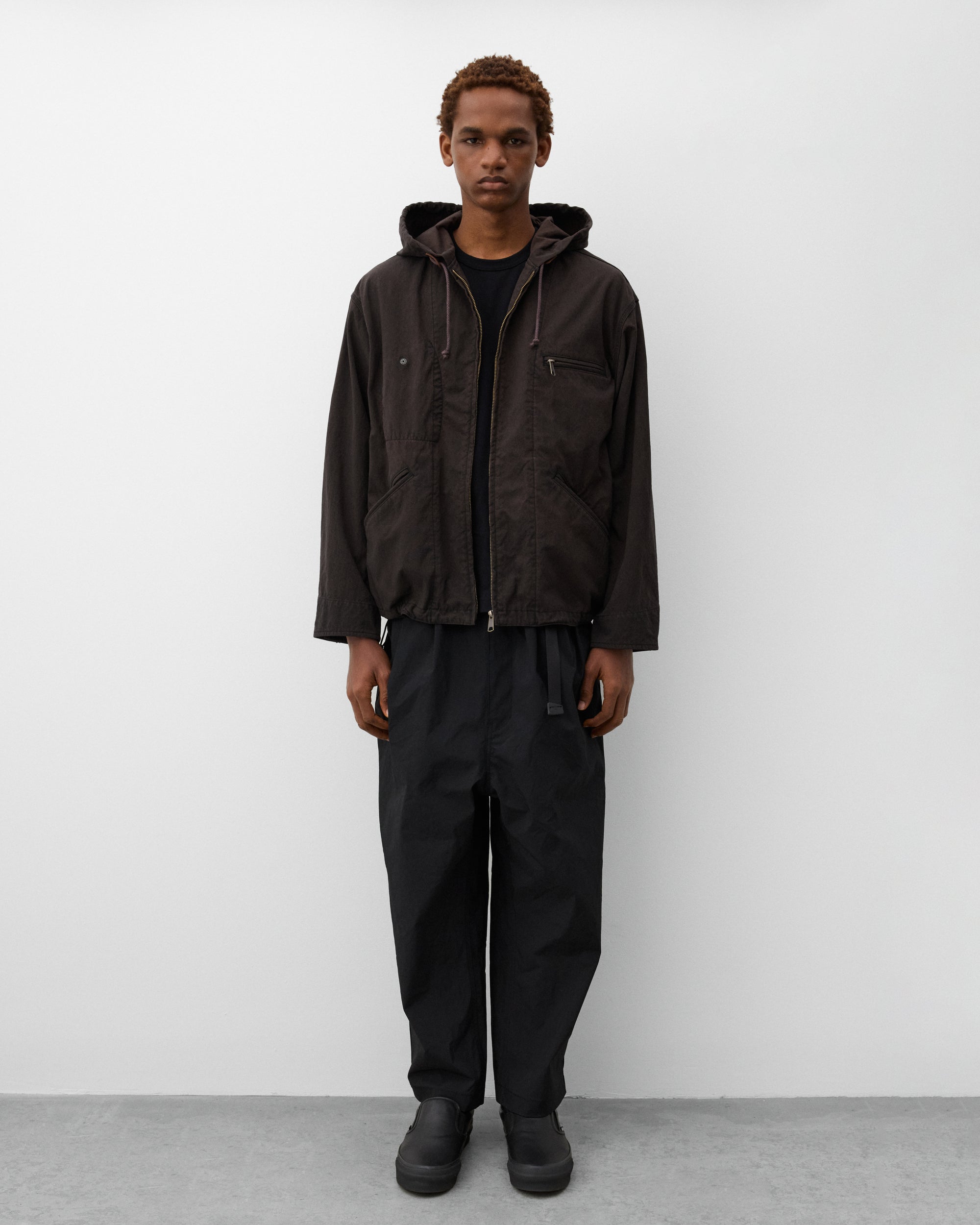 Toggle drawstring hoodZip front closureFront pocketsGarment washed fabric Triple stitched Internal zip pockets