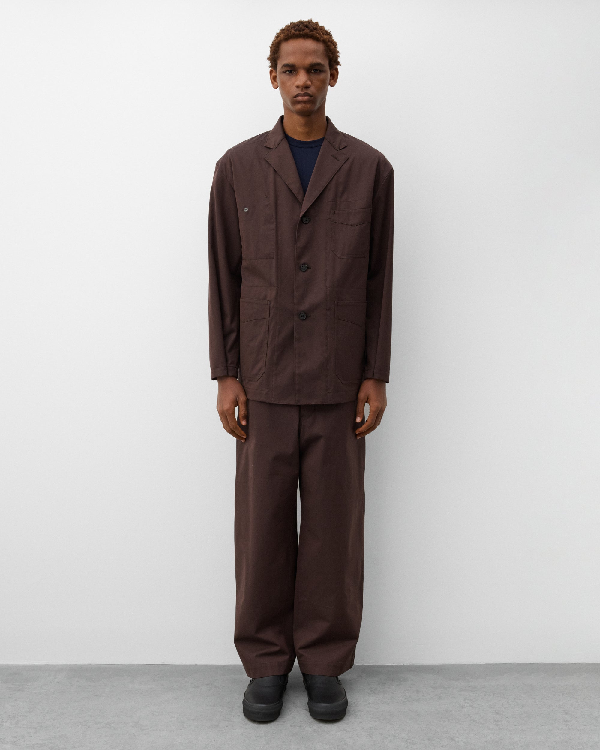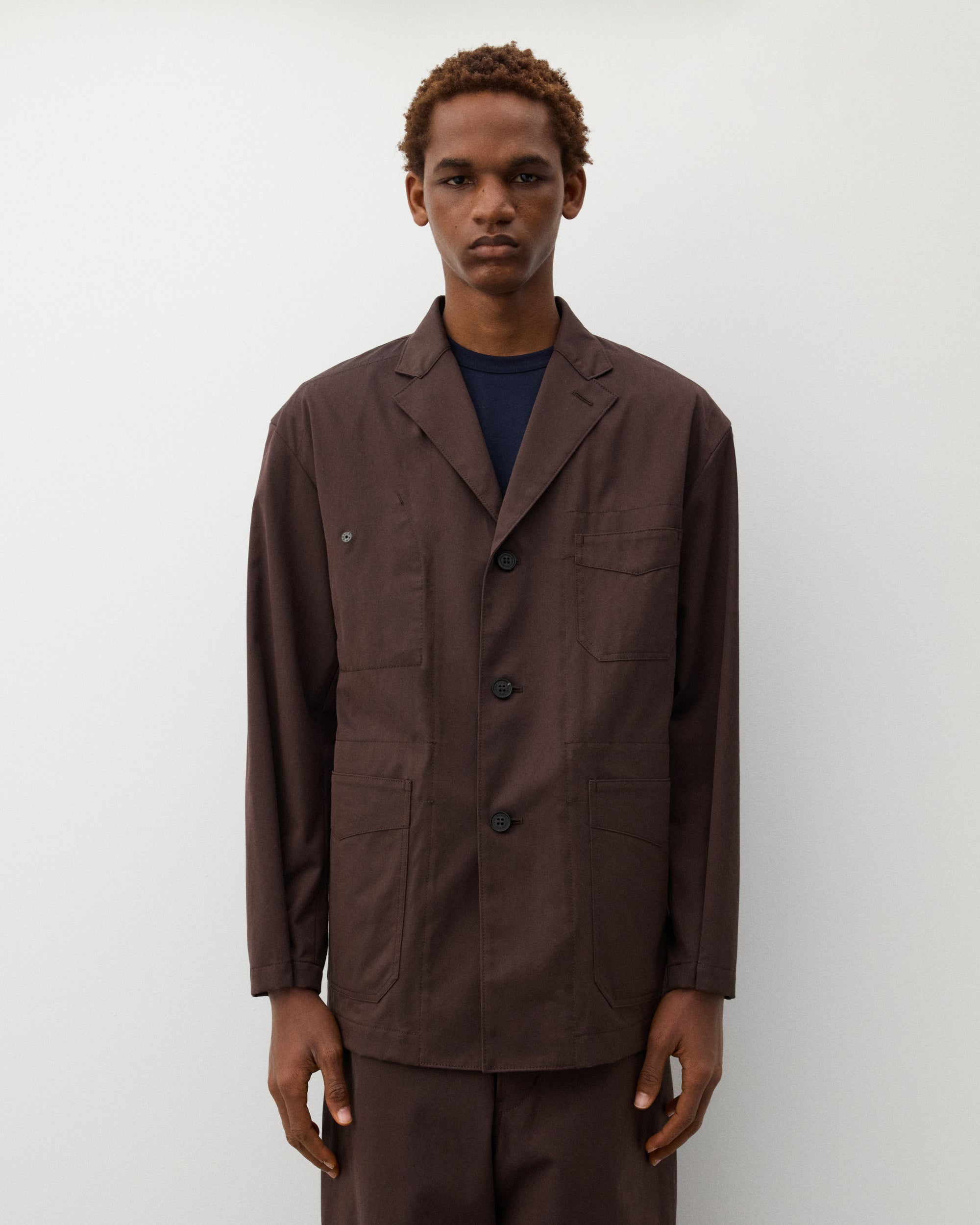 Open collarNotched lapelThree button closureChest pocketTwo front pocketsInternal zip close pocketsPress stud adjustable cuffs