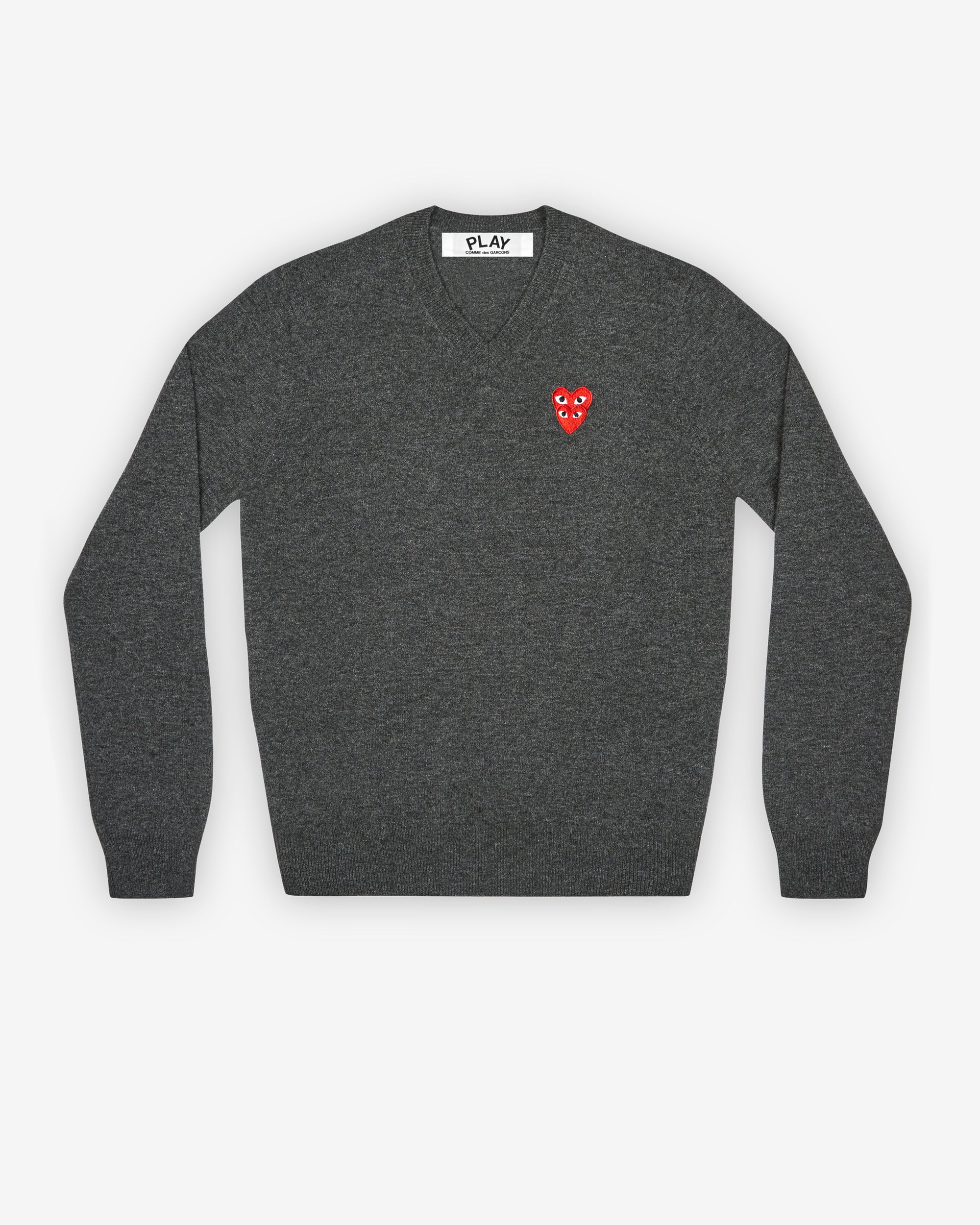 Play Comme des Garçons Double Eye V Neck Sweater Grey