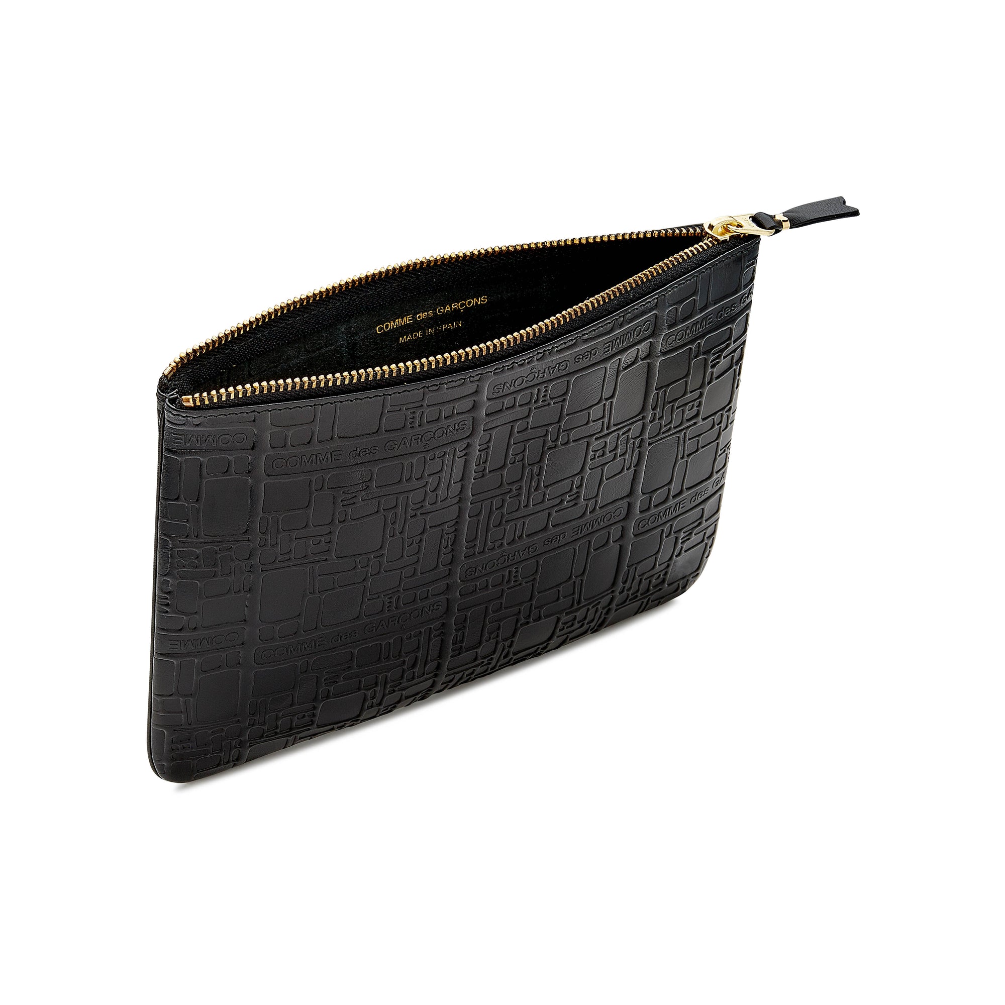 CDG Wallet Embossed Logo Large Zip Pouch Black SA5100EL
