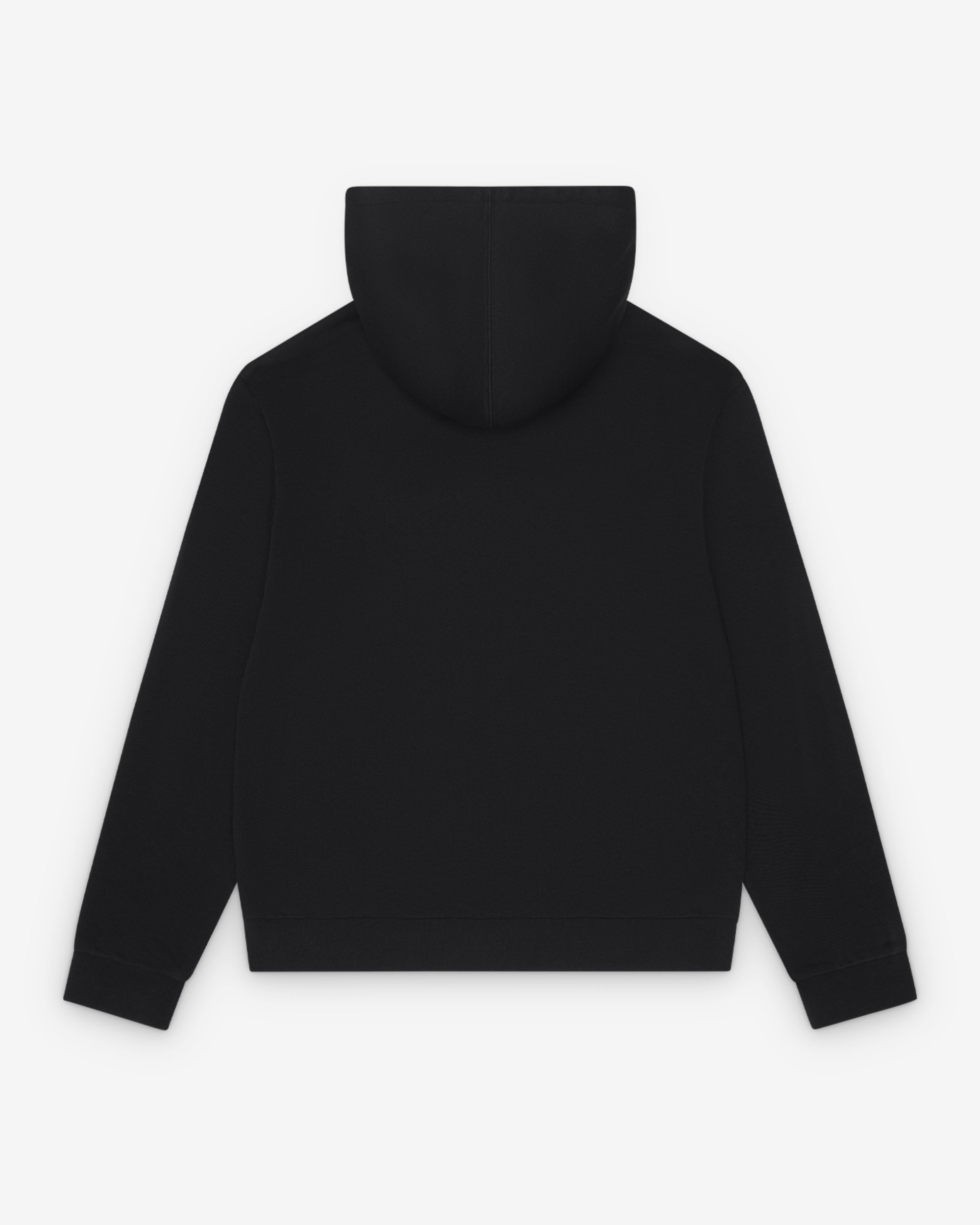 Zip closureDrawcord at hoodRib knit trimsScreen printed graphicsFront kangaroo pocket