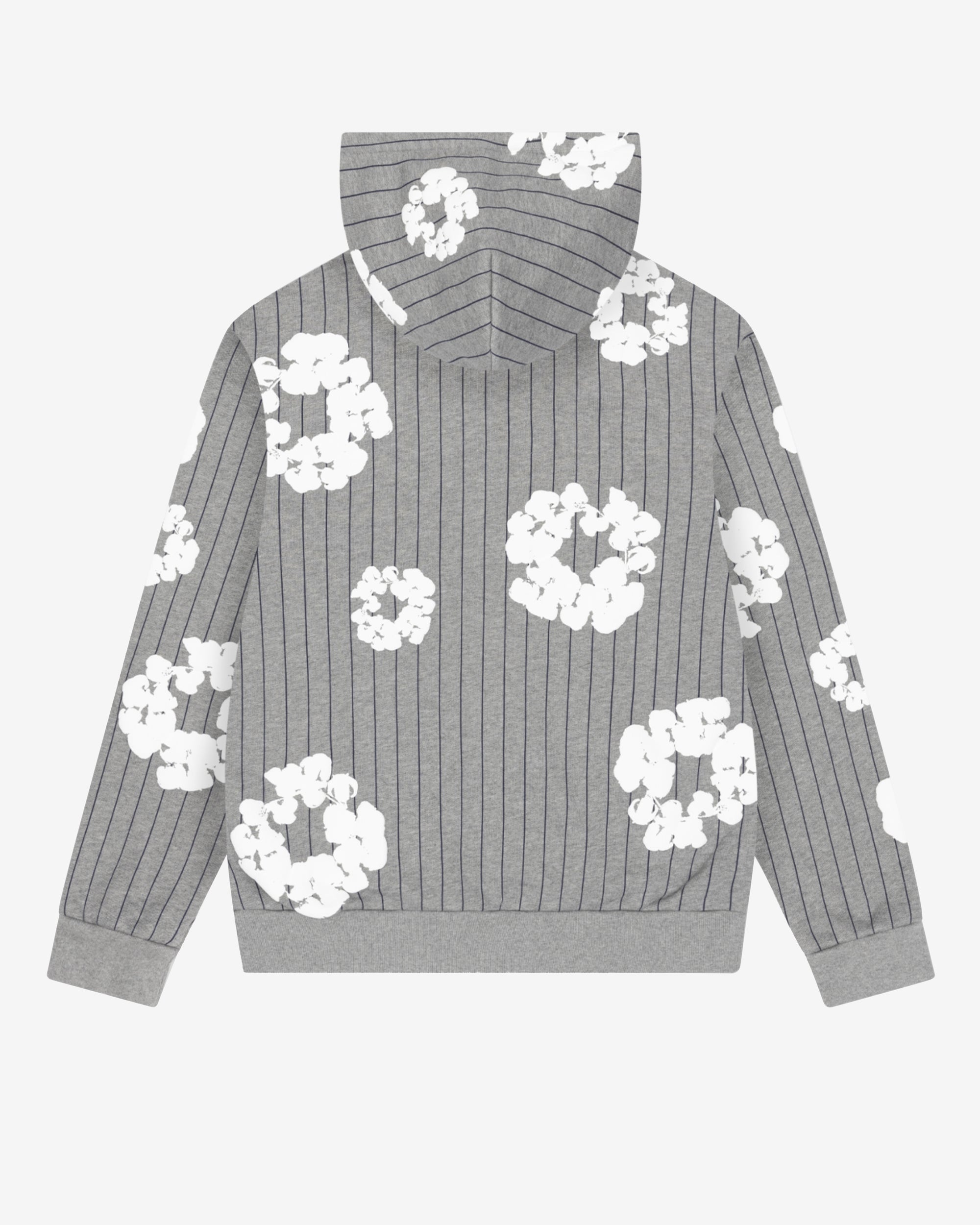 Denim Tears Men's Pinstripe Wreath Zip Hoodie Grey