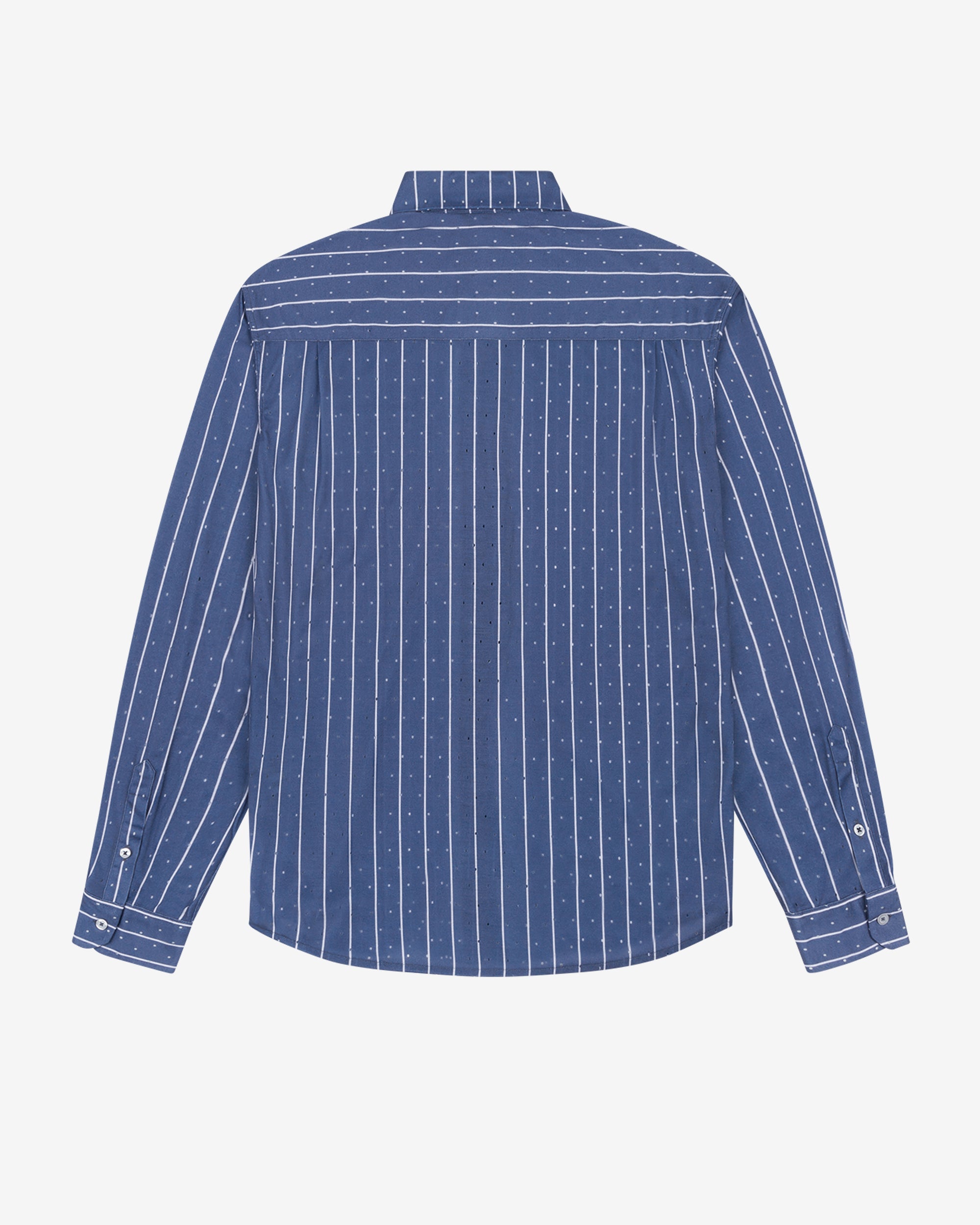 Point collarButton fasteningPerforated fabricationPatch pocketButton cuffsMade in Portugal