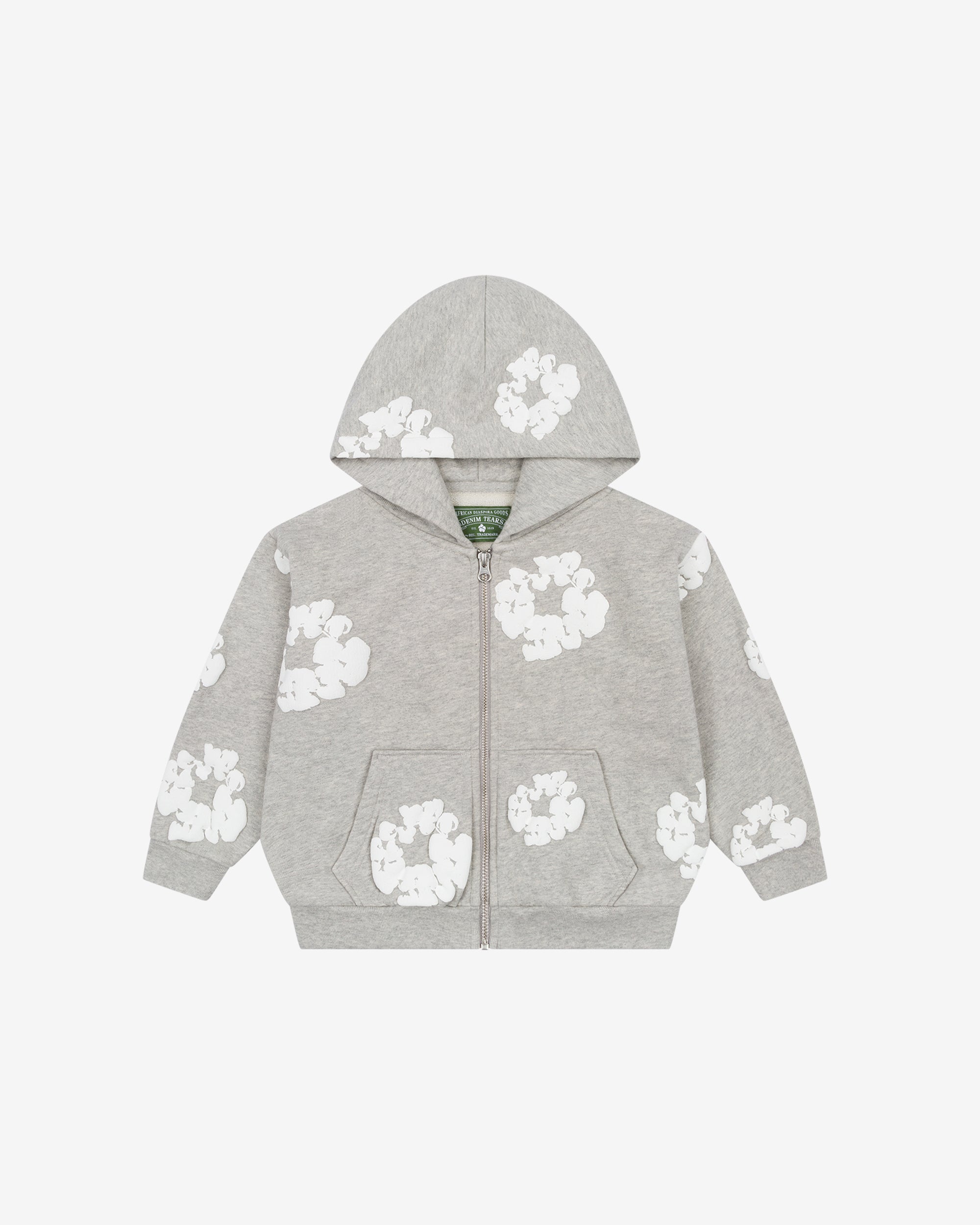 Zip closureHoodedRib knit trimsScreen printed graphicsKangaroo pouchCotton