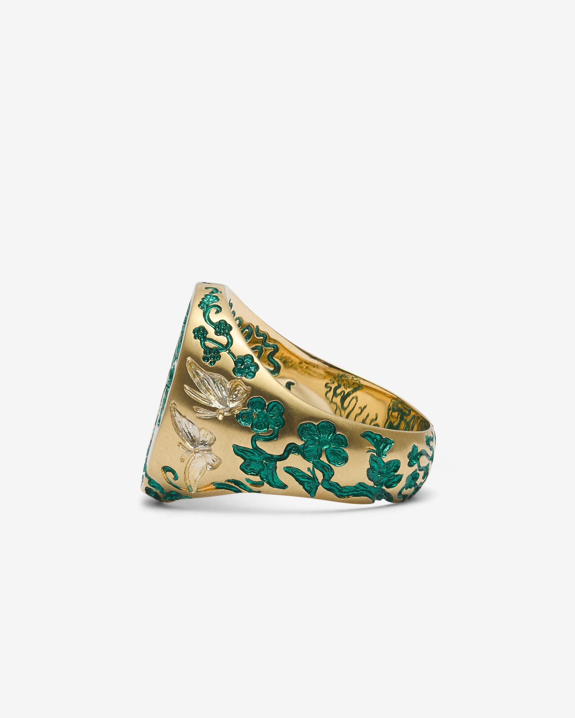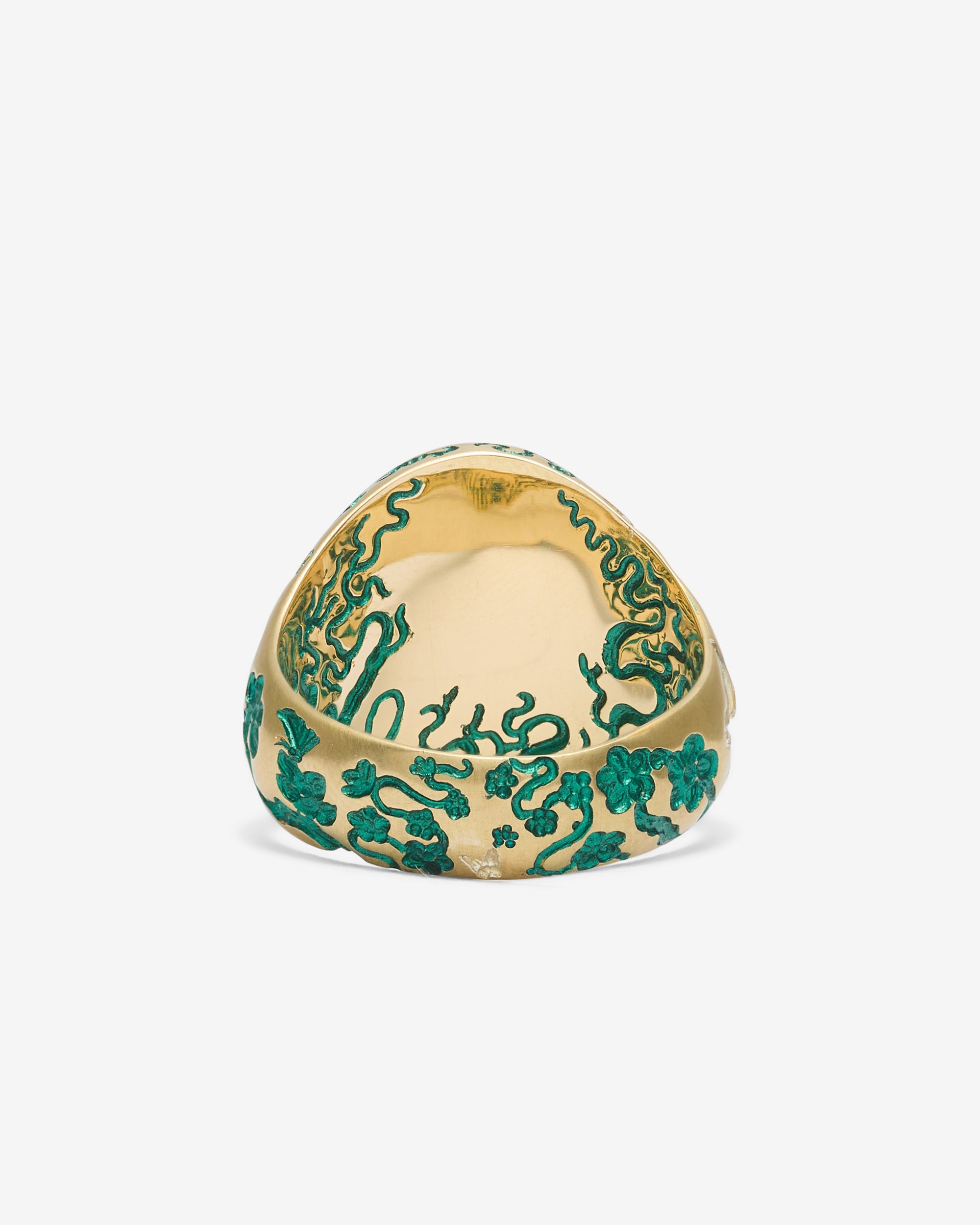 After training as a painter and print maker, Castro Smith started a traditional apprenticeship with the Goldsmiths Company to study engraving. Using the ancient technique of ‘seal engraving’ Castro modernises his designs European and Japanese influences. Inspired by history, myths and biology, he is obsessed with creatures and their creations.