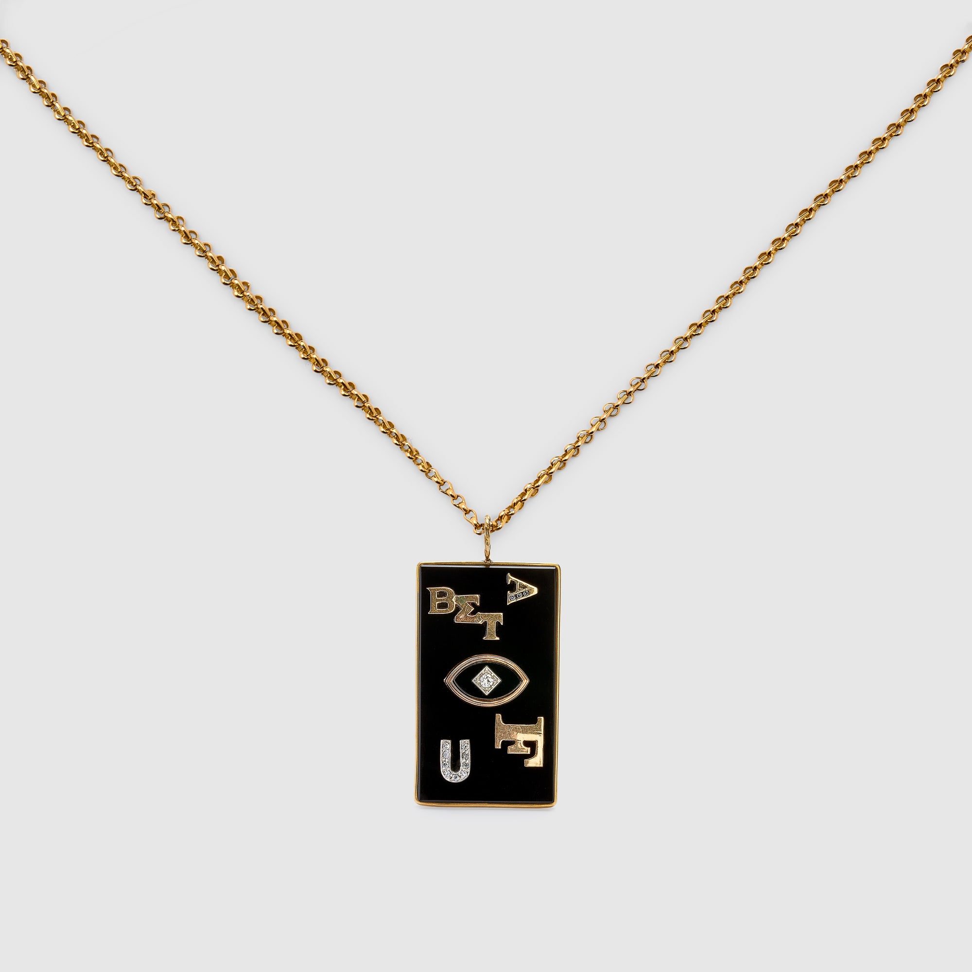 Black Onyx; 14K Yellow Gold Pendant. Symbols Are A Mix Of Antique, Retro And Vintage Pieces In 18K,14K Yellow Gold; White Gold Mixed With Diamonds