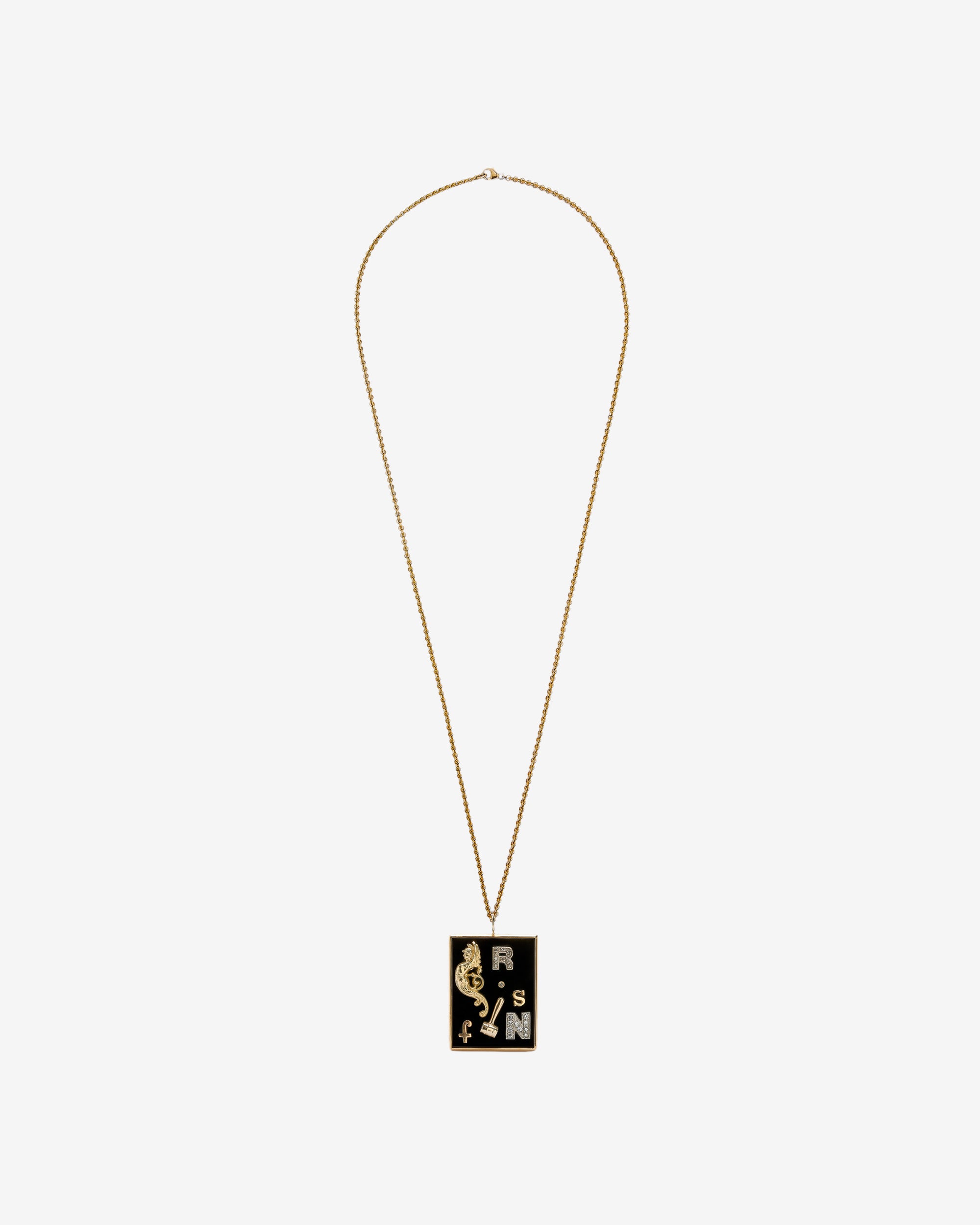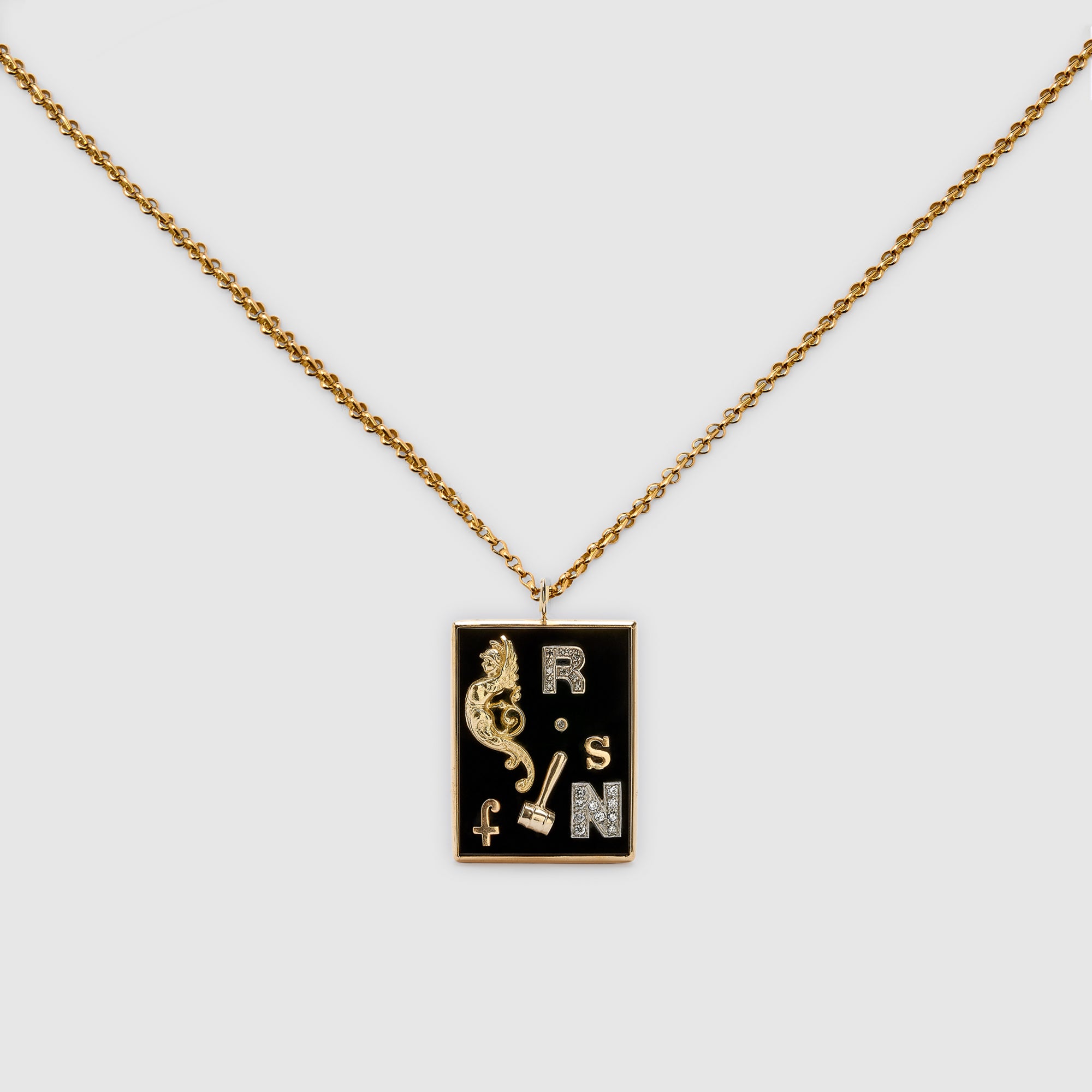 Black Onyx & 14K Yellow Gold Pendant. Symbols Are A Mix Of Antique, Retro And Vintage pieces In 18K,14K Yellow & White Gold Mixed With Diamonds