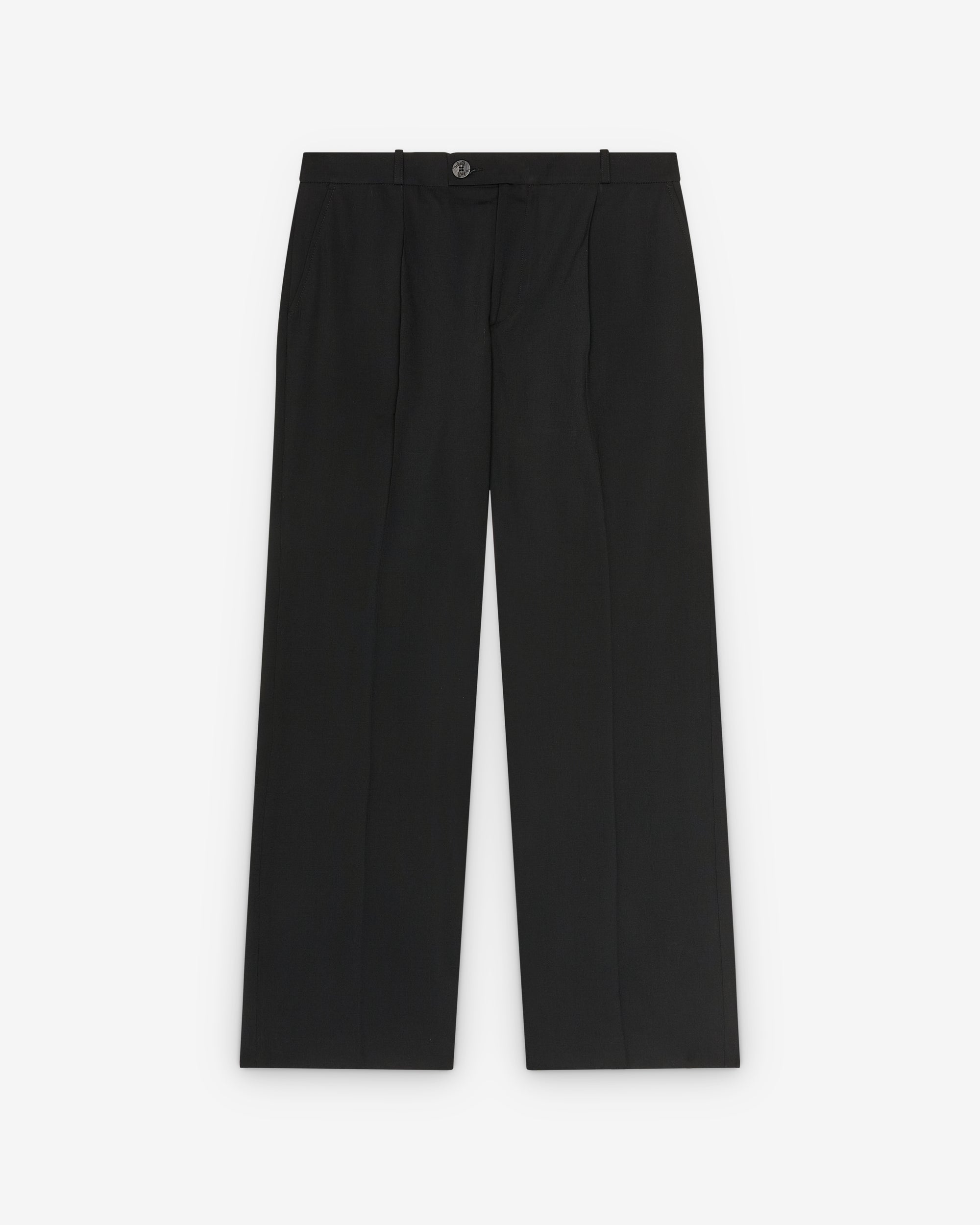 Straight legPleat detailsOff-center button closure54% Polyester, 44% Virgin Wool, 2% ElastaneMade in Portugal