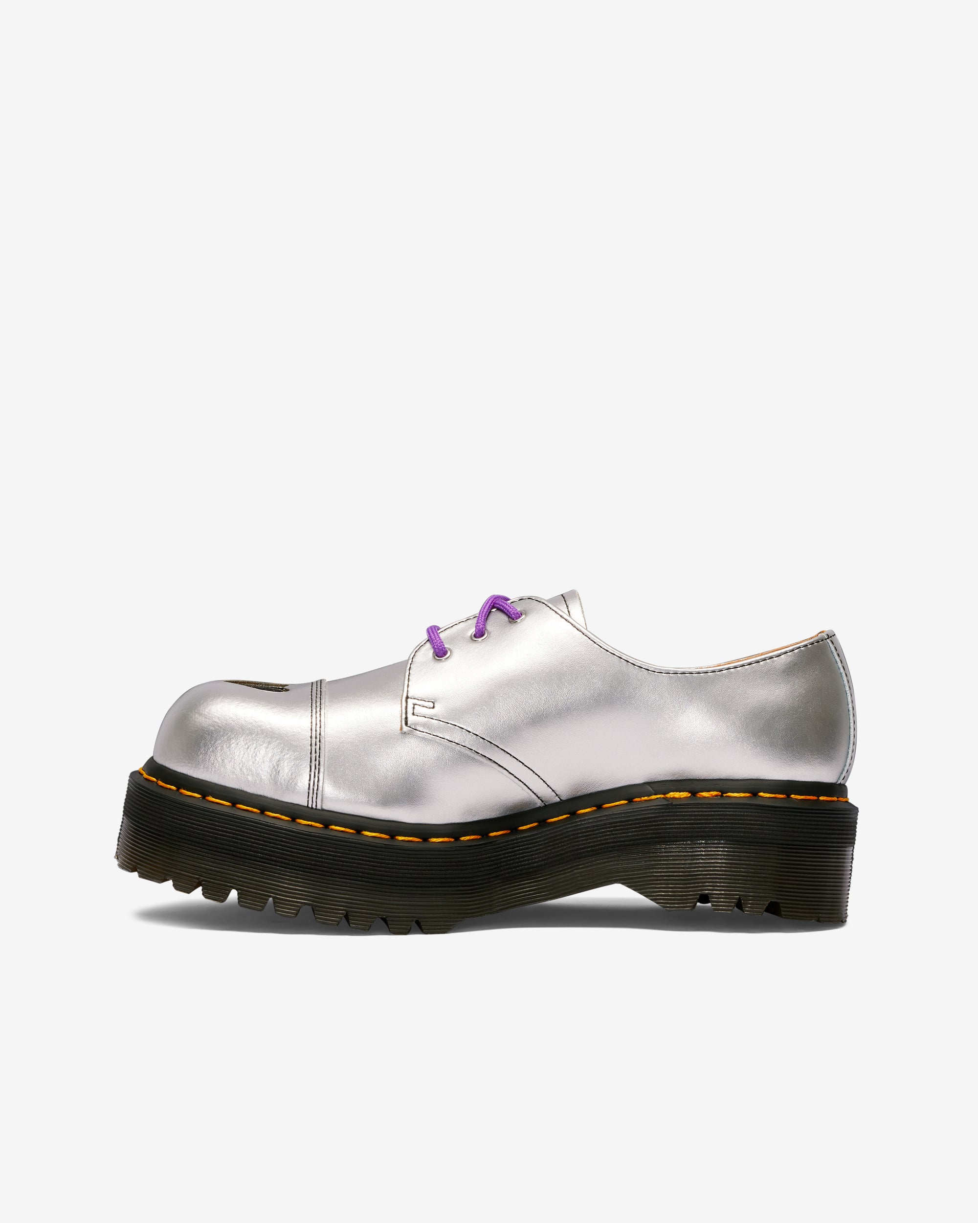 Reworked 1461 shoePlatform Quad soleSteel toe exposed through heart-shaped cut-outCo-branding throughoutClassic yellow welt stitching