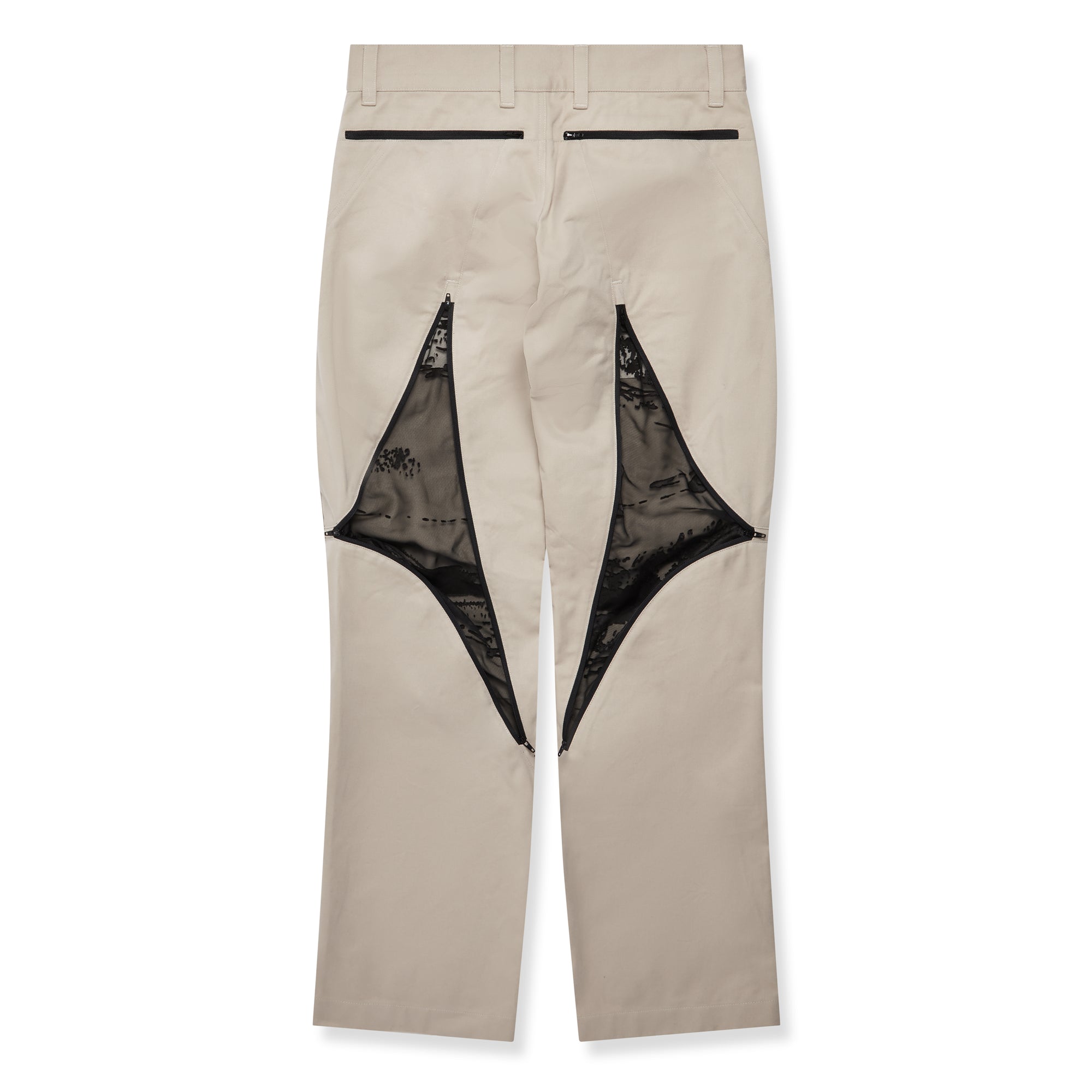 Sheer contrast burnout mesh inlays at rear thigh