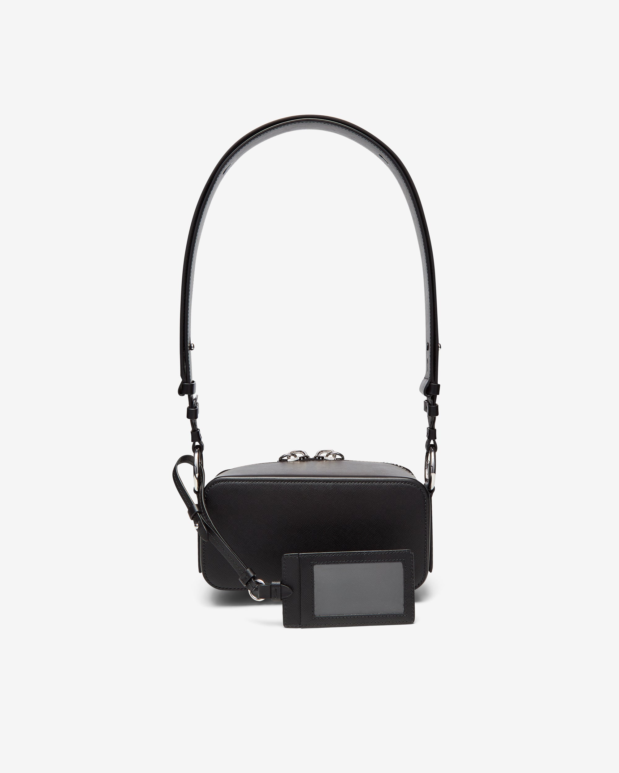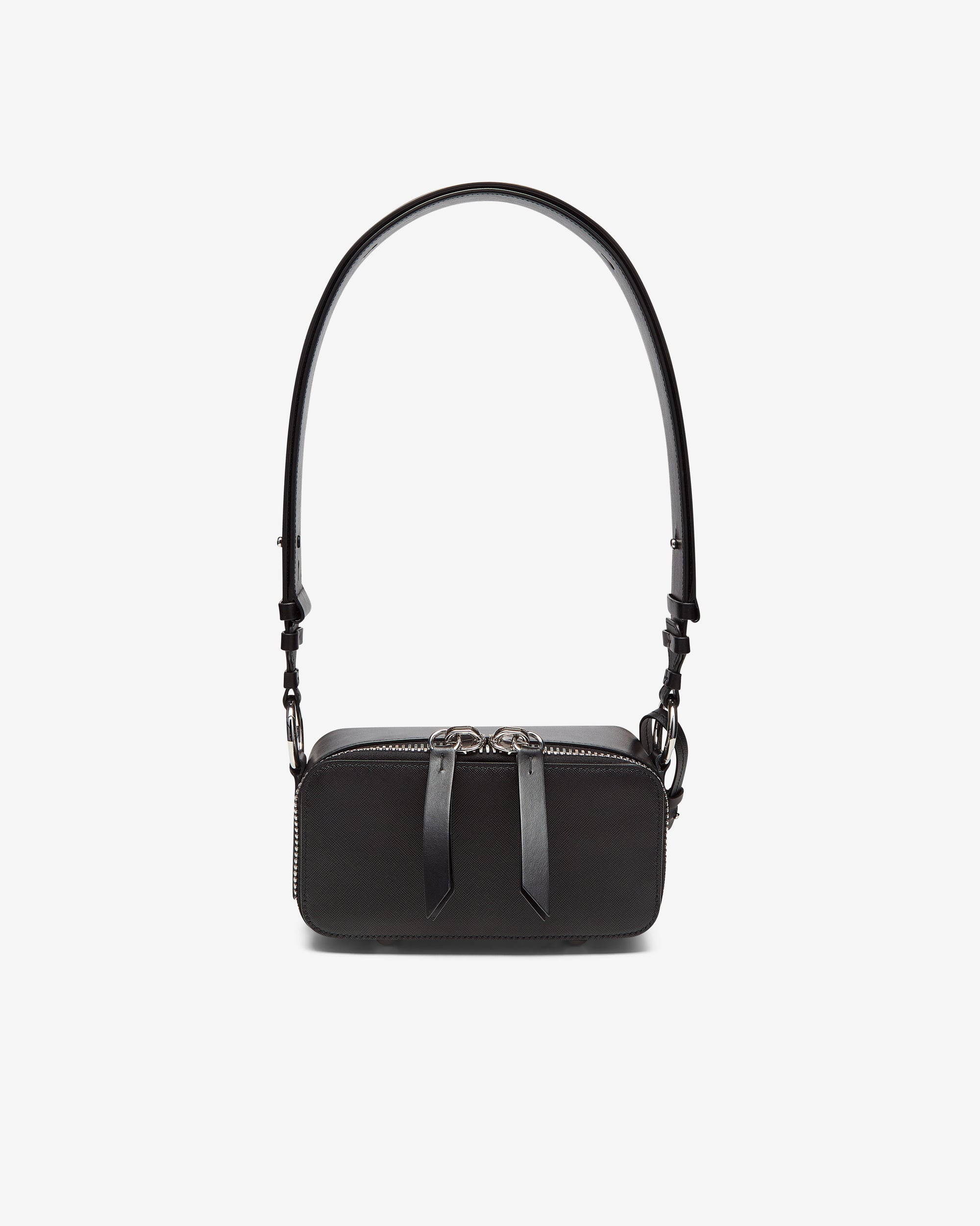 Shoulder strapDouble zipperIconic four stitchAttached card holder100% LeatherMade in Italy