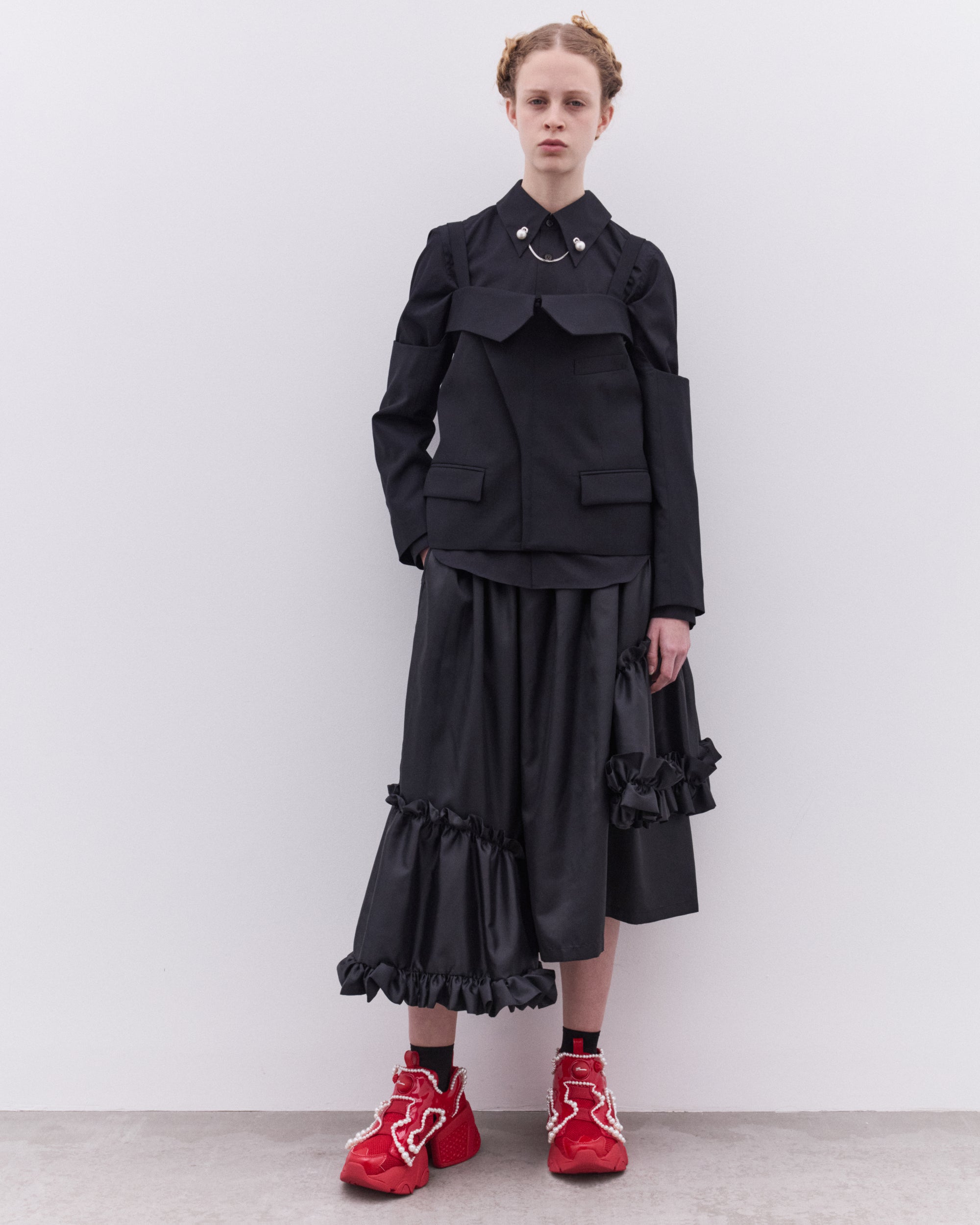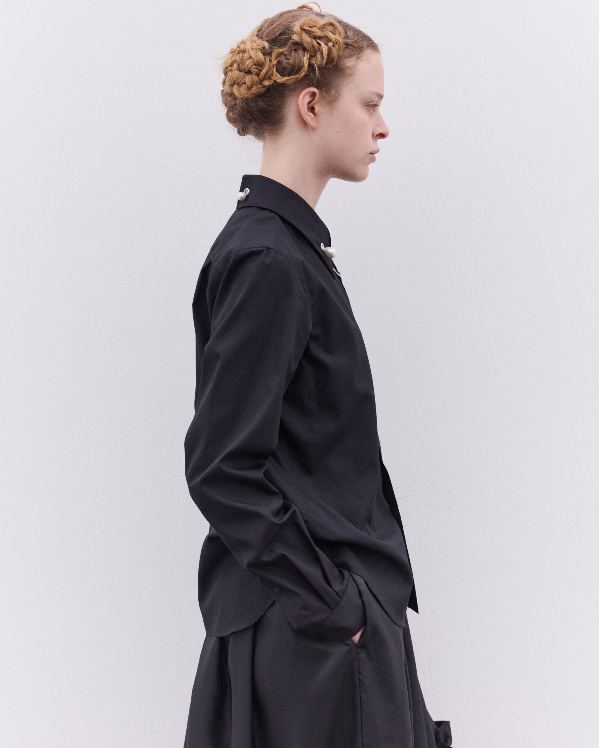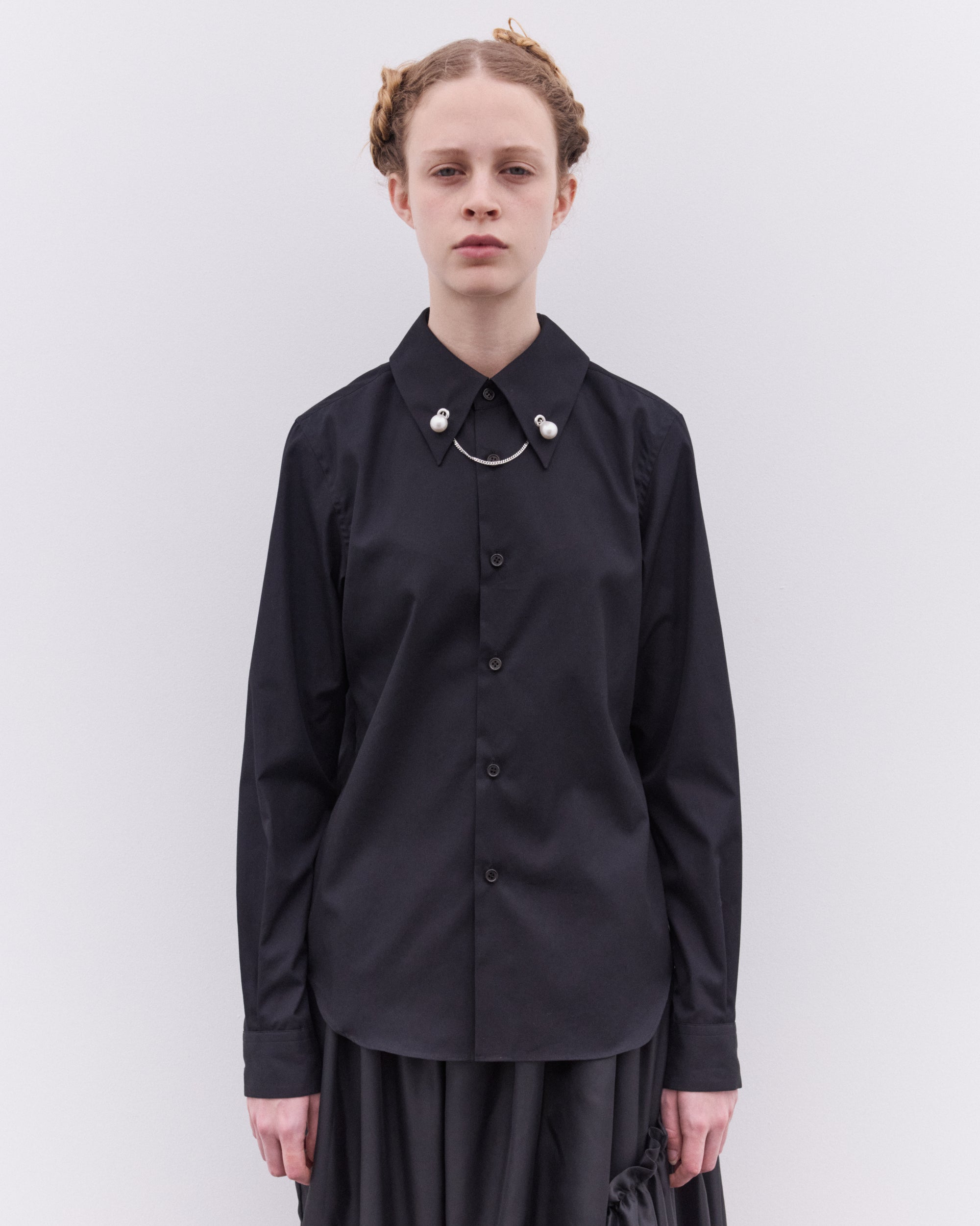 Silver-tone and pearl charm at collarButton closureCurved hemLong sleevesRear side pleats100% CottonMade in Japan
