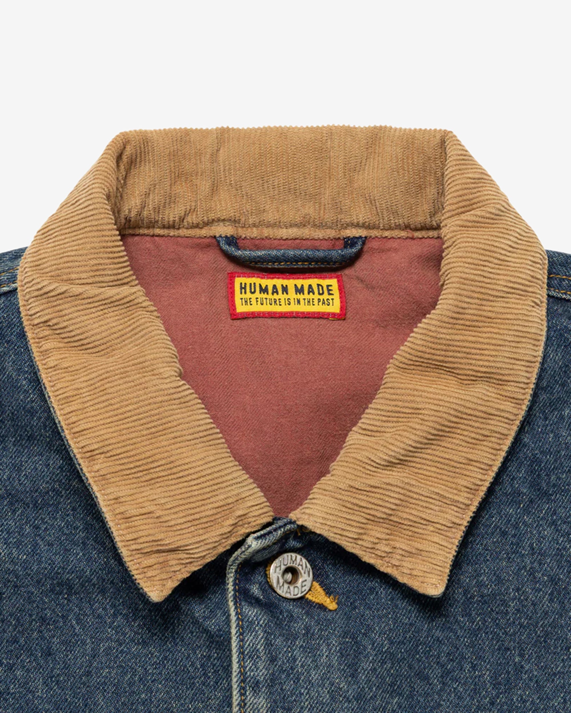Corduroy collar and lining on the cuffs