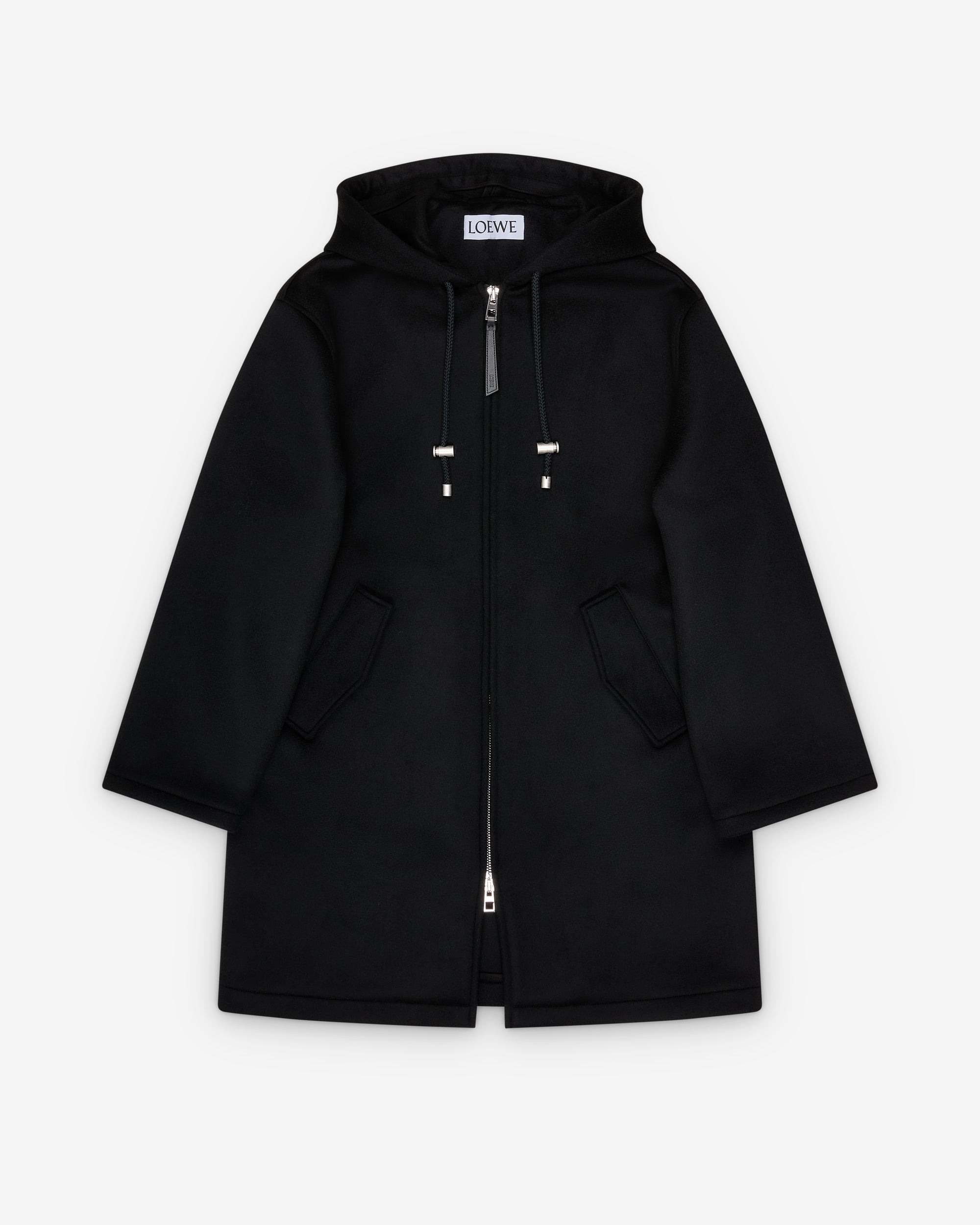 Regular fit, short lengthHooded collarZip front fastening with Puzzle pullerSnap button diagonal flap pockets, inside LOEWE Anagram leather patch pocketFully linedLOEWE Anagram embossed leather patch placed on the hoodWoolMade in Italy