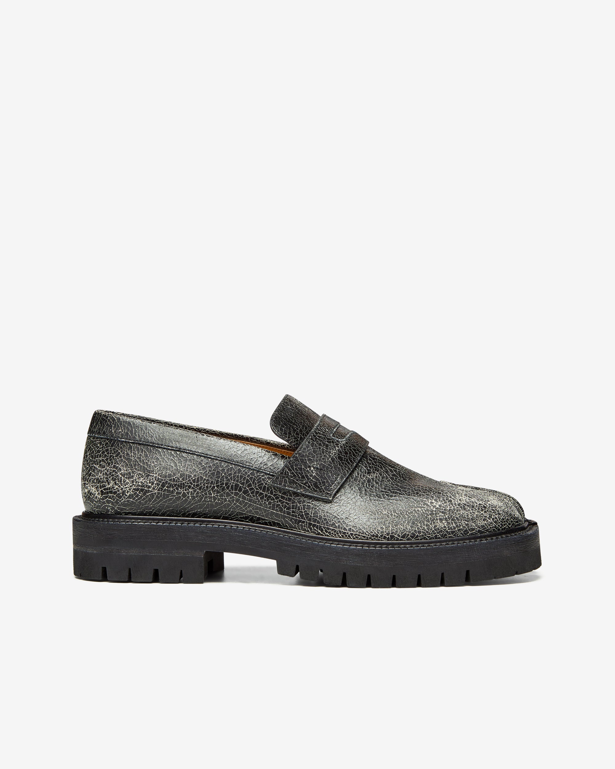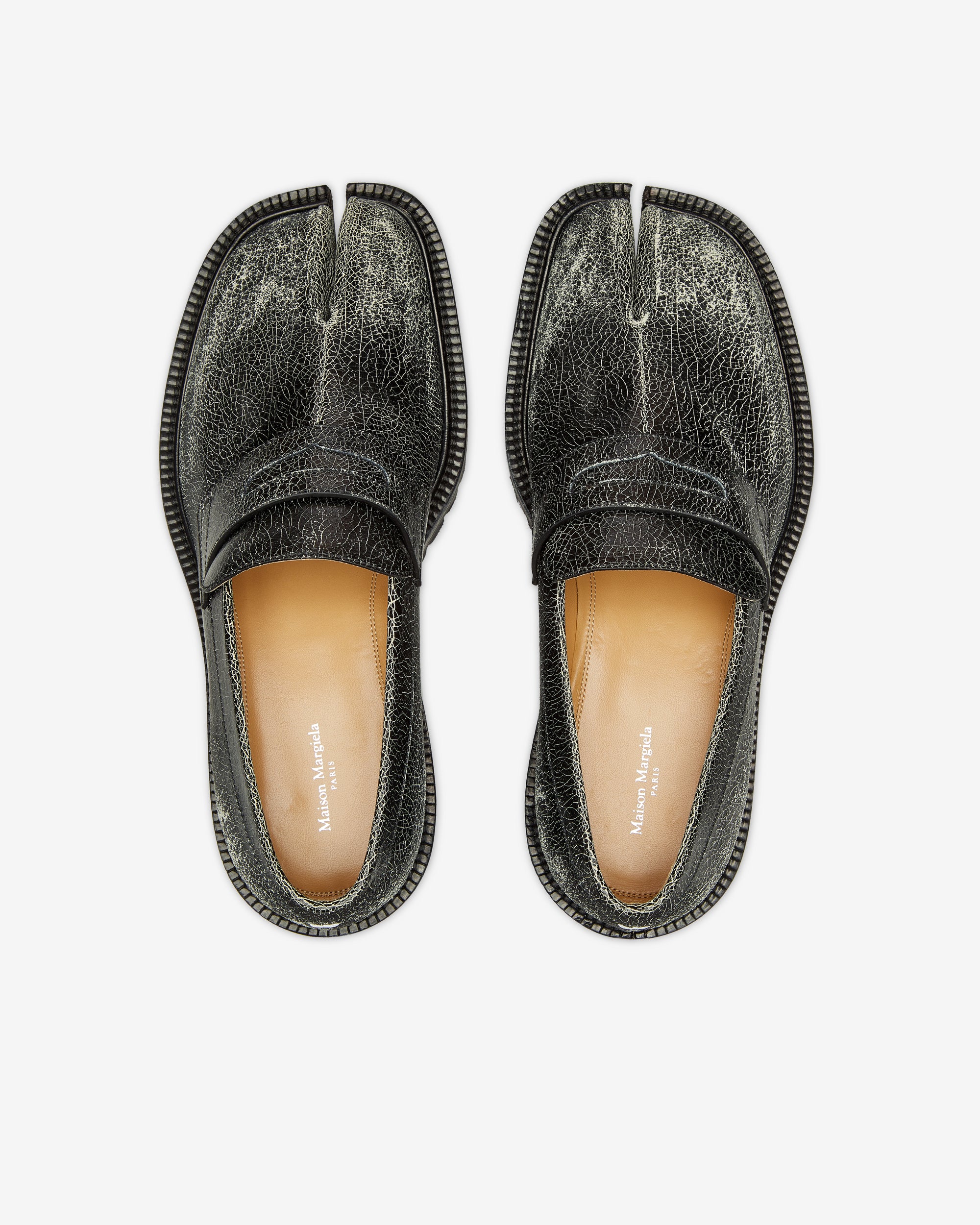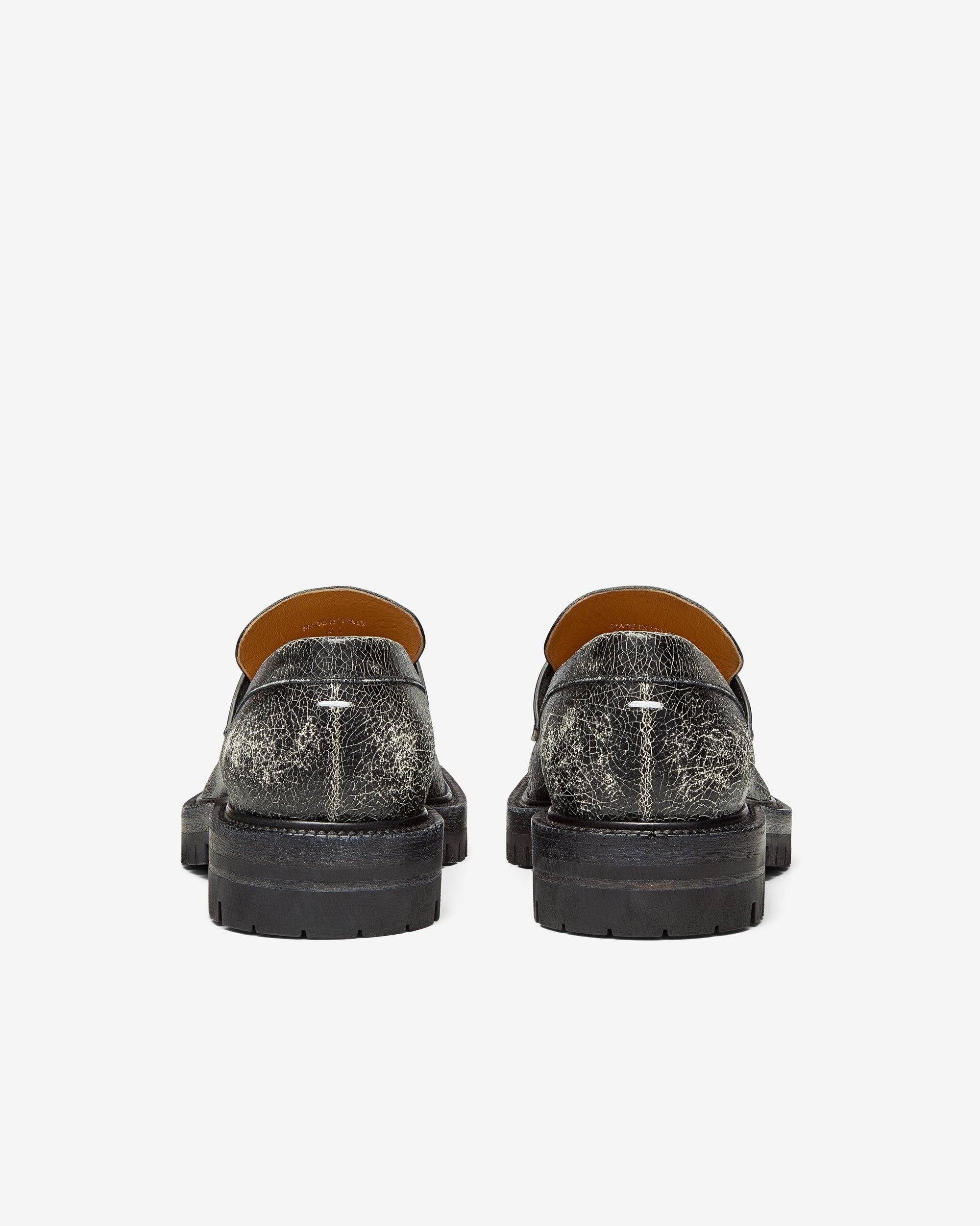 Tabi split toeWhite stitching at the backDual-wear soft heelBrand logo on the insoleInternal logo stampingCracked paint design100% LeatherMade in Italy
