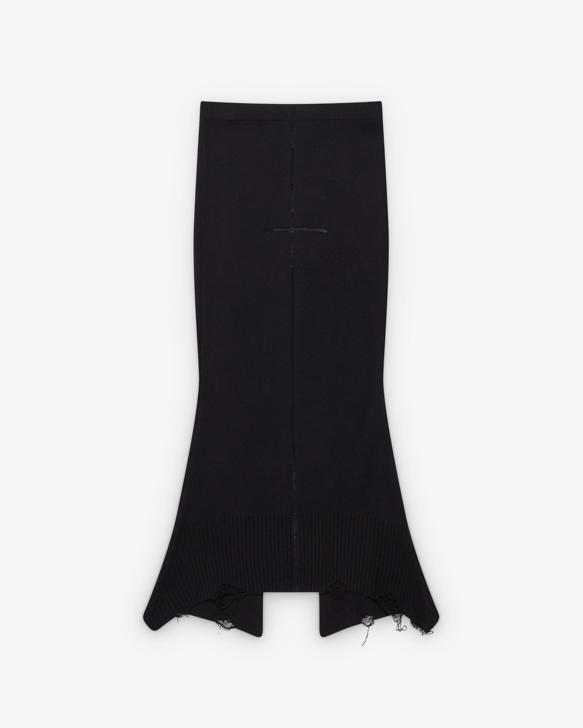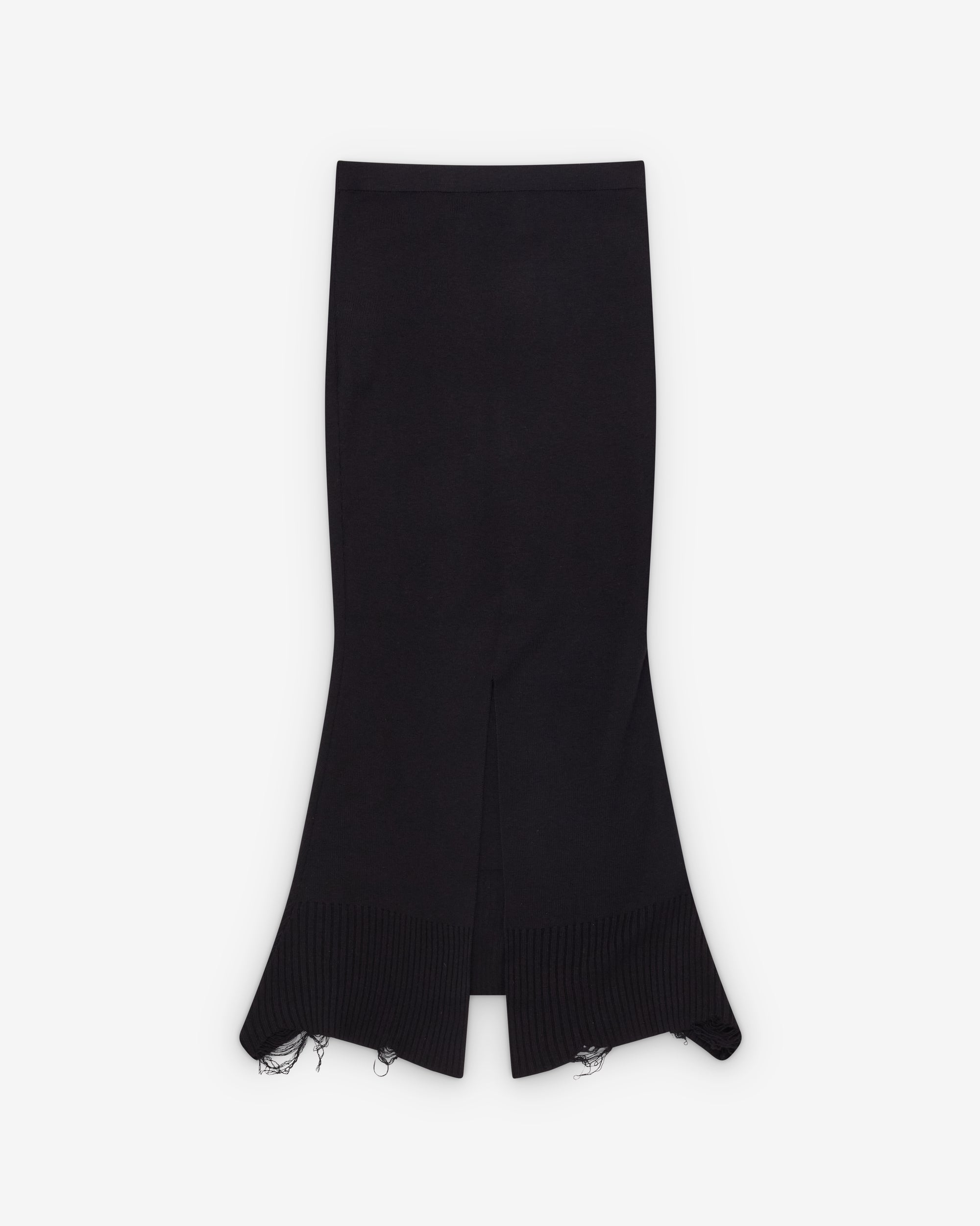 Elasticated waistbandDistressing at hemSlit at backAsymmetric hem