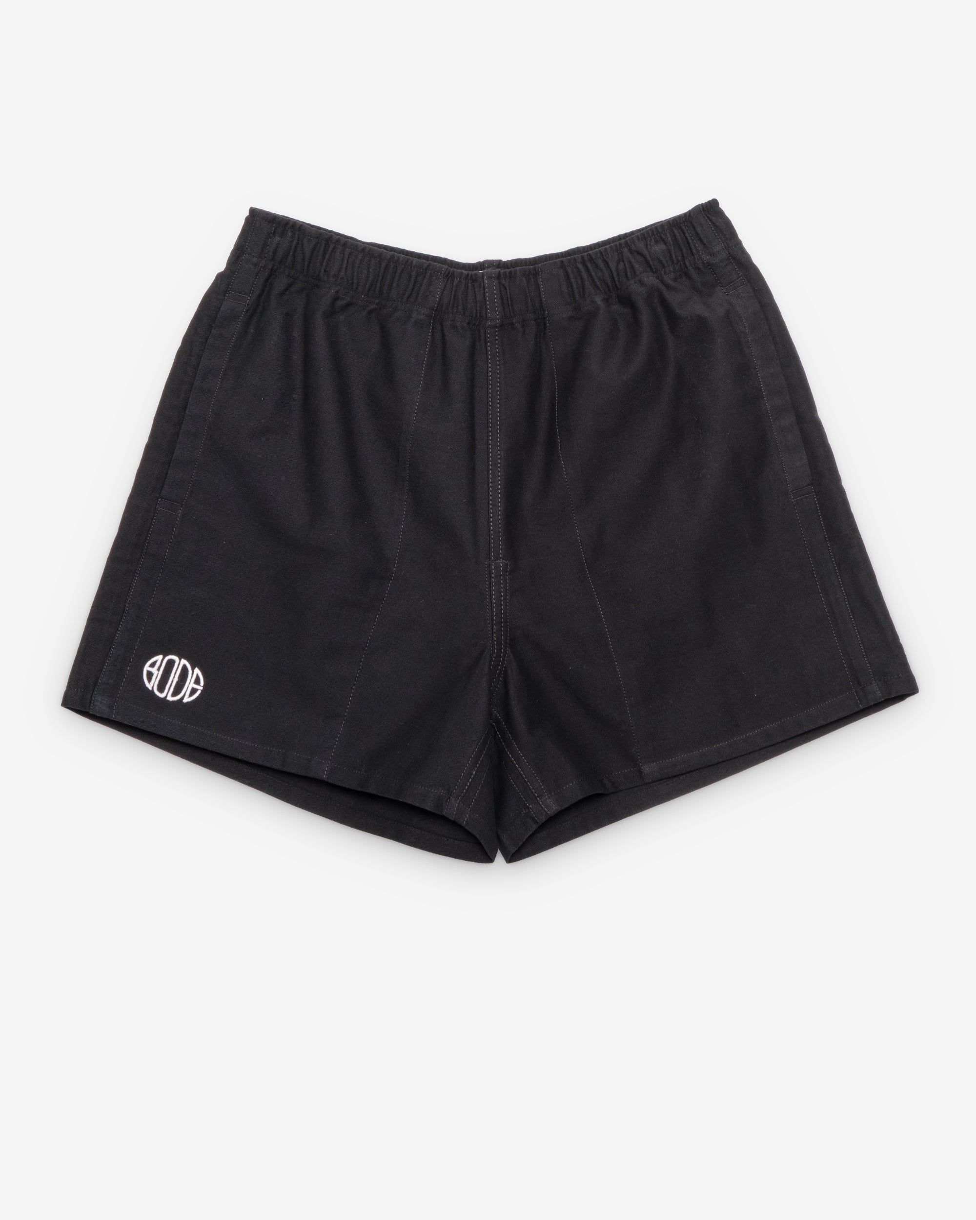 Rugby short inspiredShort inseamWide leg openingHeavy cotton twillEmbroidered Bode logo100% CottonMade in India