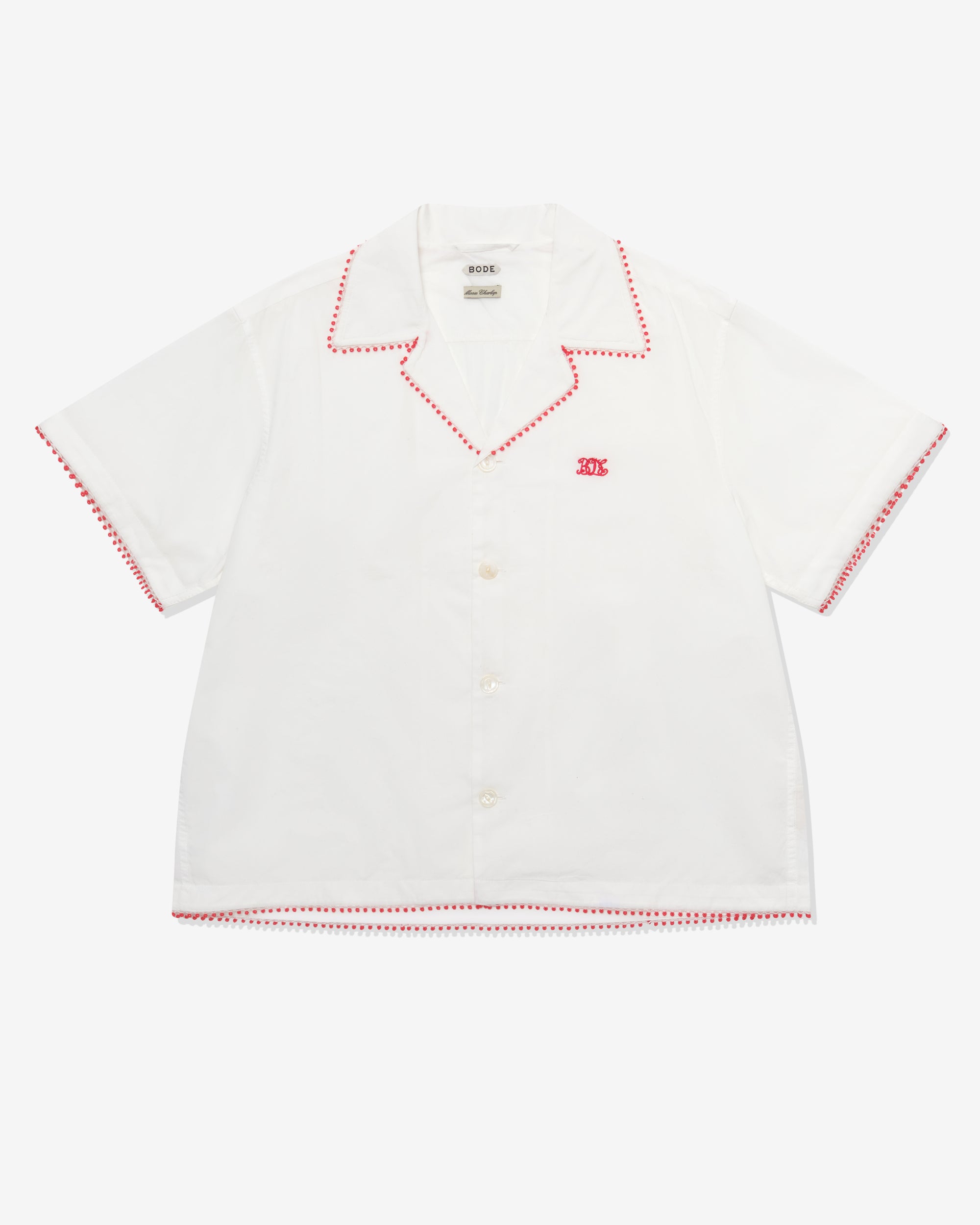 Lightweight cotton voileDelicate red lace trimBoxy fitRed Bode monogram100% CottonMade in India