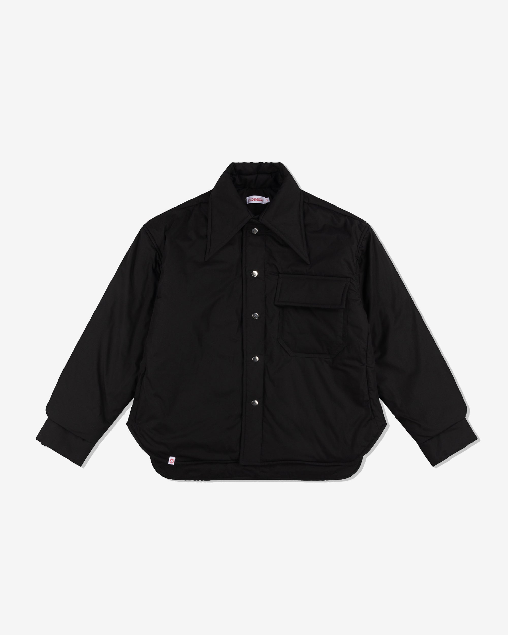 Oversized spread collarSnap button front closureFront patch pocketsCurved hemCuffed sleevesQuilted lining100% CottonMade in Lithuania