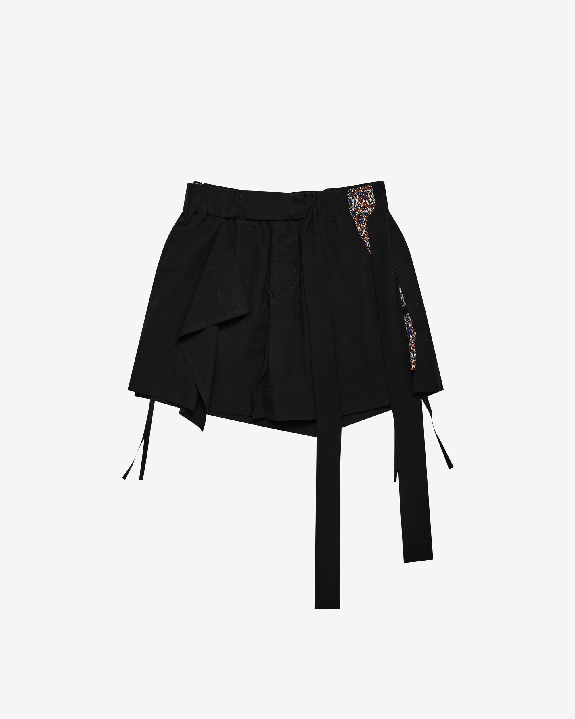 Elasticated, belted waist bandAsymmetric panels at legContrast floral pattern panelTie detailsSide seam pockets
