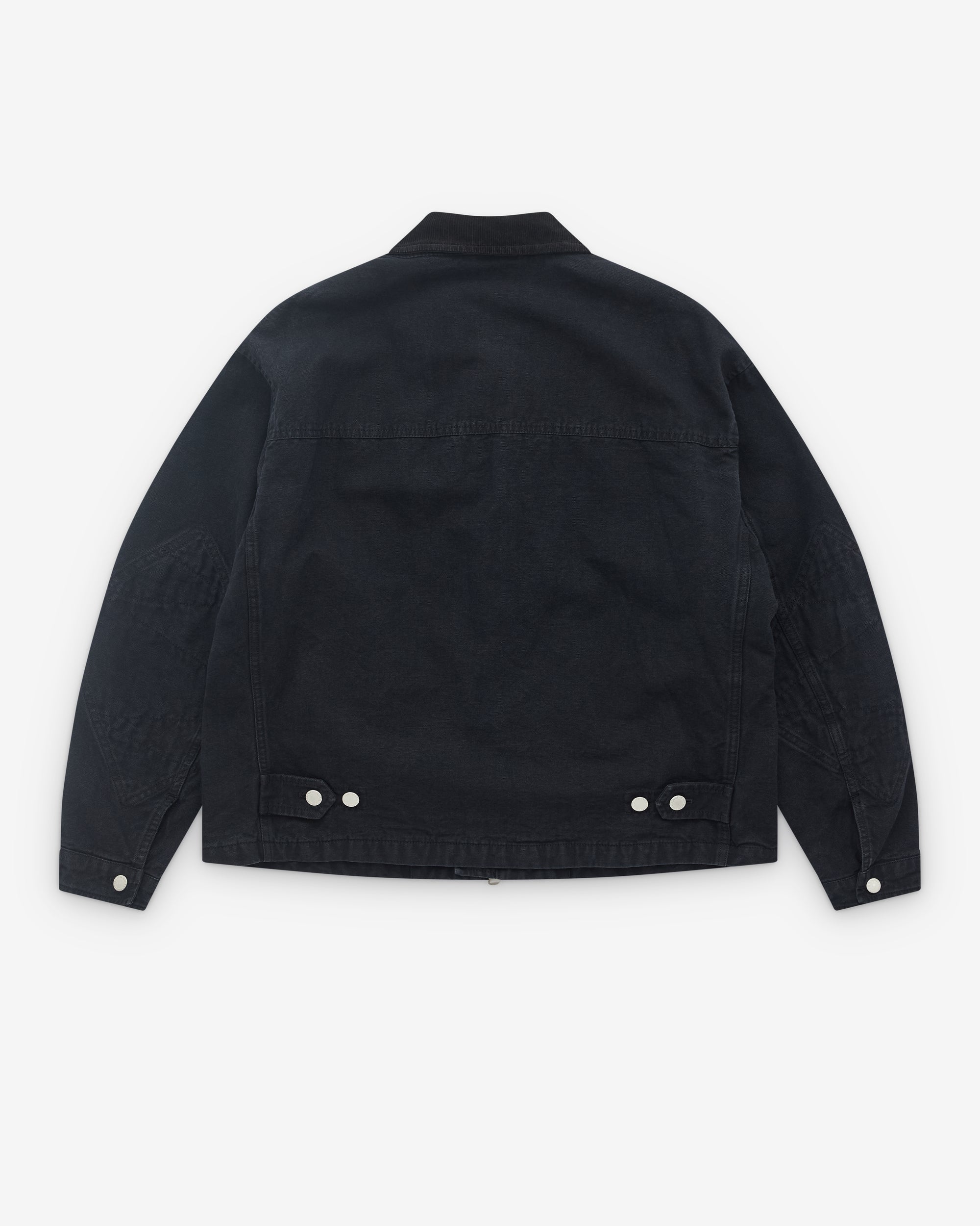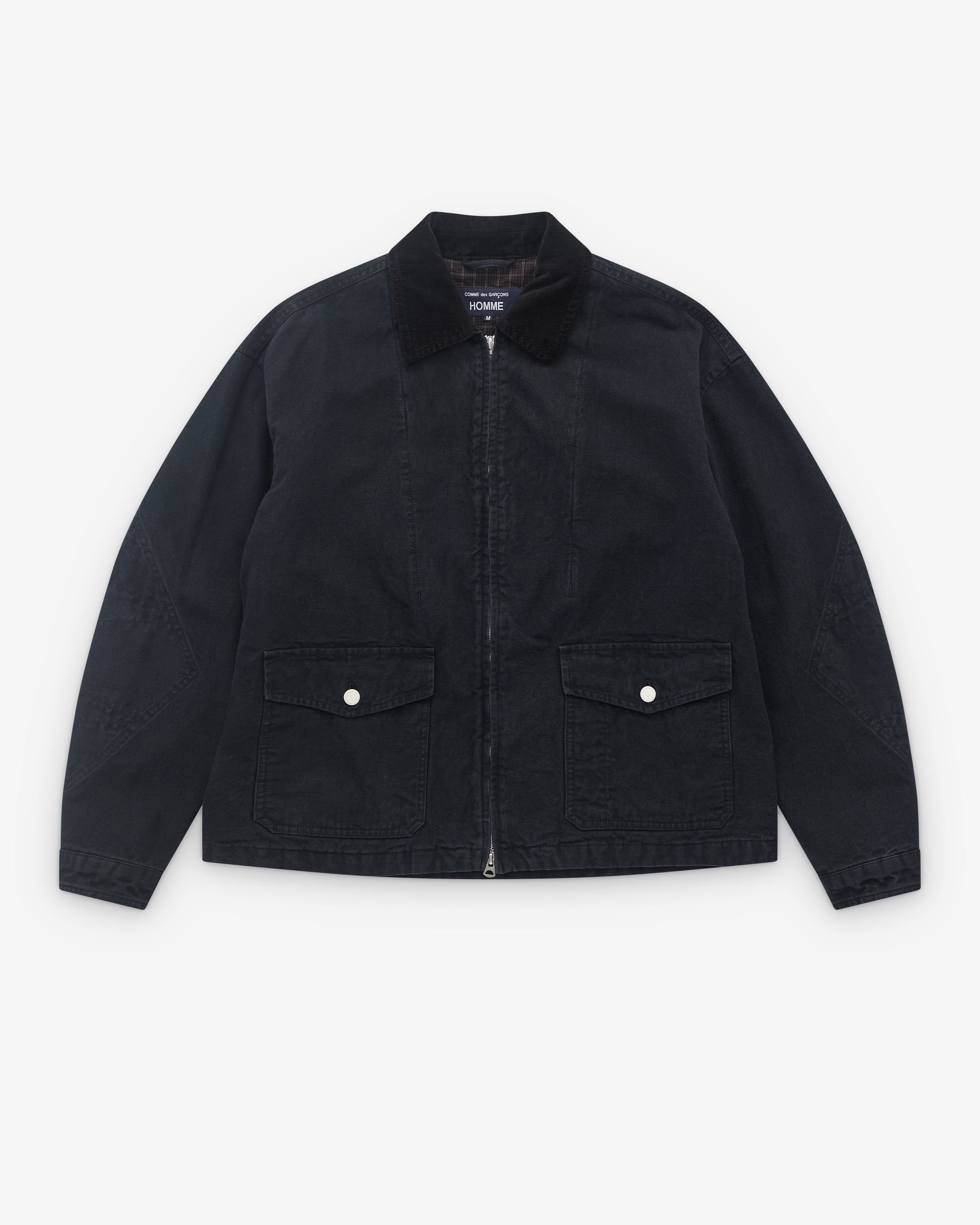Point collarTwo-way zip fasteningPress stud flap pockets Self elbow patchesButton cuffsGarment treatedBoxy fit