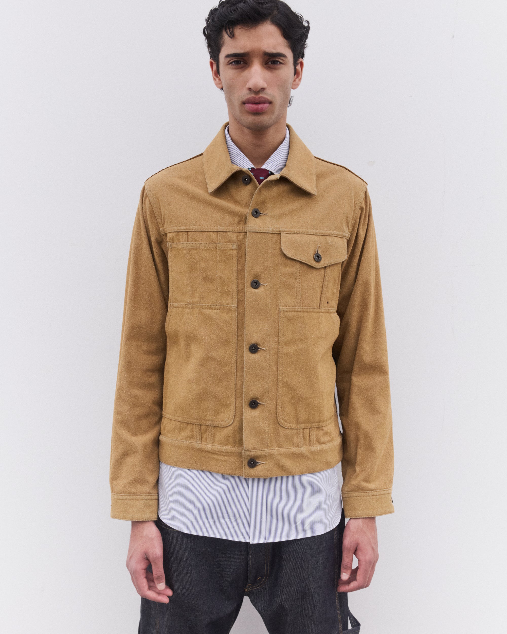 Point collarMulti pocket detailButton fasteningContrast rear panellingLined100% CottonMade in Japan