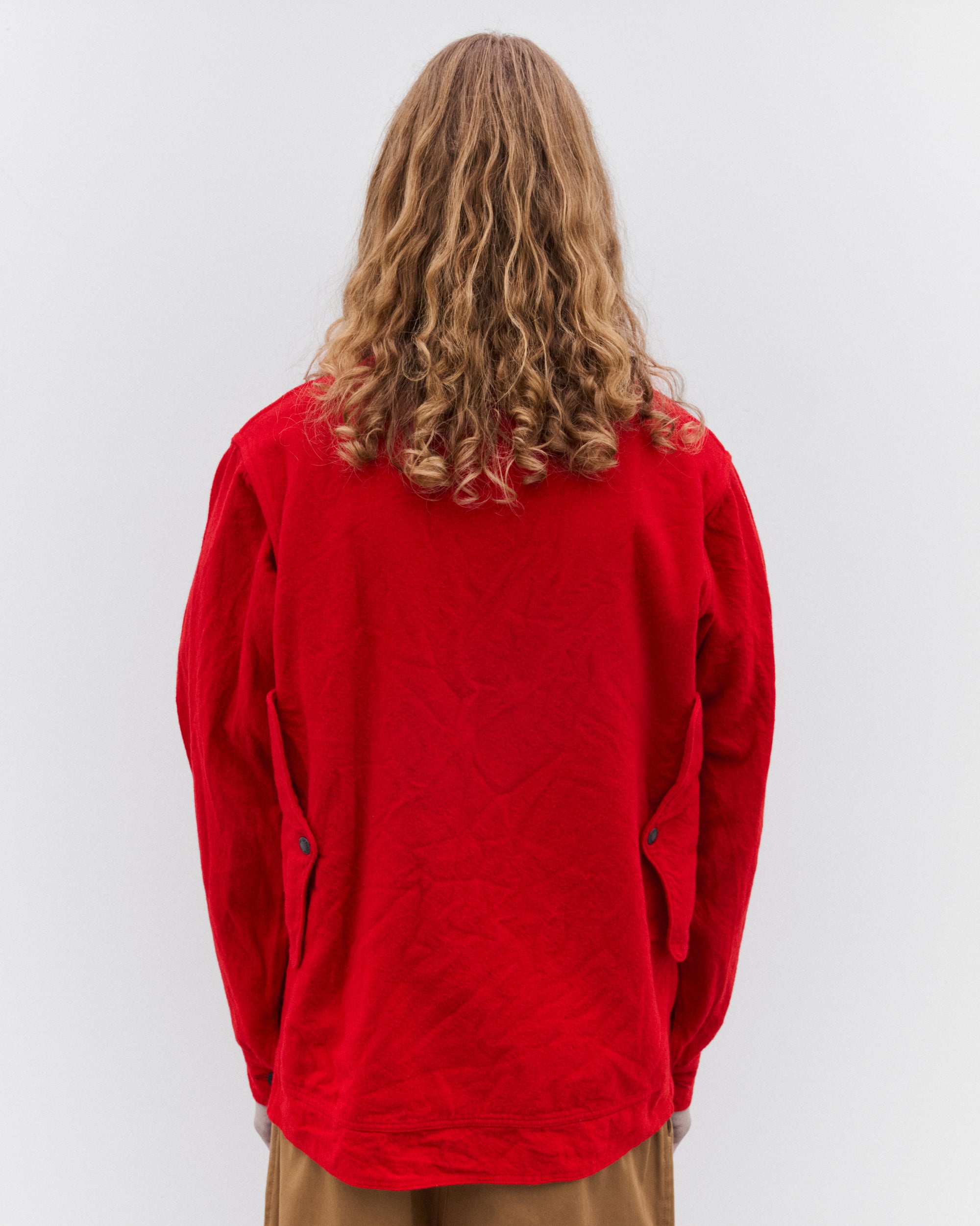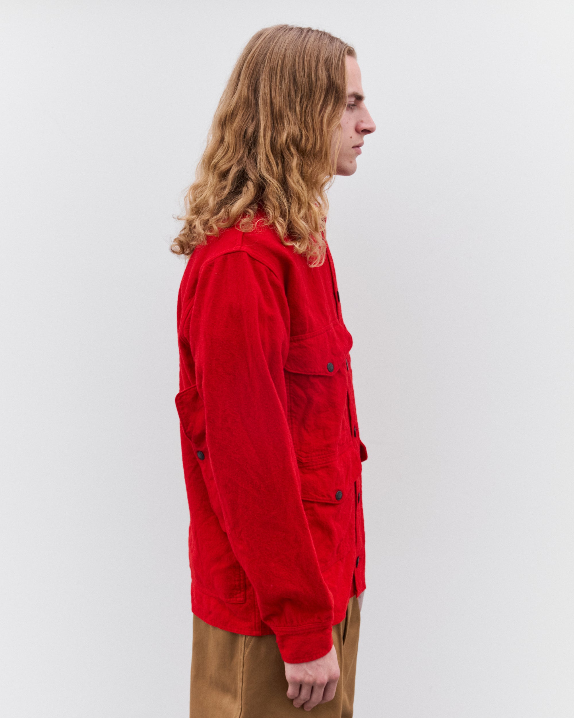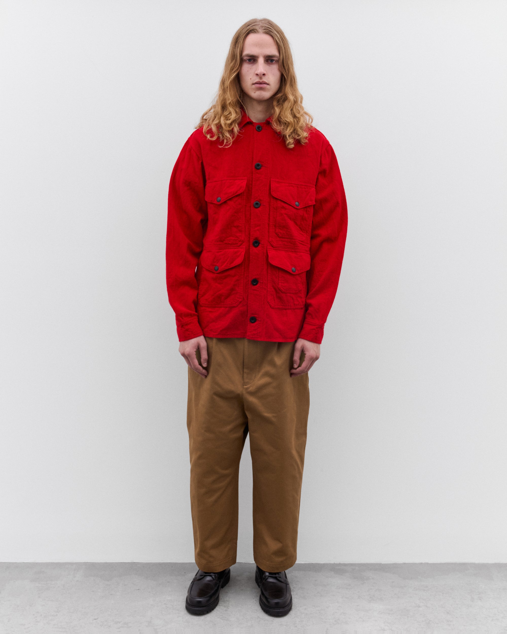 Made in collaboration with FilsonContrast point collarButton placketFront flap pocketsGarment dyed60% Wool, 40% AcrylicMade in Japan