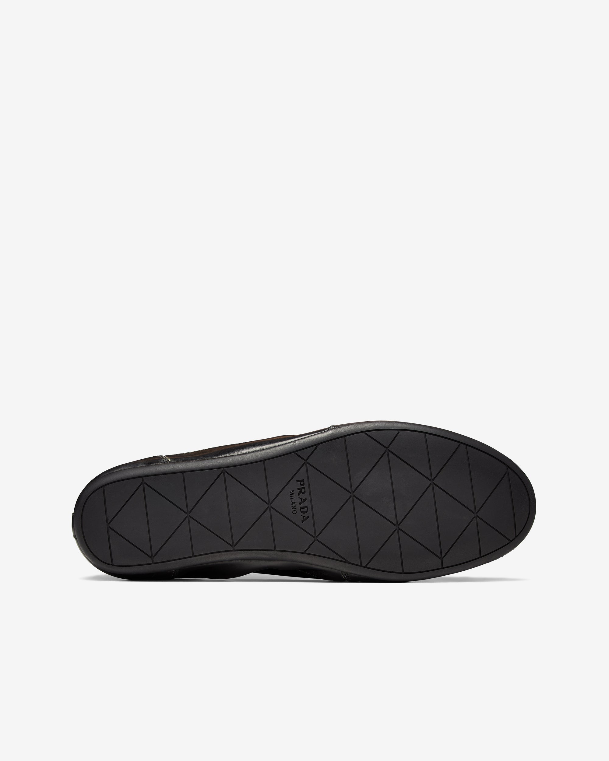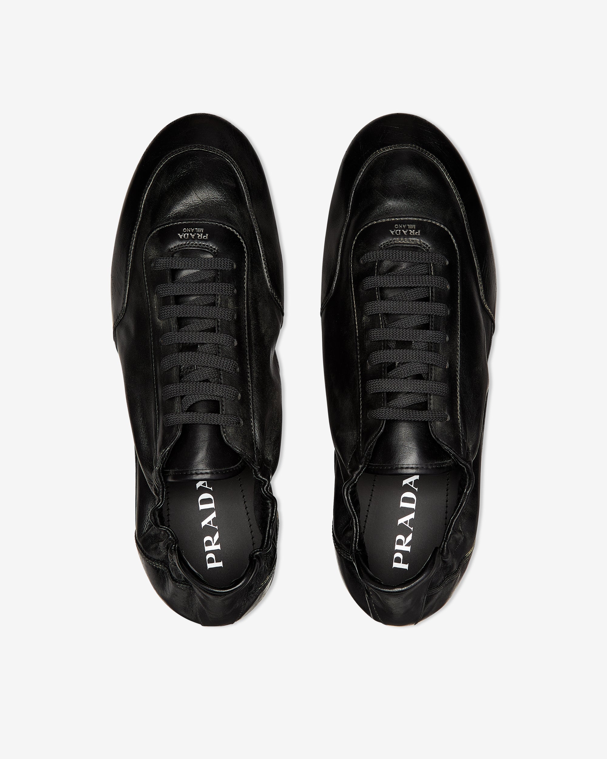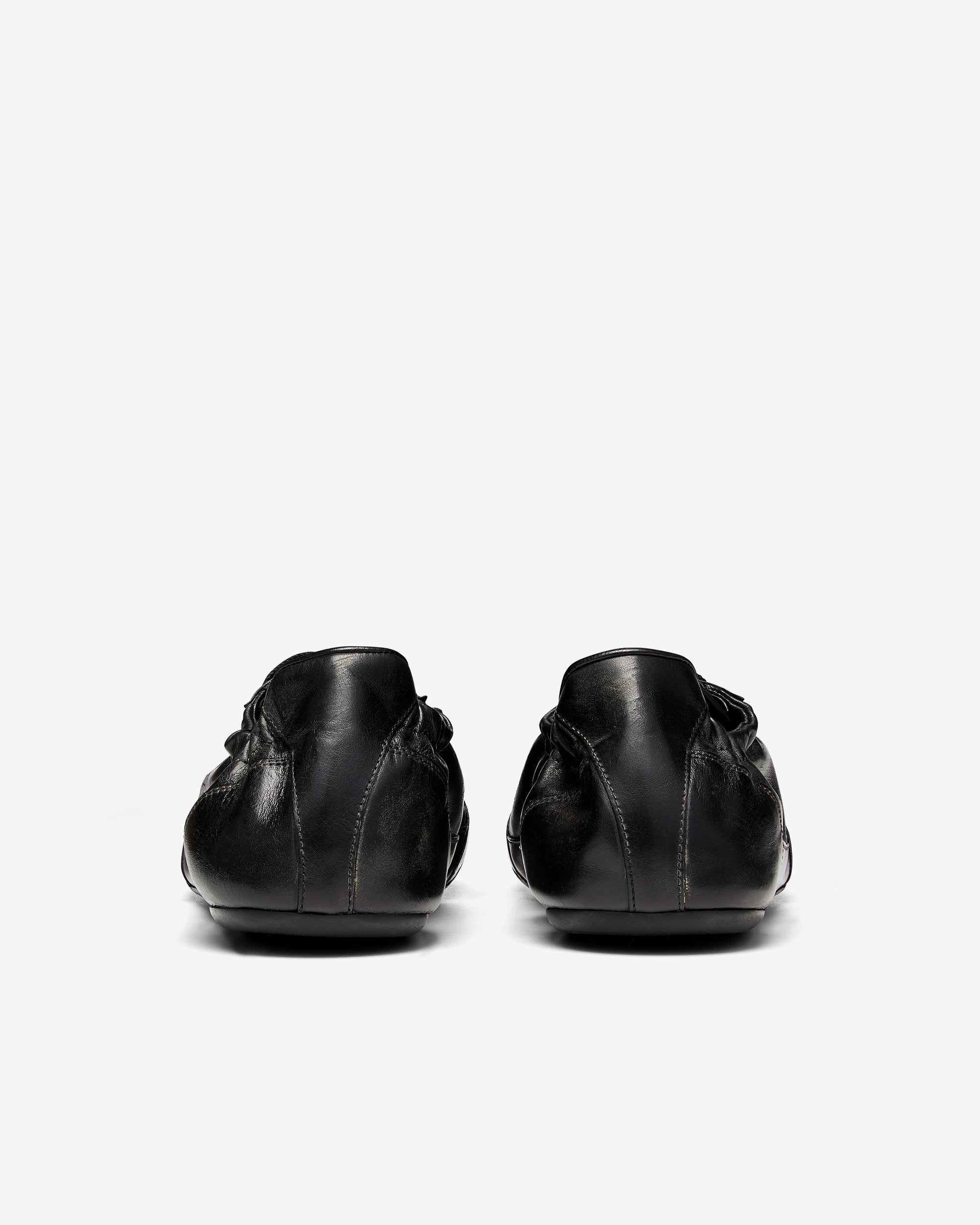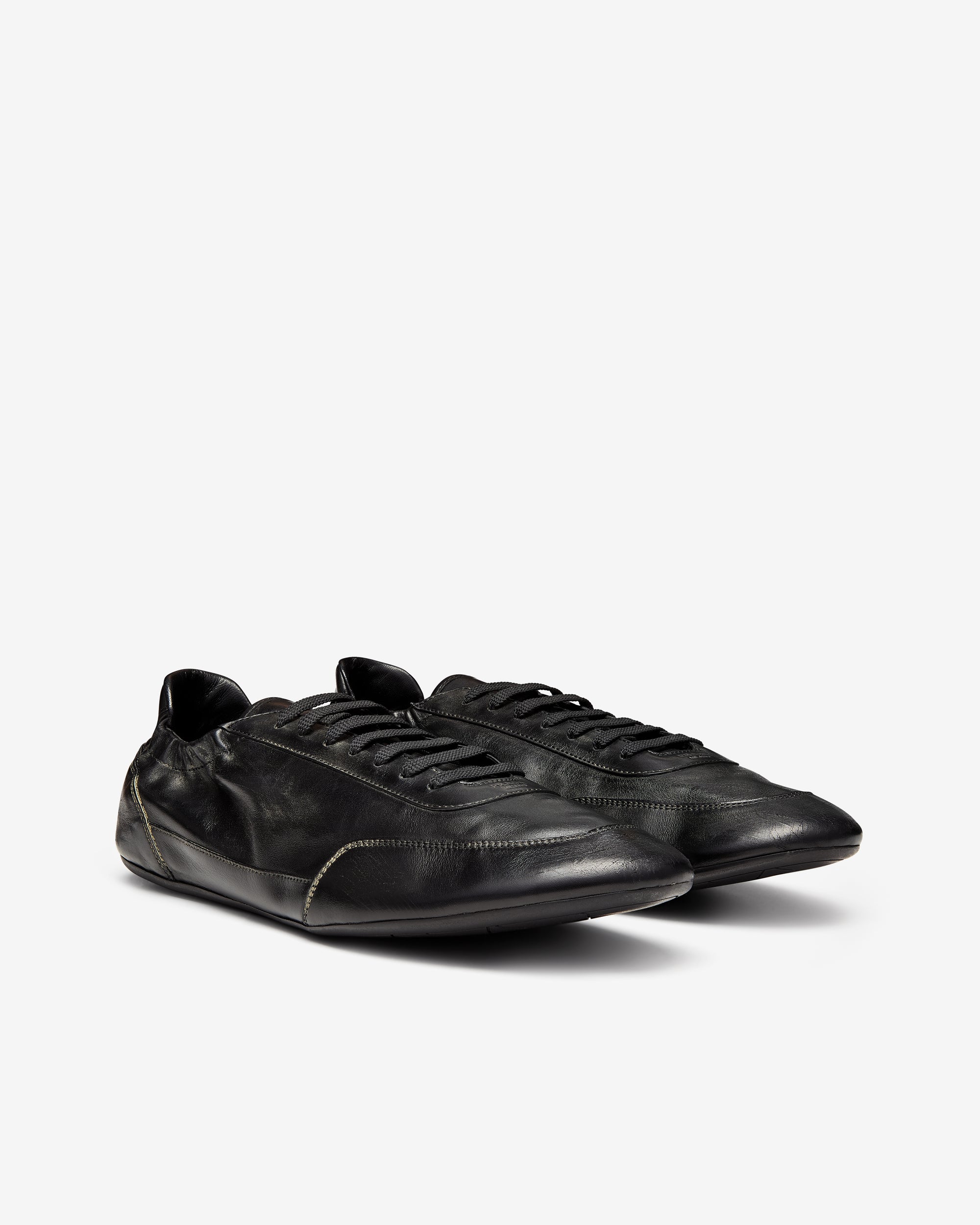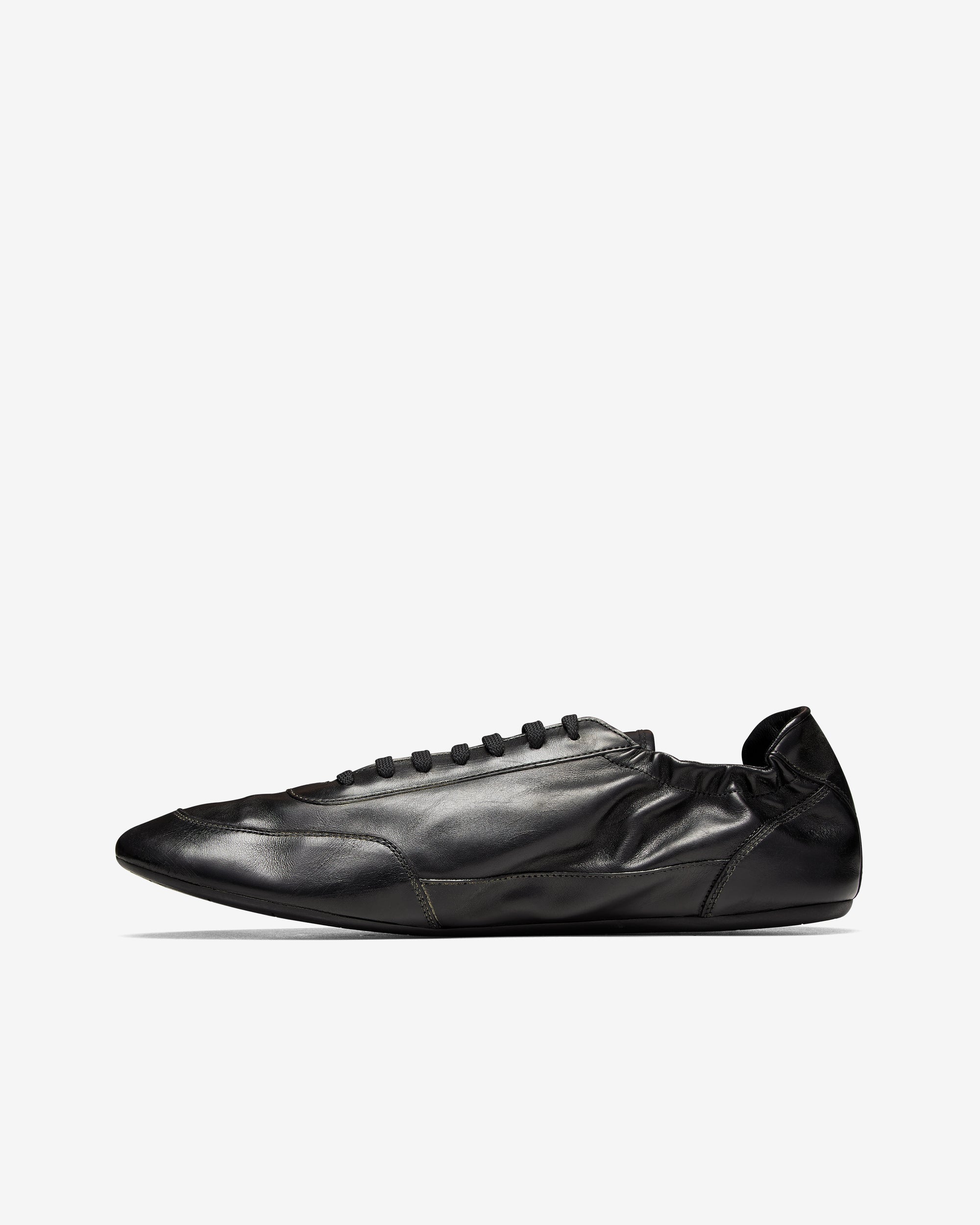 With laces Screen-printed logo on the upper Thin rubber sole Removable leather-covered insole These shoes have undergone an artisan treatment, giving the leather a deliberate vintage look.