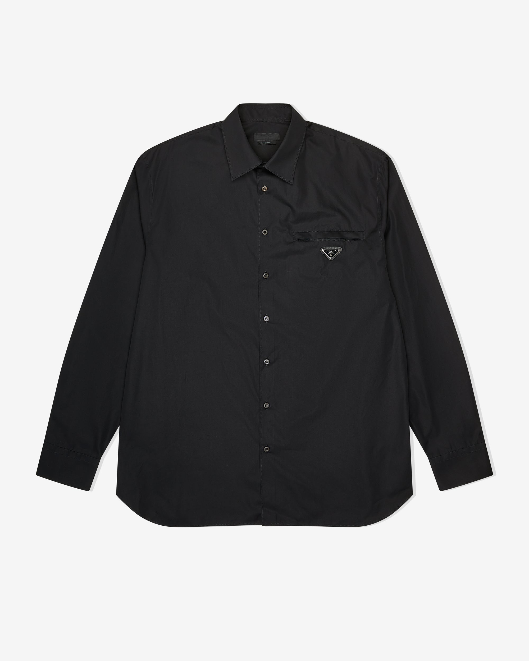 Oversized fitClassic collarZipper pocketRounded hemClassic cuffMother-of-pearl button closureEnameled metal triangle logo on the front100% CottonMade in Italy