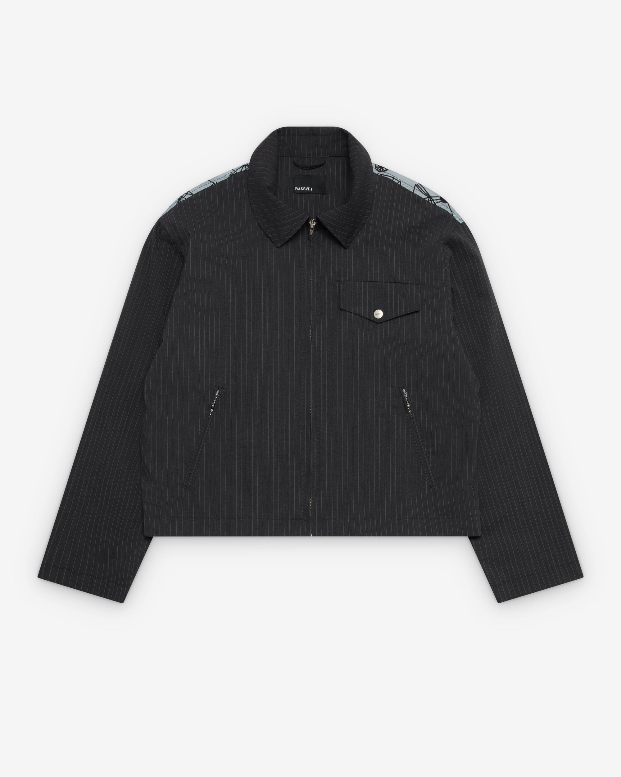Rassvet Men's Pinstripe Scribble Snap Jacket Grey