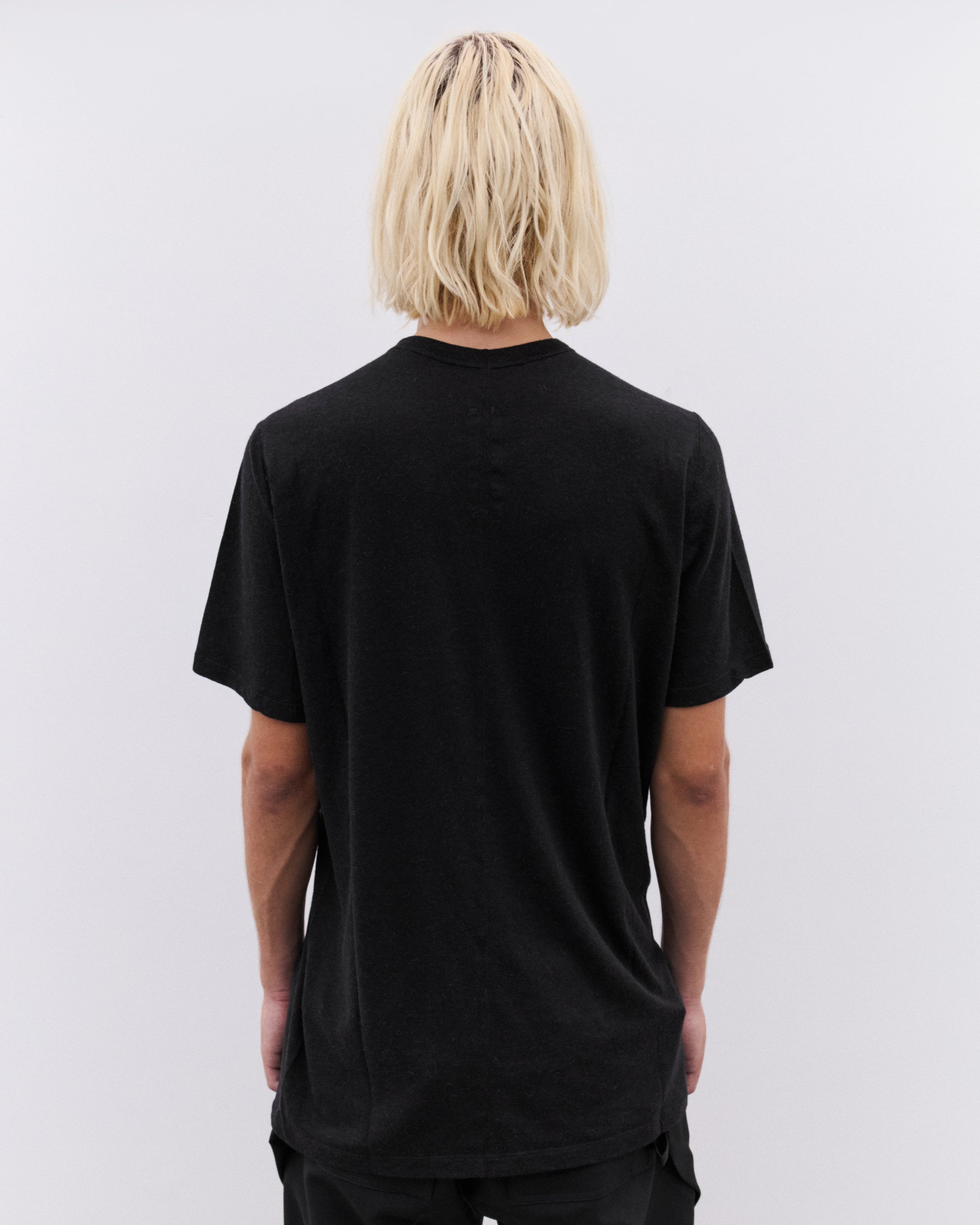 Short sleevesRib knit crew neckRear central single seamMedium weight fabrication with soft handfeel100% CottonMade in Italy