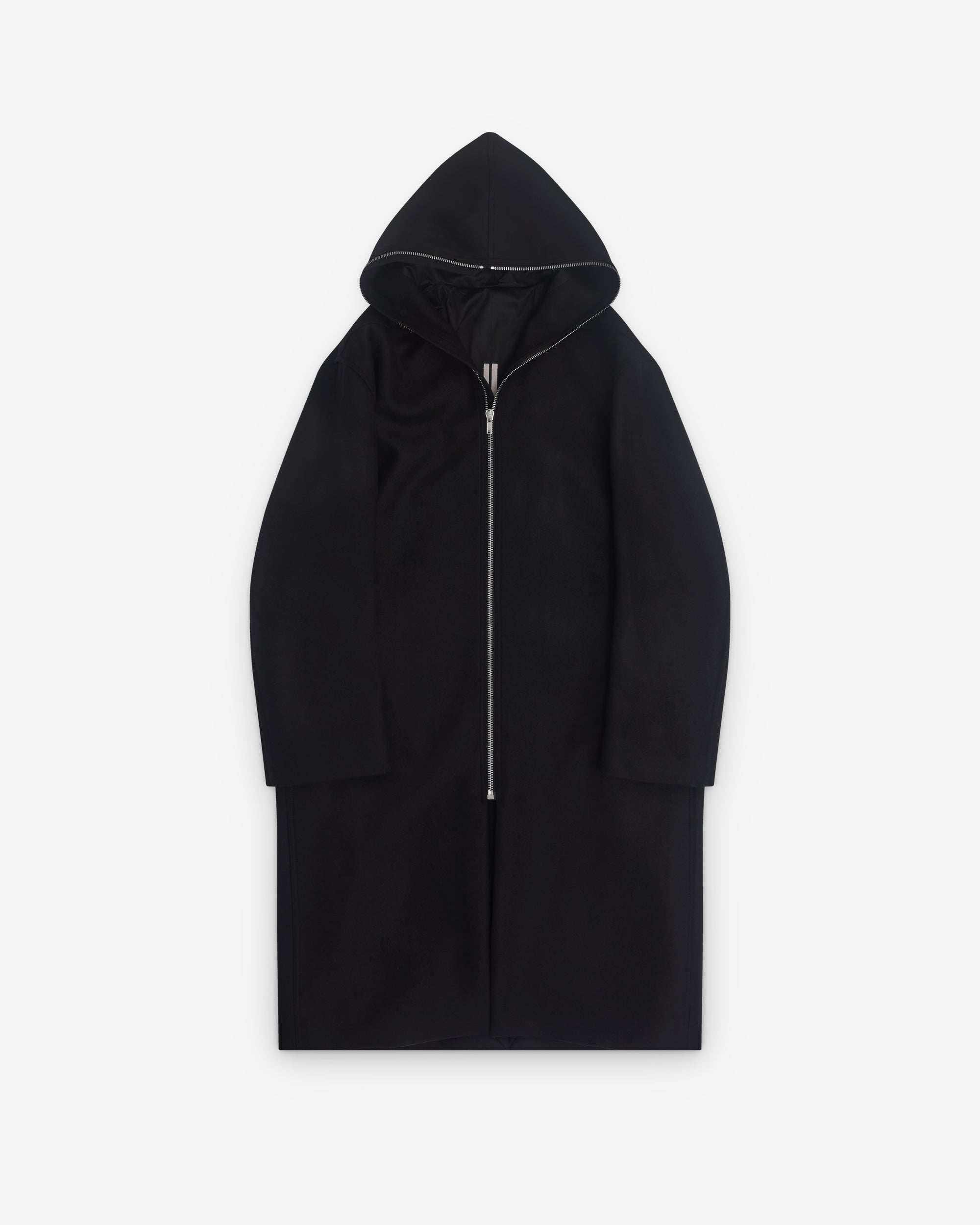 Below knee lengthLong loose sleevesLarge hood with zip through fasteningSilver-tone hardwareFully linedDouble internal pockets