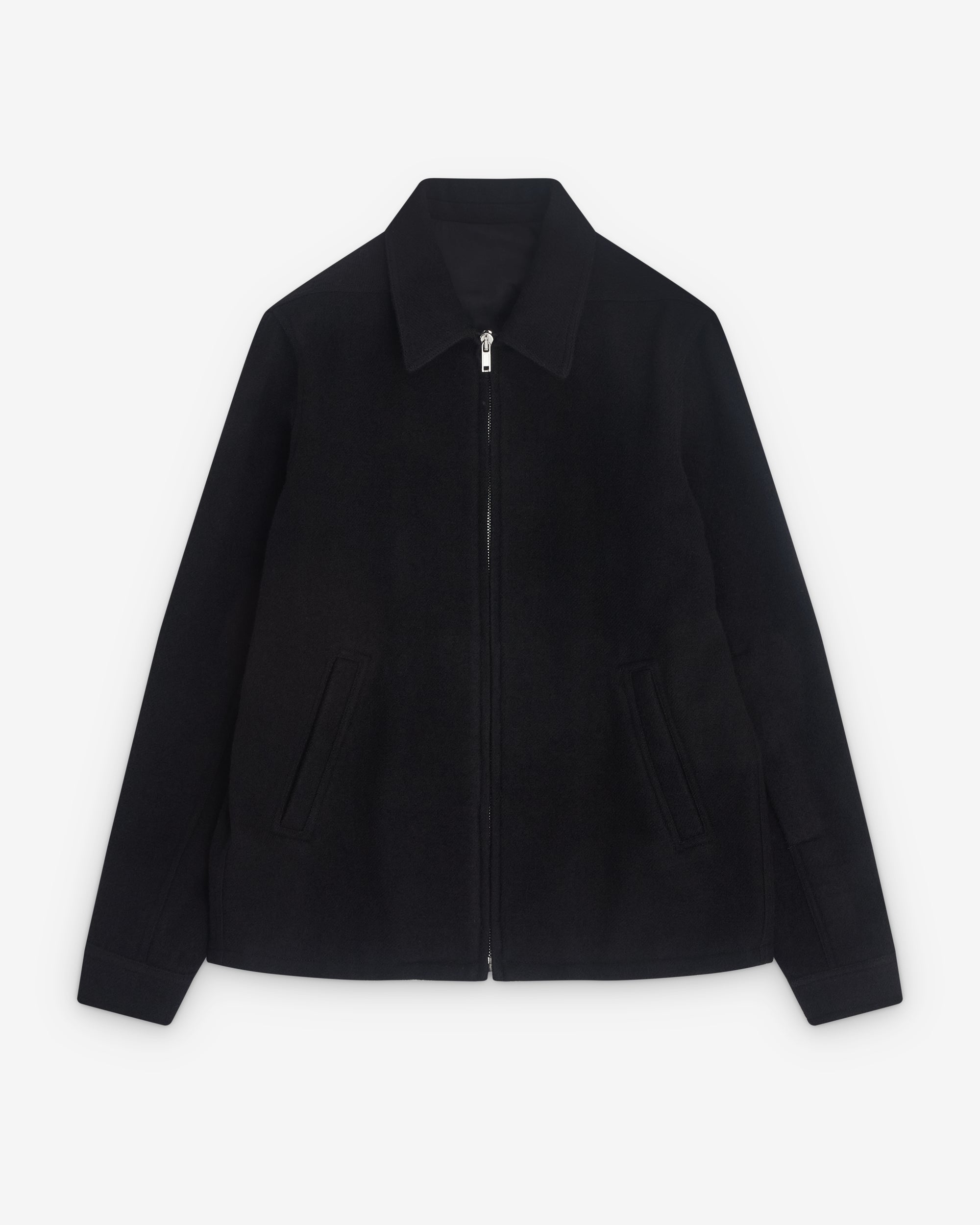 Point collarZip fasteningFront welt pocketsButton cuffsSilvertone hardwareBoxy fit