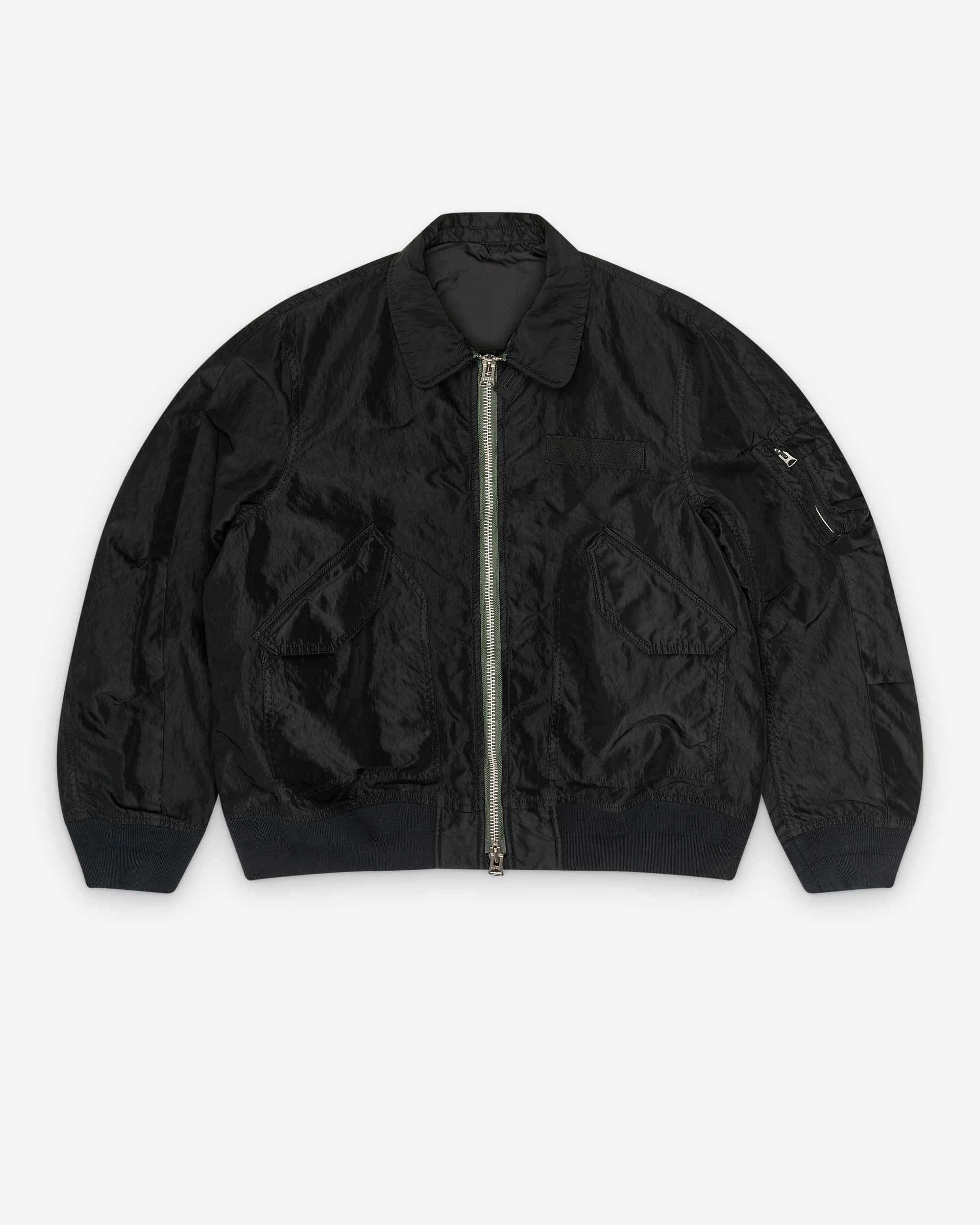 CollaredTwo way zip fasteningFlap pockets Rib knit trims100% NylonMade in Japan