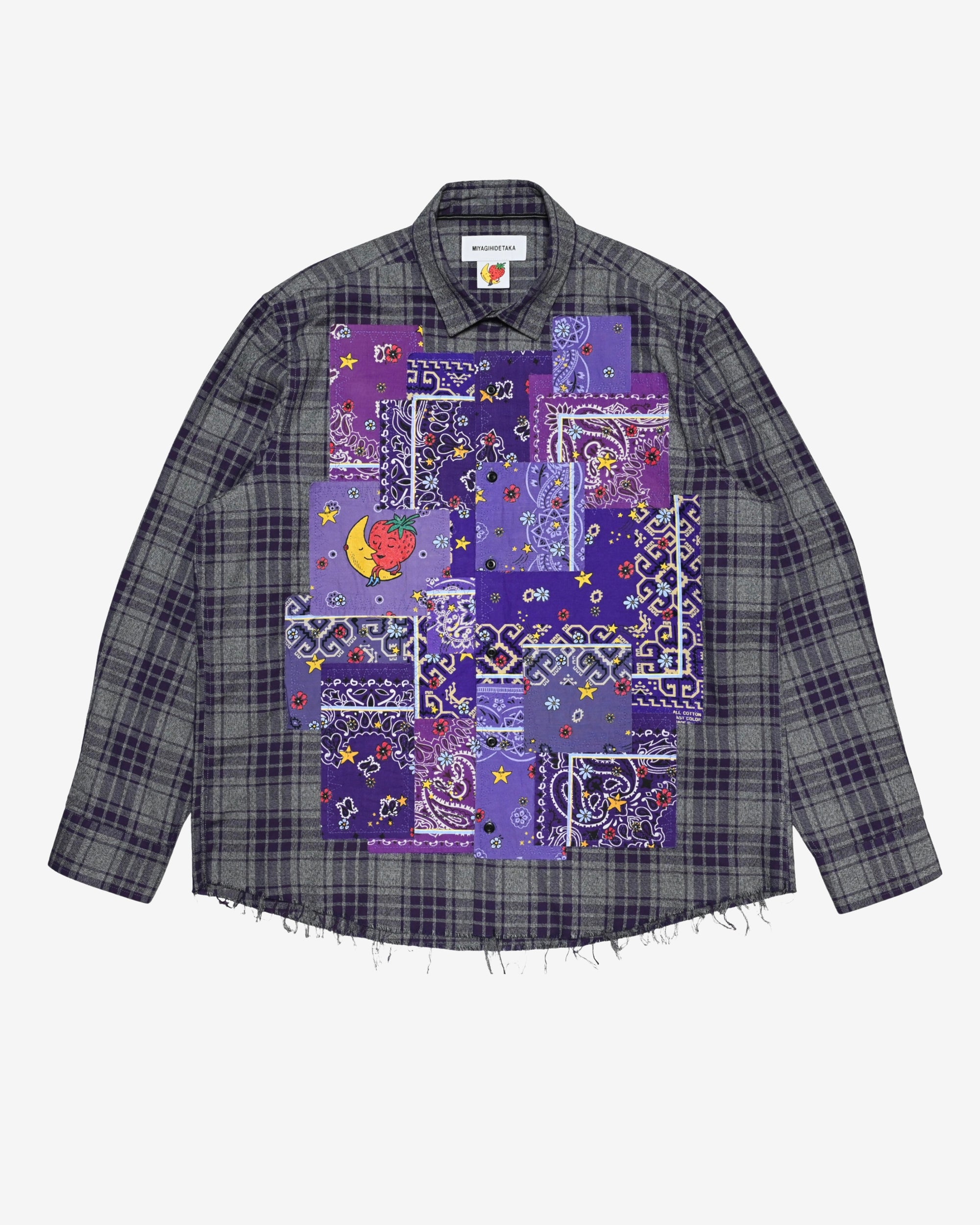 One-of-one vintage flannel shirts sourced and reworked by Miyagi Hidetaka. Each features a unique paneled patchwork customization made from vintage, made-in-US bandanas updated with Sky High Farm Goods' classic bandana print.