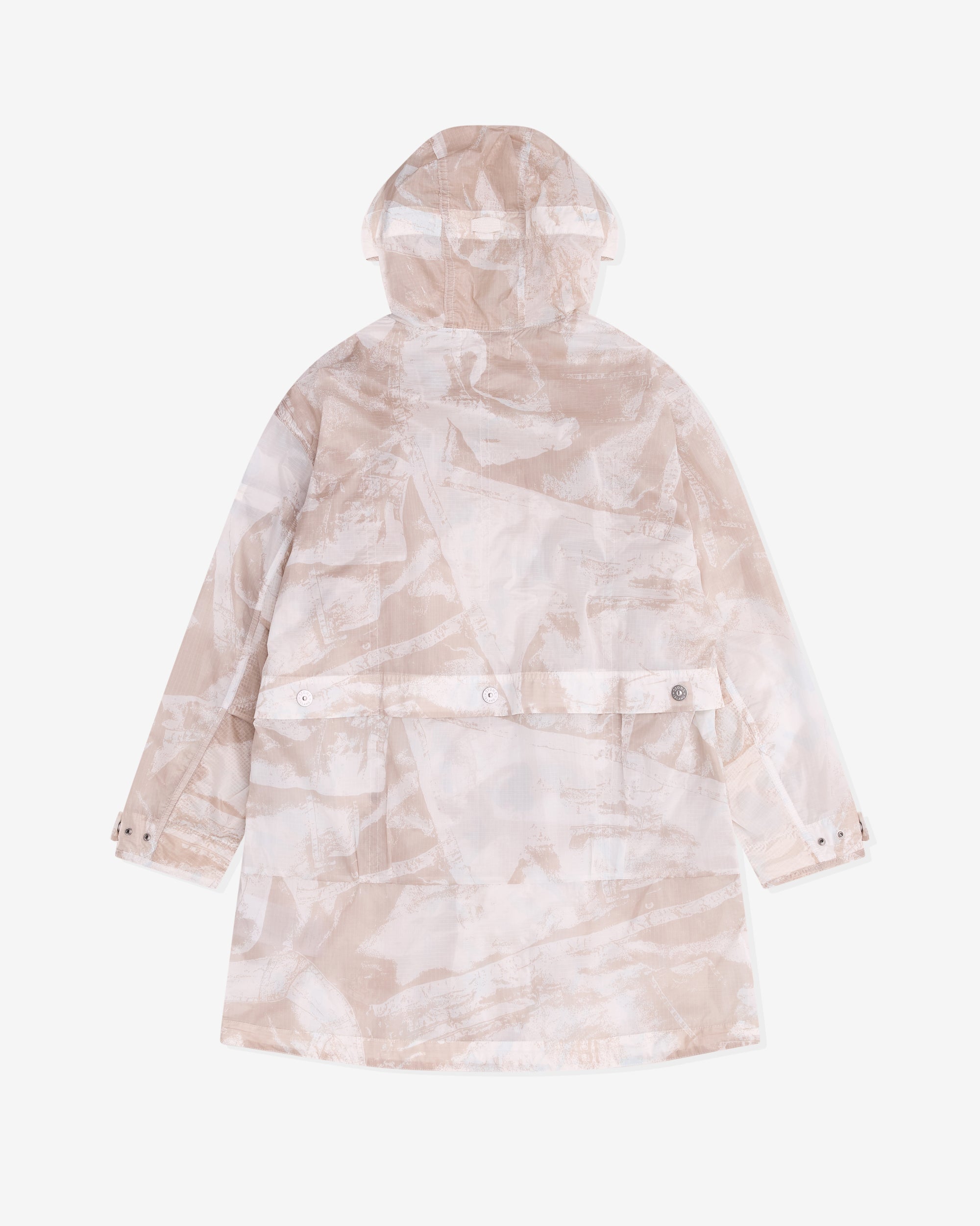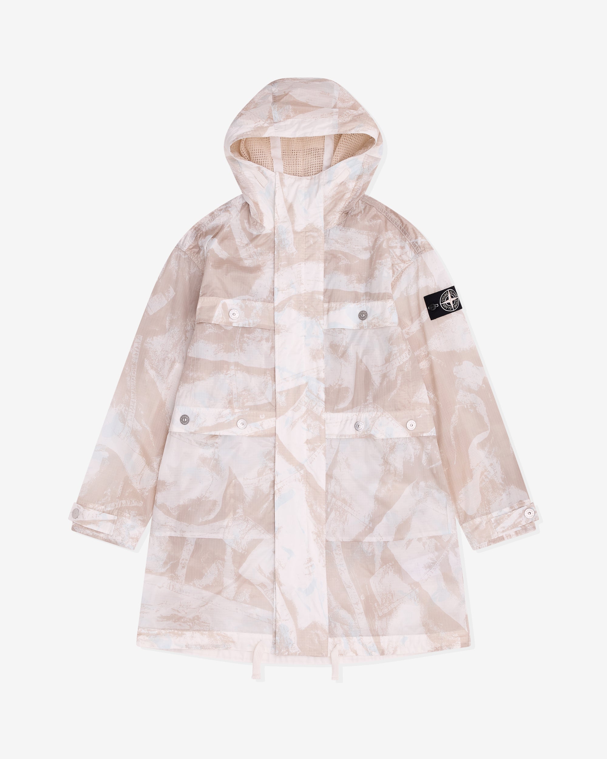 UV reactive fabricPartial cotton mesh liningConcealed full length zip closureSnap close chest pocketsStone Island research badge at left sleeveThigh lengthDrawstring hemAdjustable cuffs Snap button closure at hem and neck
