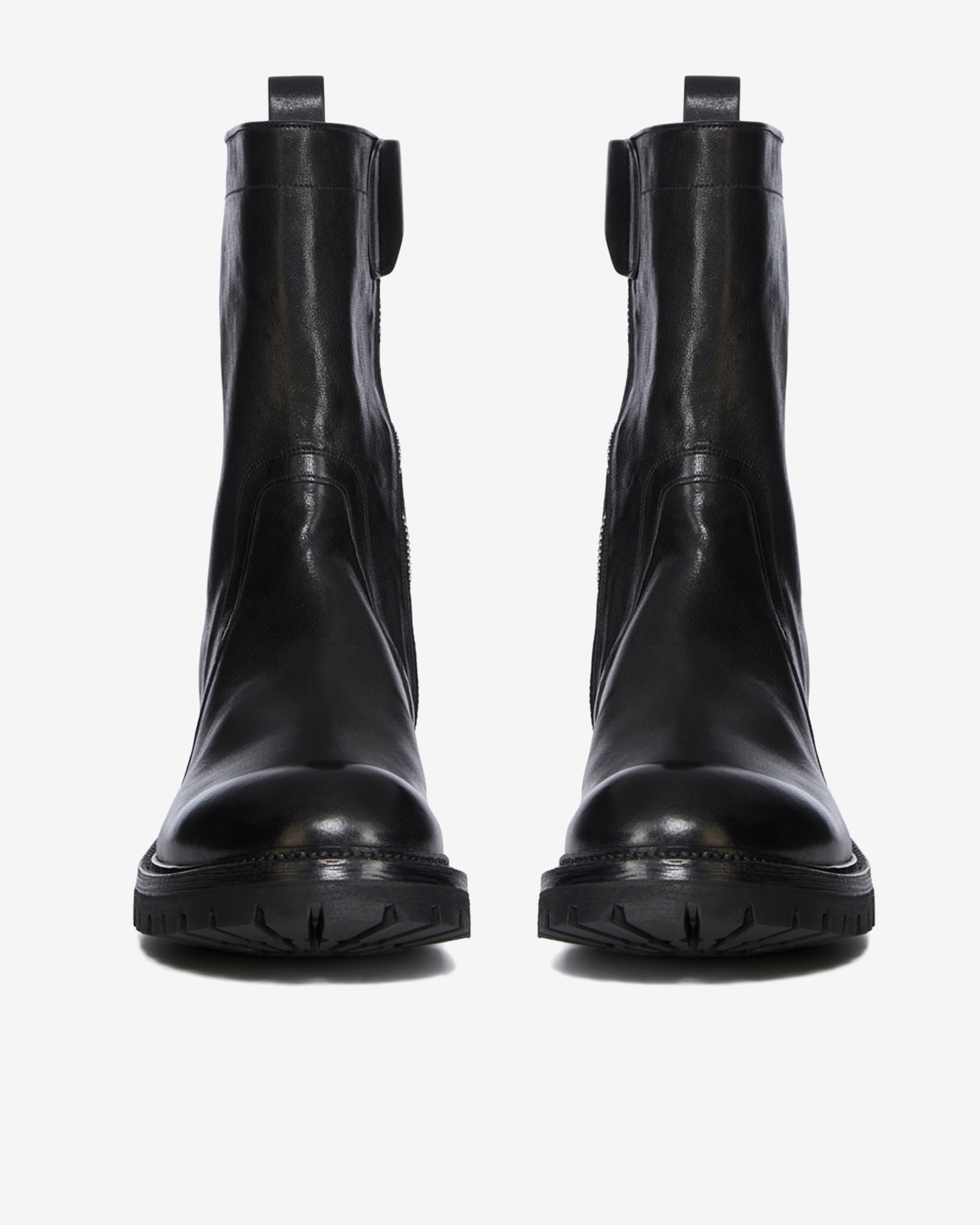 LWG-certified leatherTopstitched detailing throughoutPull-loop at heel tabPress-stud and zip closure at inner sideBuffed calfskin liningLugged rubber soleHeel: H1.5"100% Goat LeatherMade in Italy