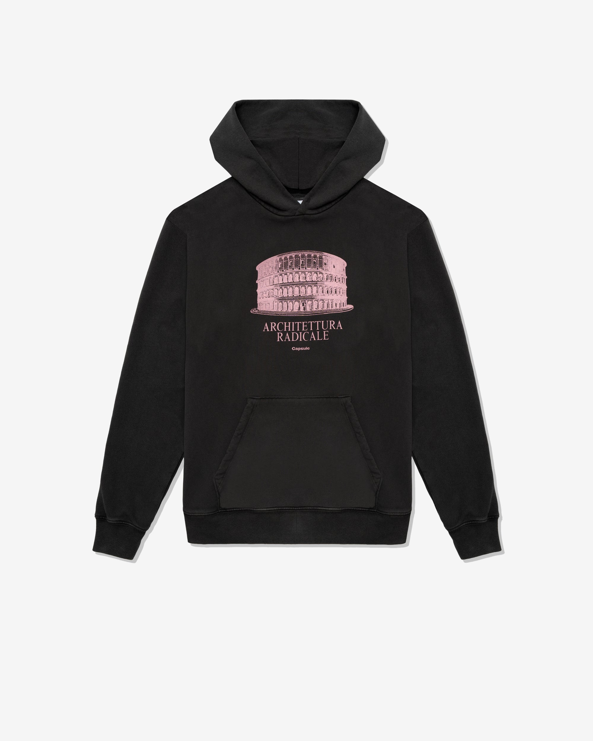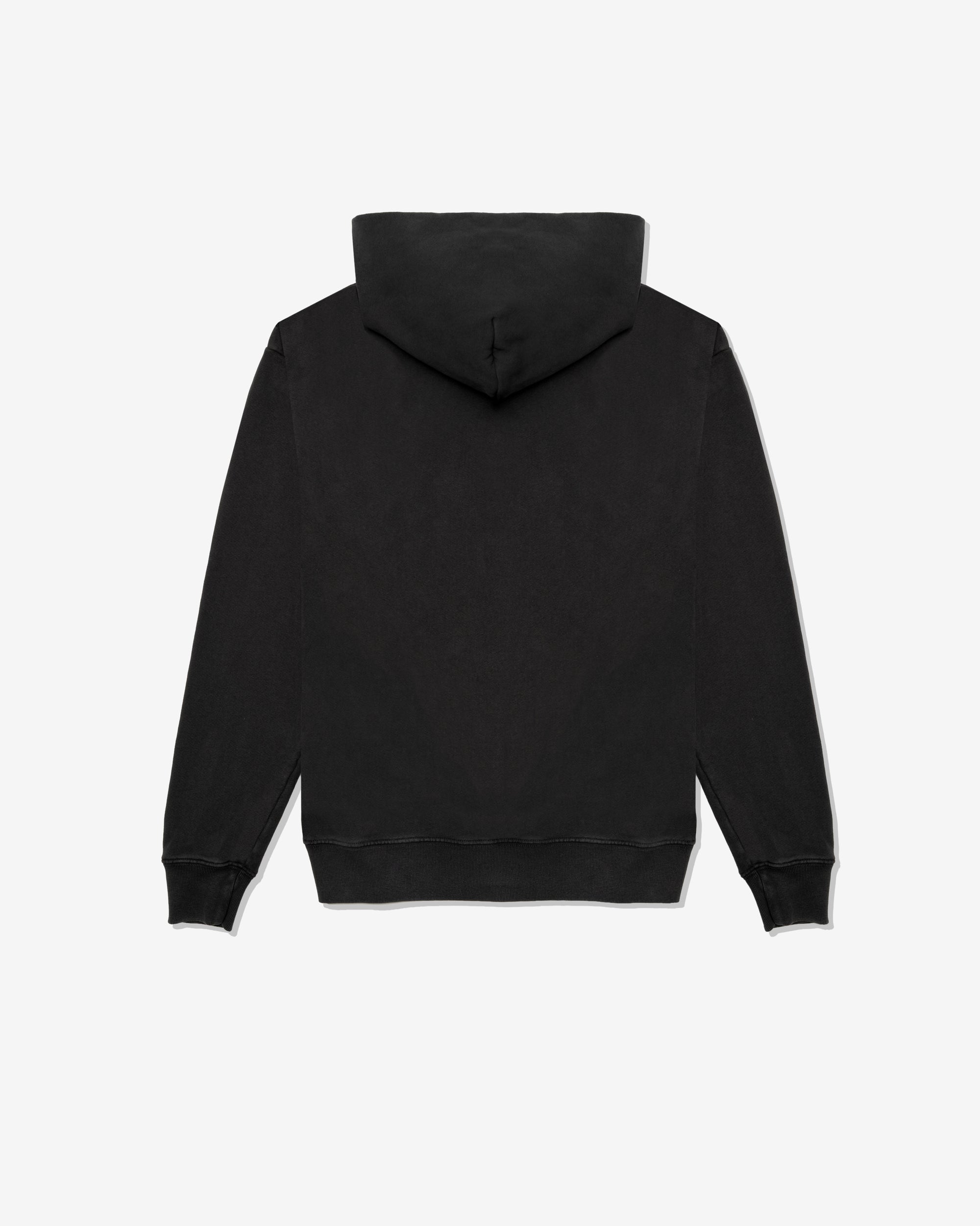 Heavyweight hoodie in 430gsm brushed-back fleece, with screen-printed graphics on chest.