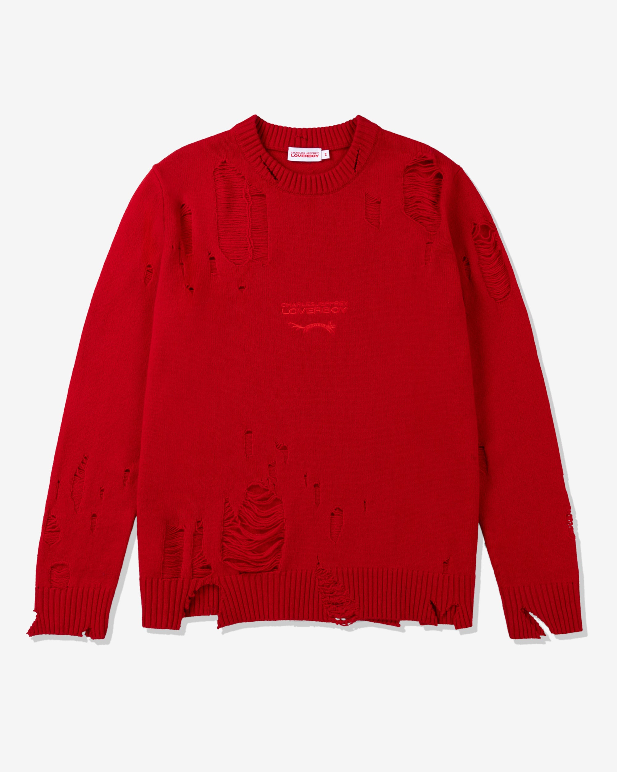Charles Jeffrey Men's Distressed Logo Jumper Red