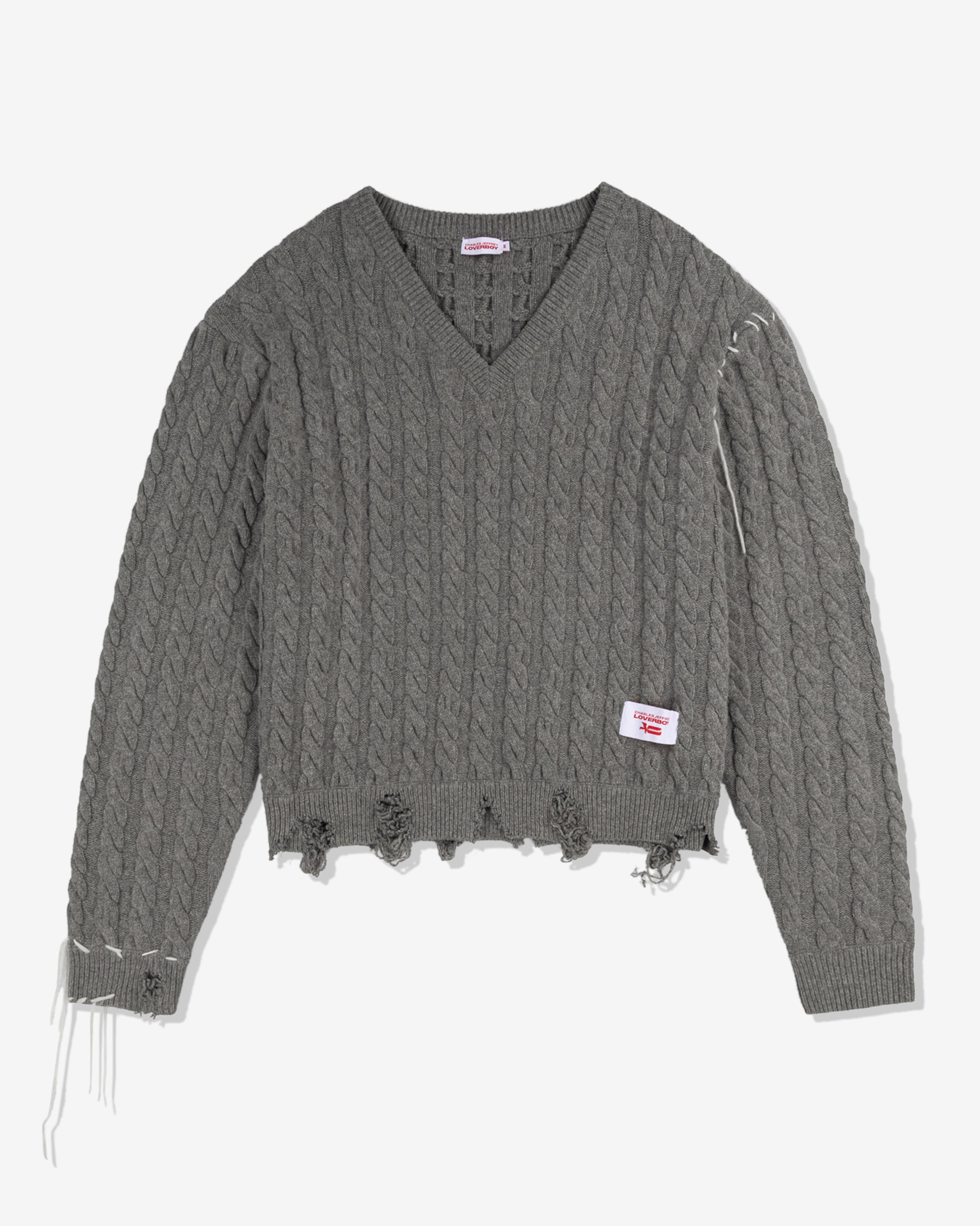 Charles Jeffrey Men's Label Cable Knitted Jumper Grey